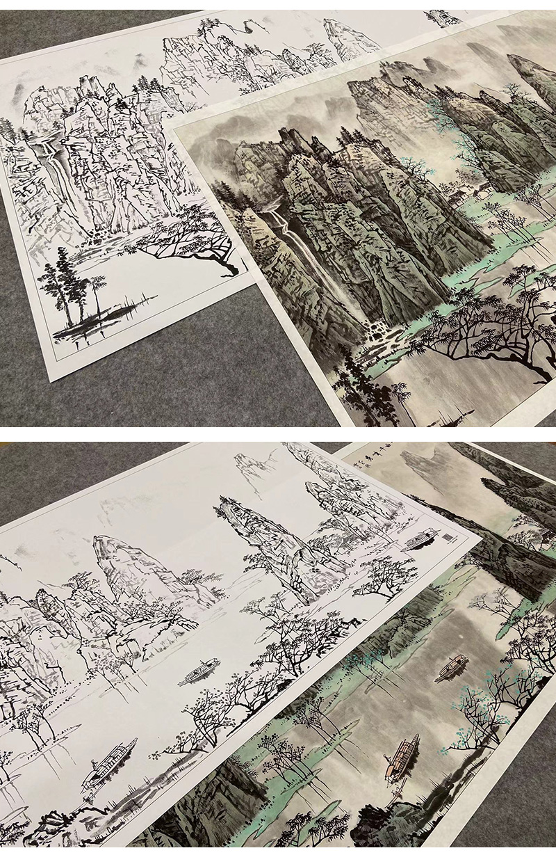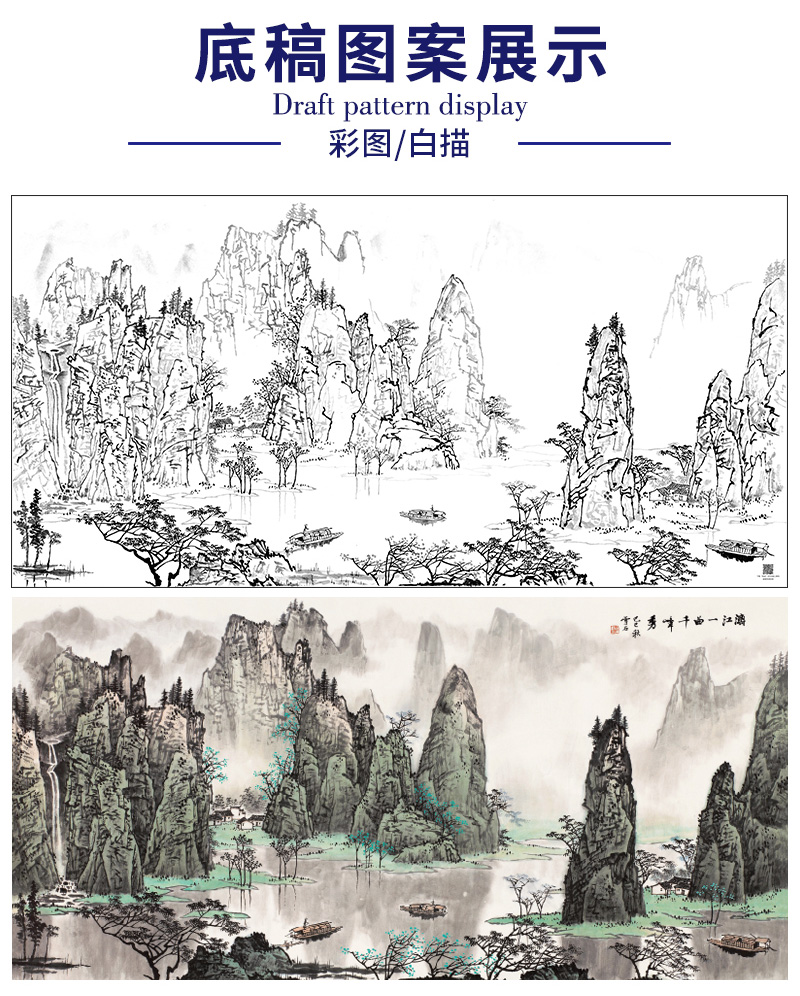 【大彩图】白雪石横幅工笔画白描底稿《漓江一曲千峰秀》临摹勾线高清打印稿BX01
