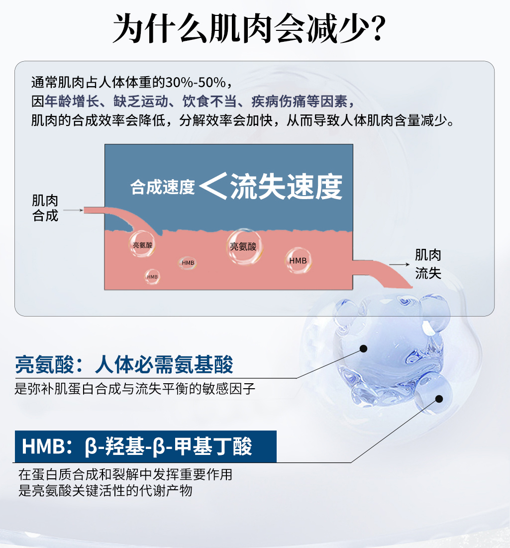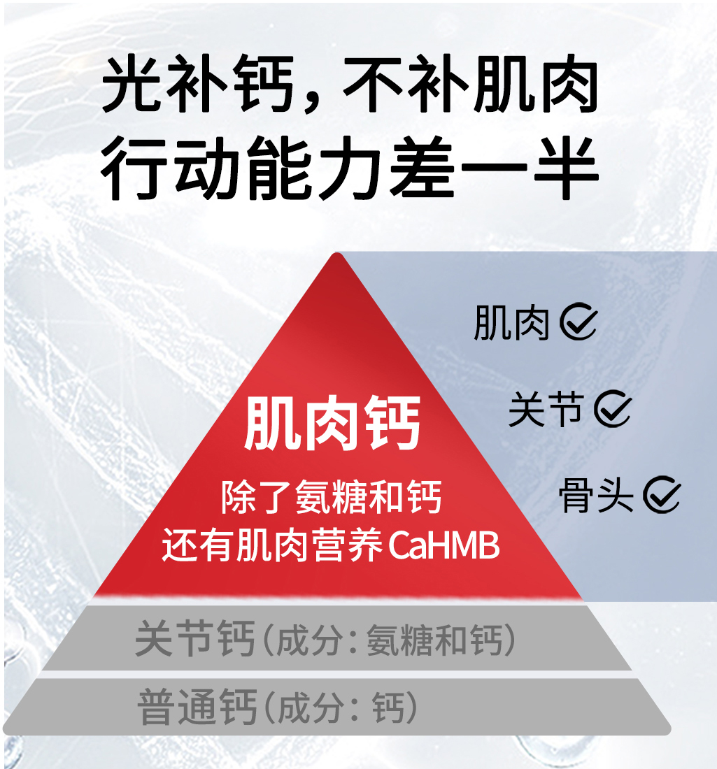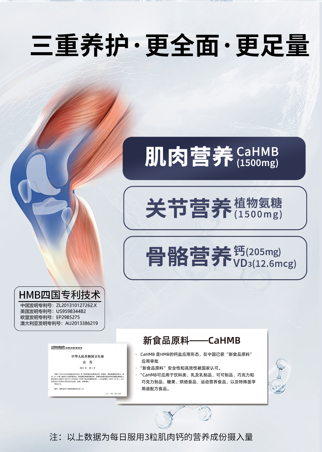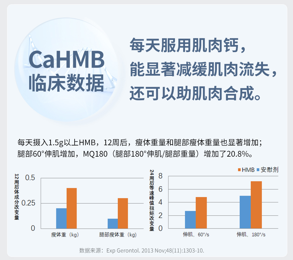 核心优势 CaHMB:唯一能有效抑制肌肉流失 + 促进肌肉蛋白合成的营养素,是FDA/卫健委双认证的新资源成分;