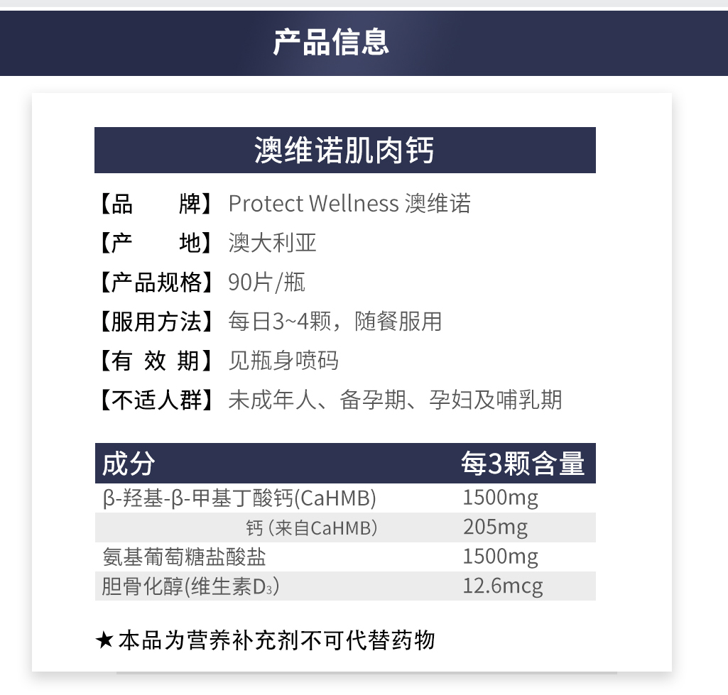 钙片 肌肉钙 |CaHMB 软骨素 骨质疏松 中老年养护关节 protect澳维诺 澳维诺 澳洲进口 新钙片