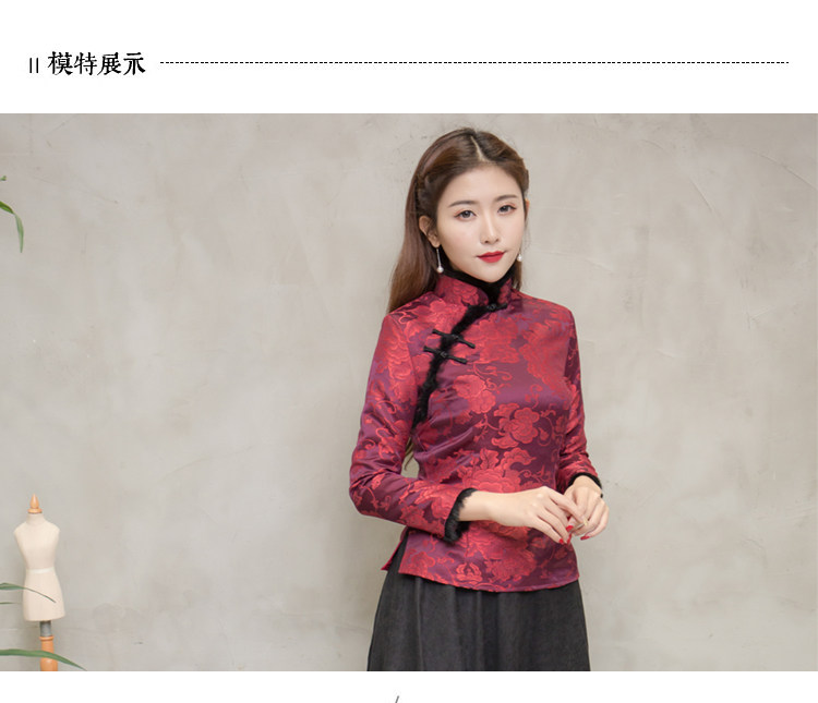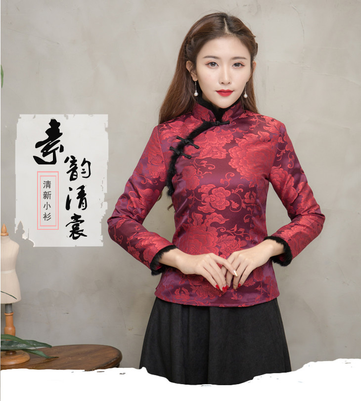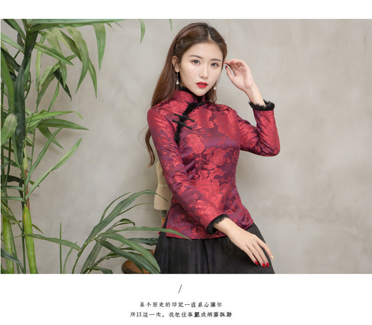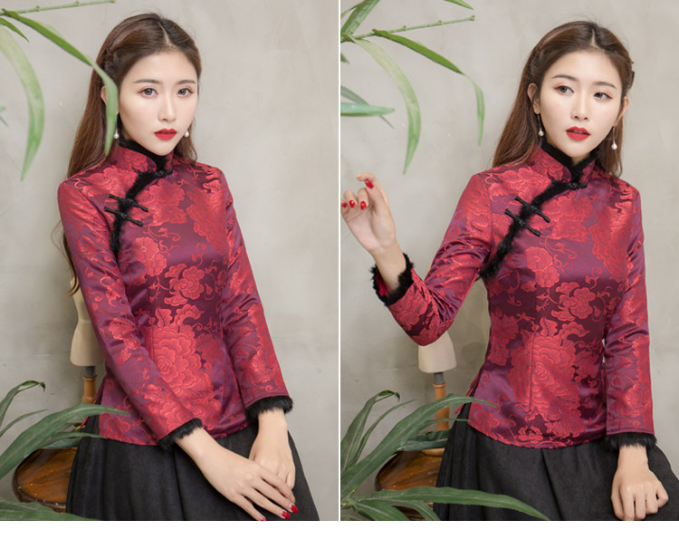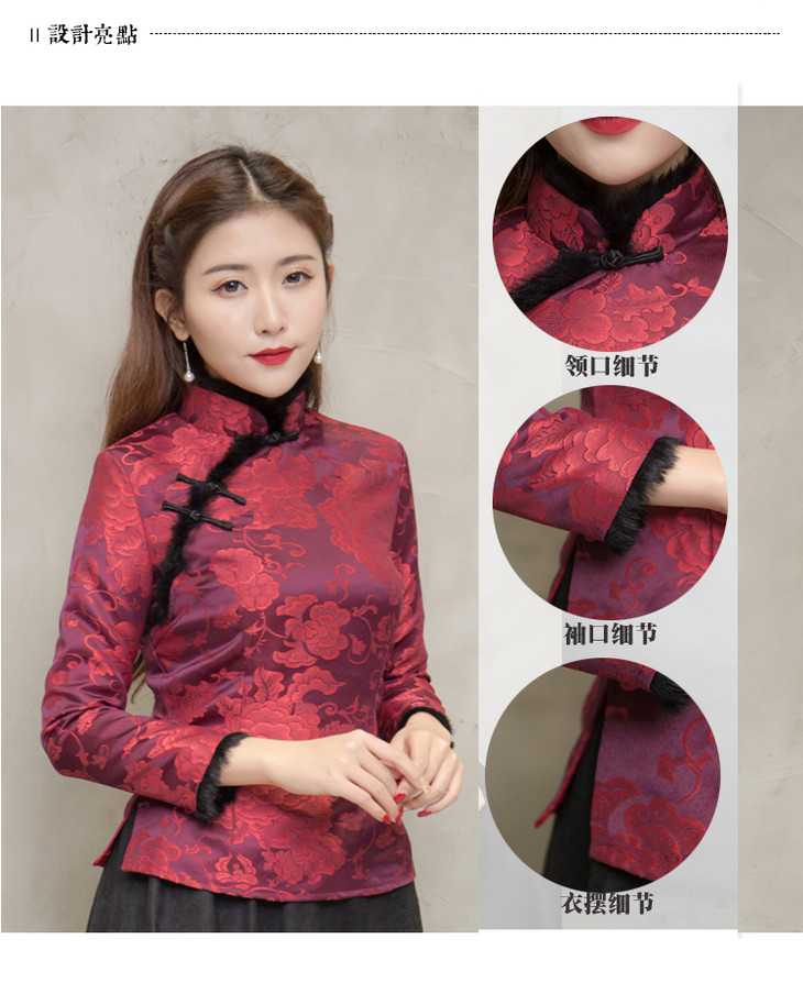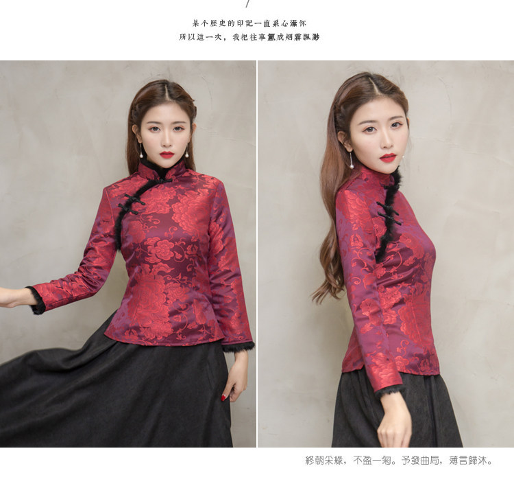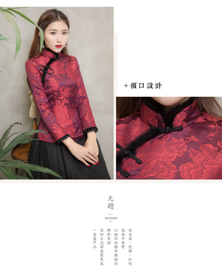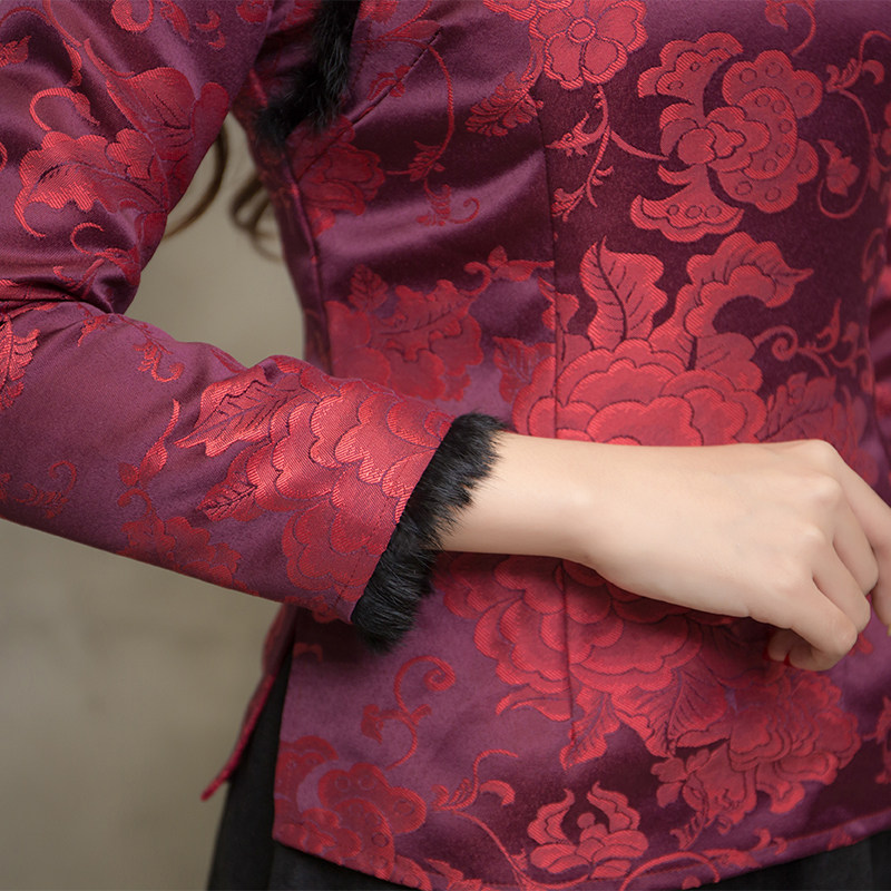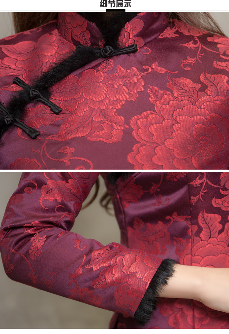 F NQ6152秋冬加厚红色旗袍上衣妈妈装复古修身加高档兔毛棉唐装上衣
