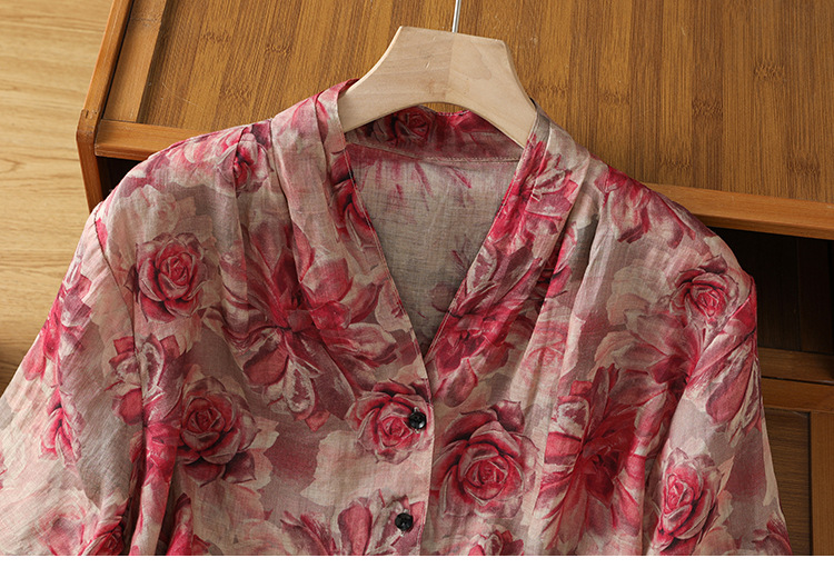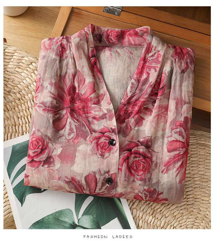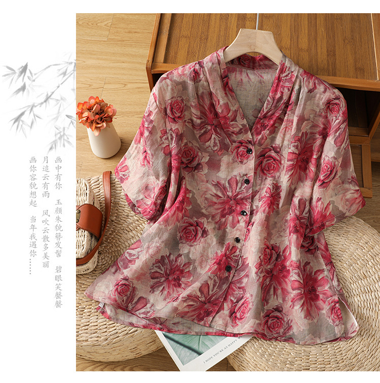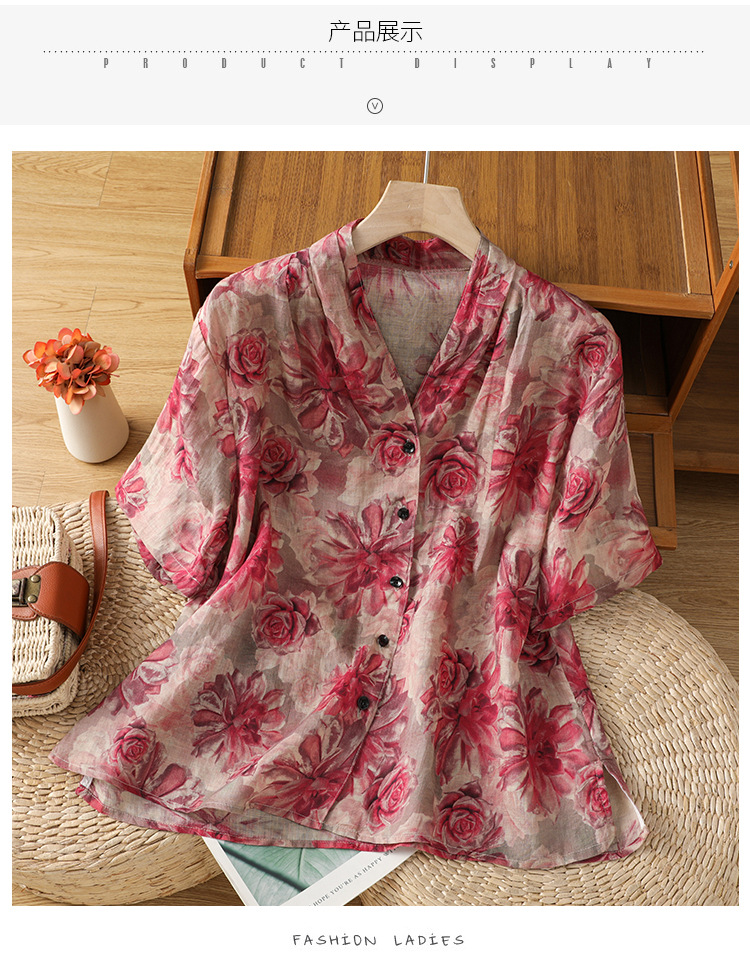 B106-8832025休闲夏季新款女装短袖宽松高端优雅简约慵懒风衬衫女