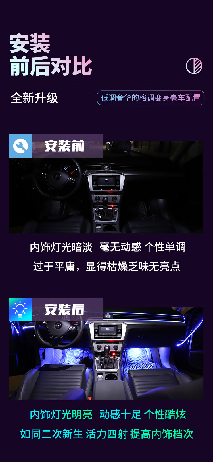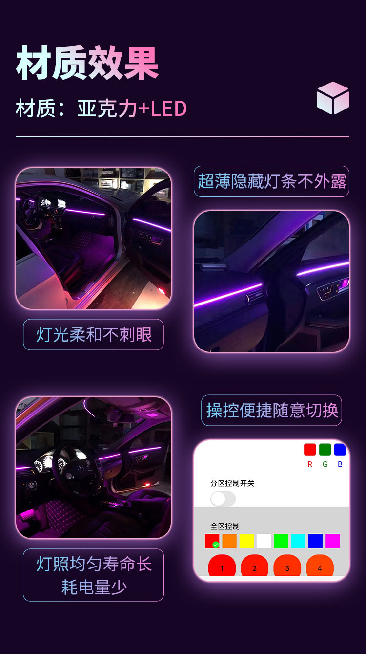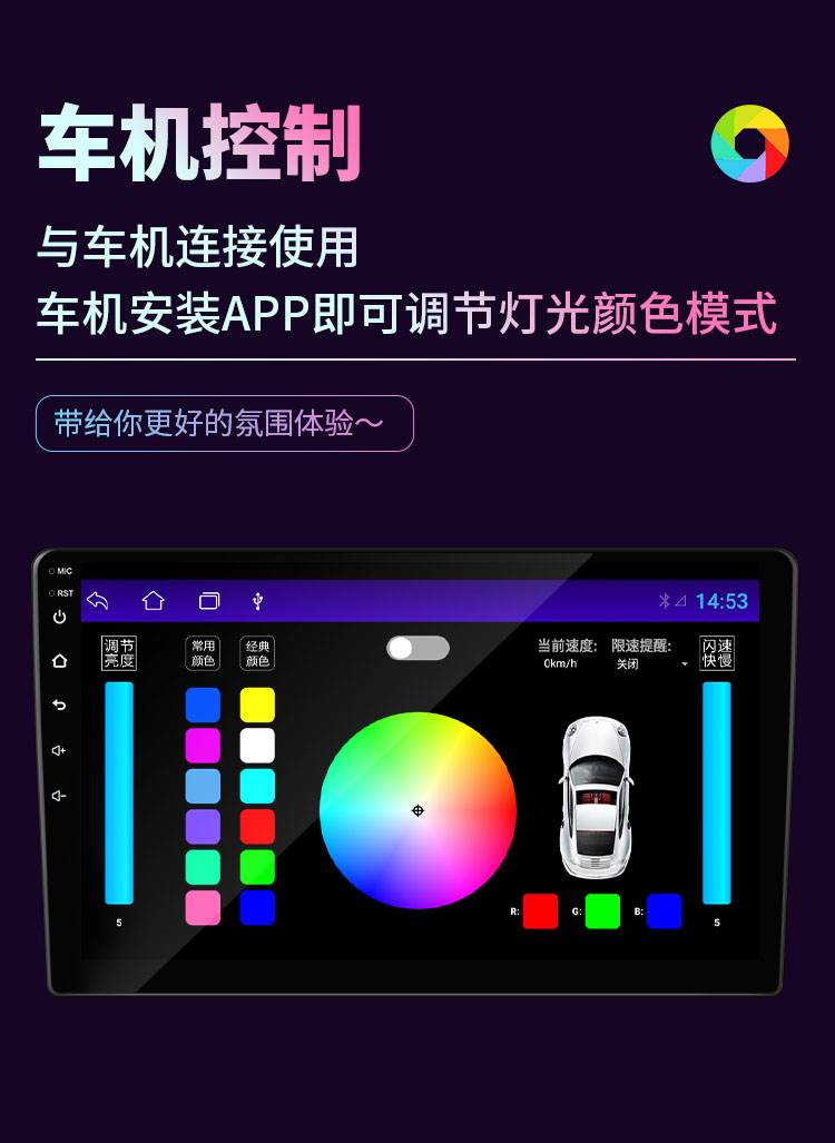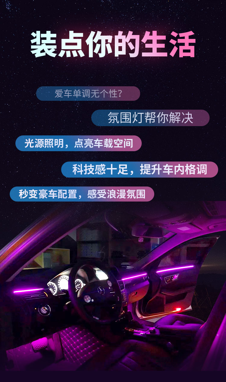 兜风64色车载氛围灯|95%车型通用