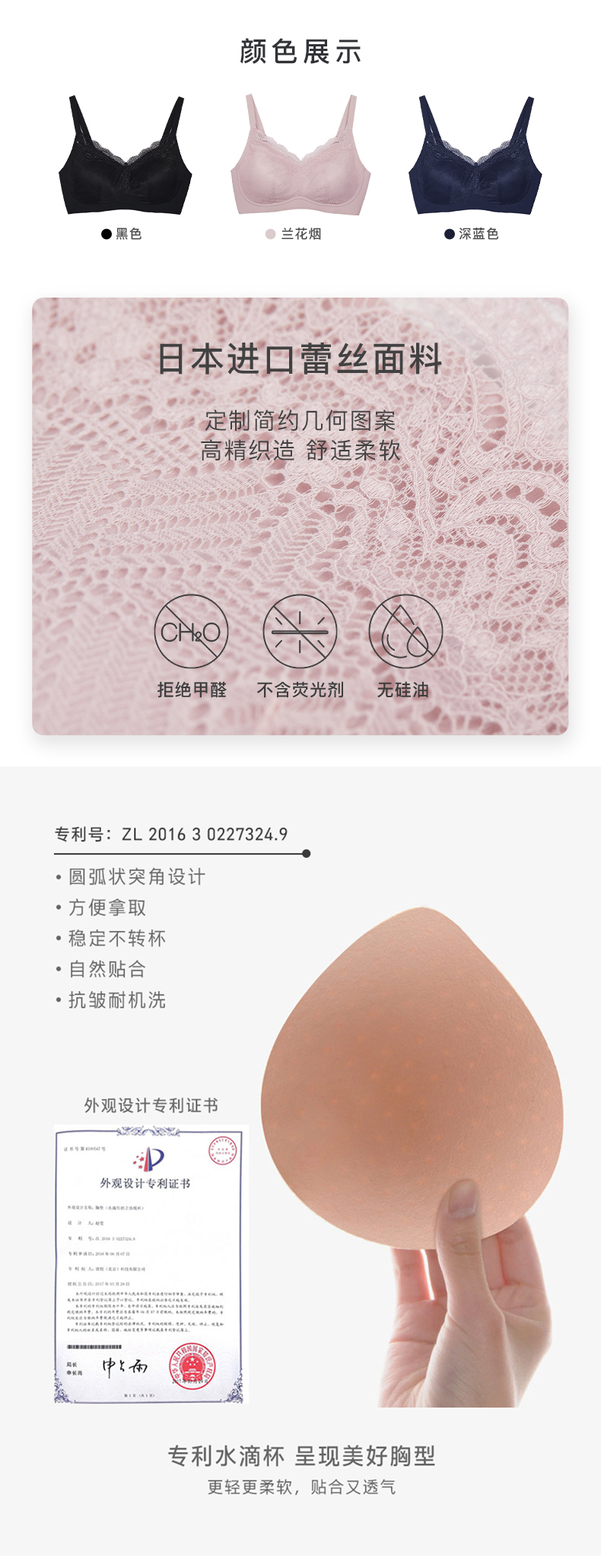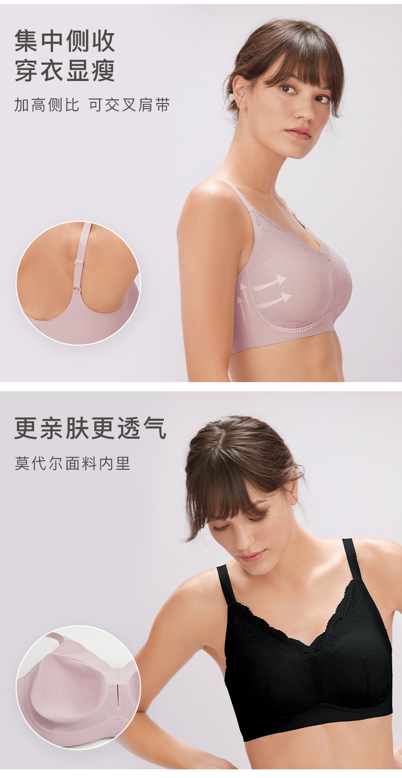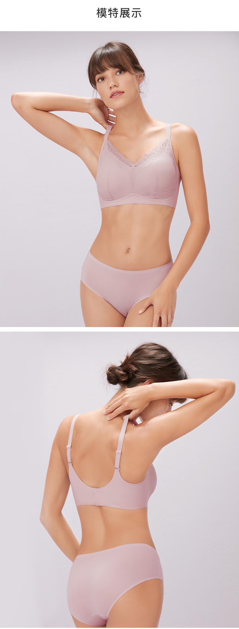 Ubras几何蕾丝大杯背勾文胸V领内衣女无钢圈性感透气女士胸罩