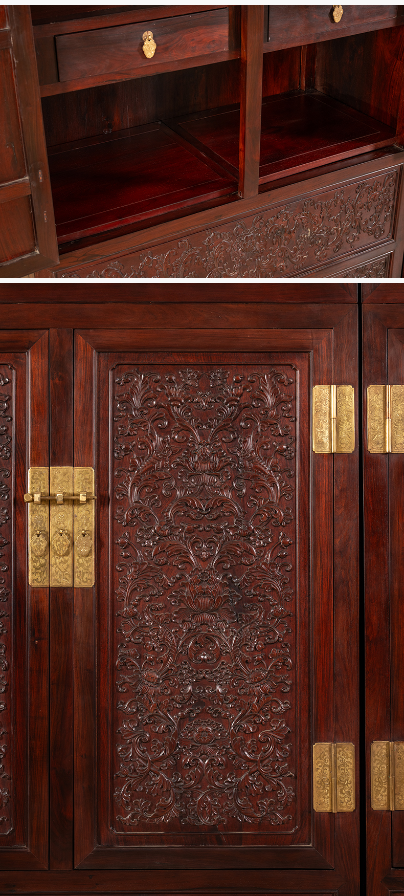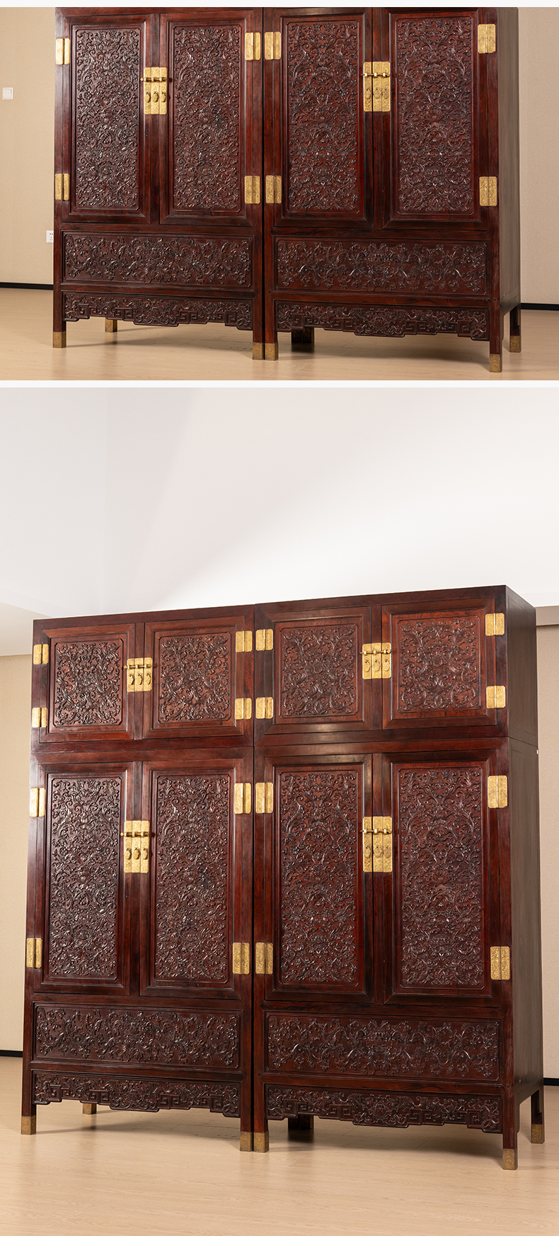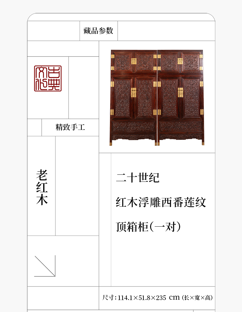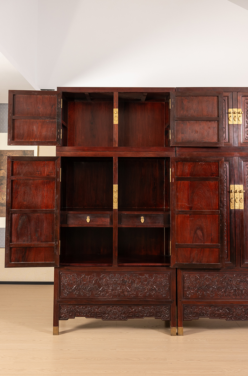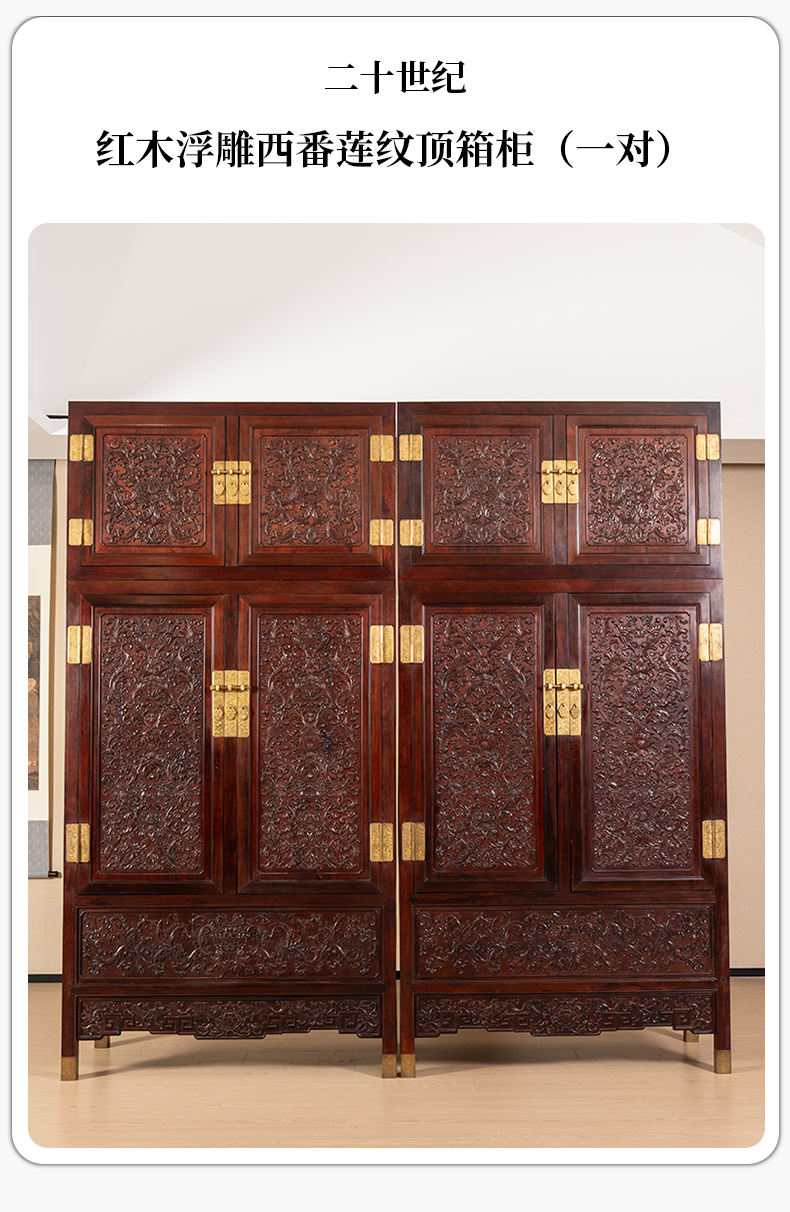 二十世纪 红木浮雕西番莲纹顶箱柜(一对)