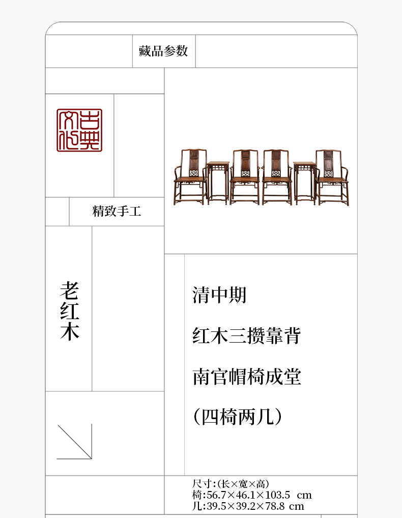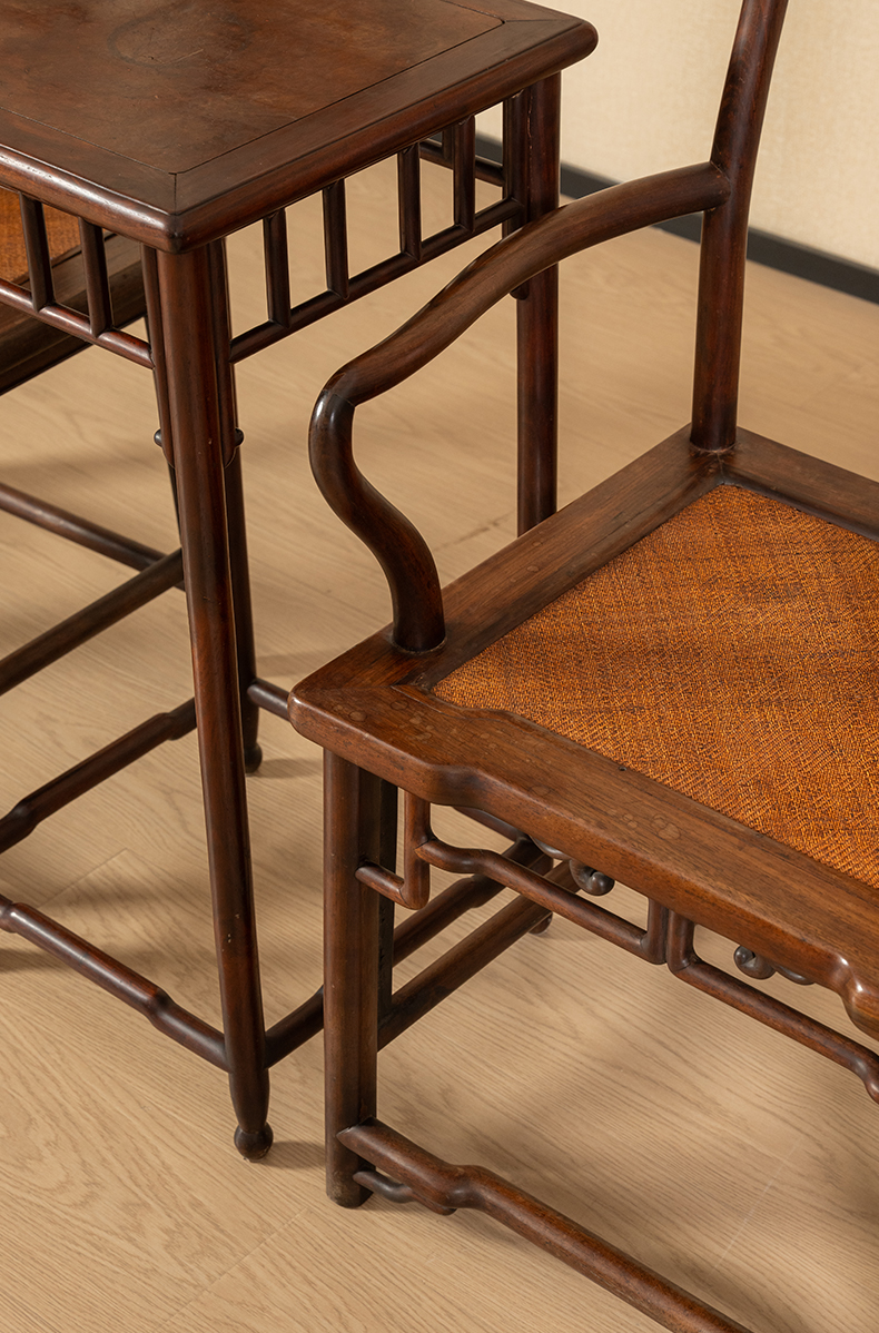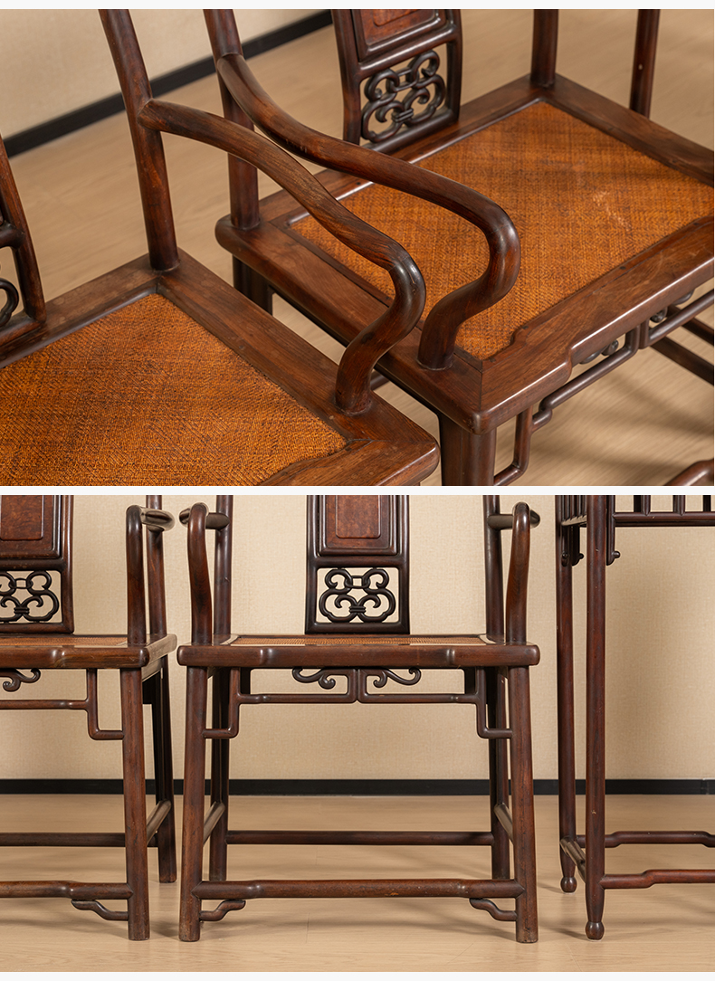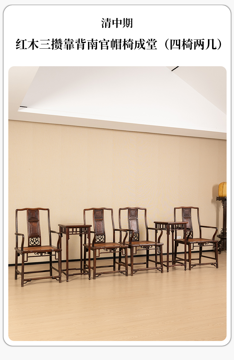 清中期 红三攒靠背南官帽椅成堂(四椅两几)