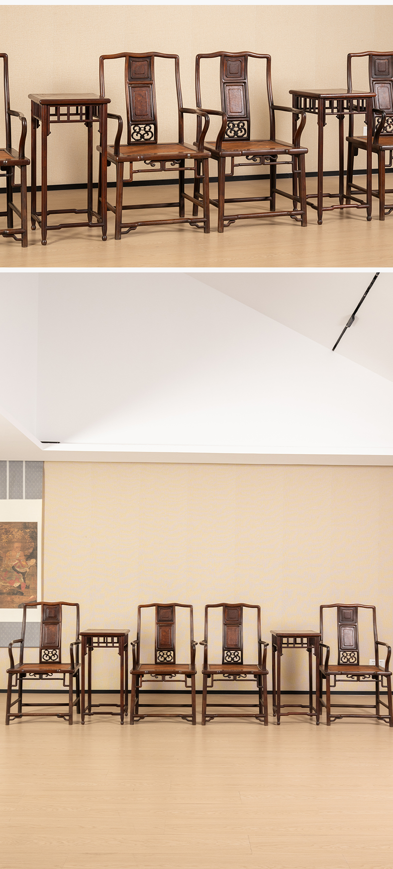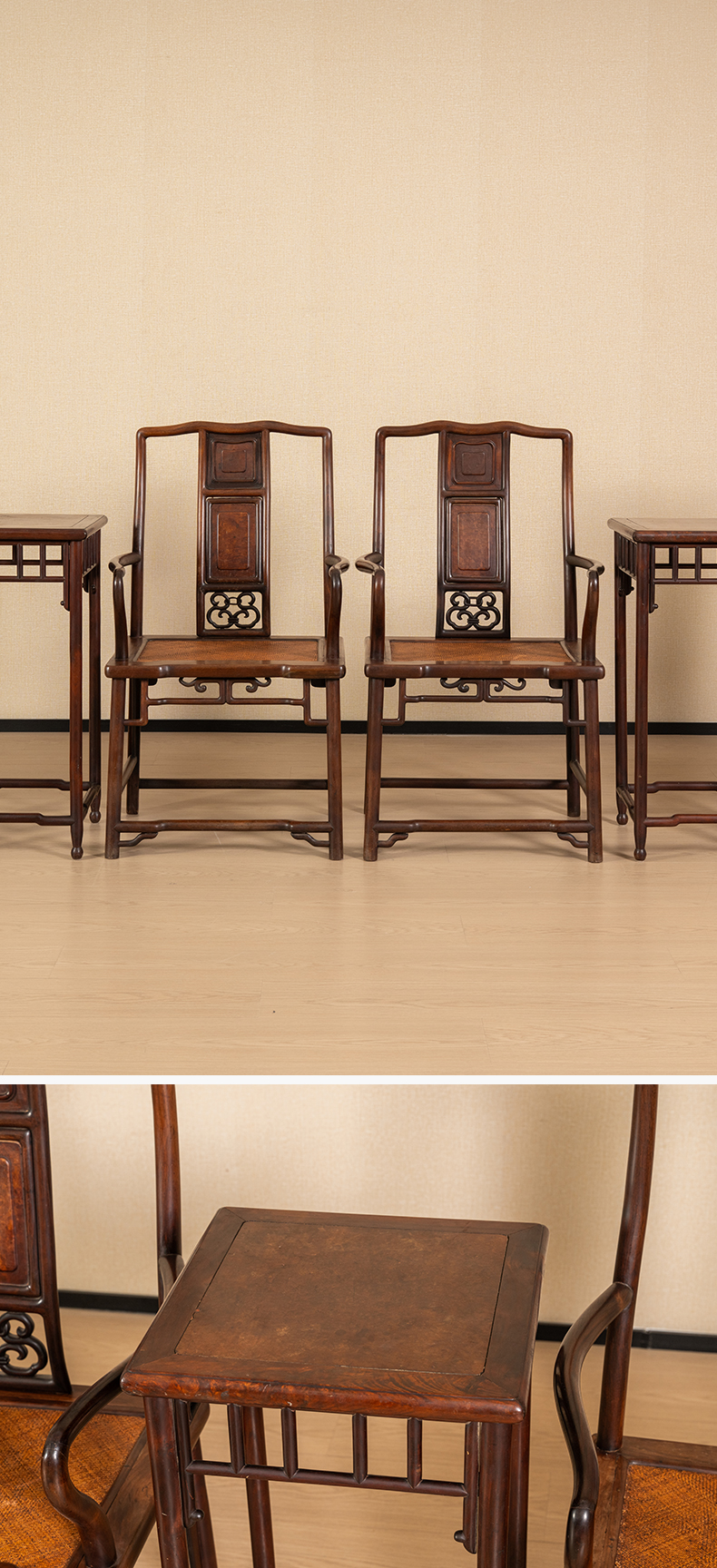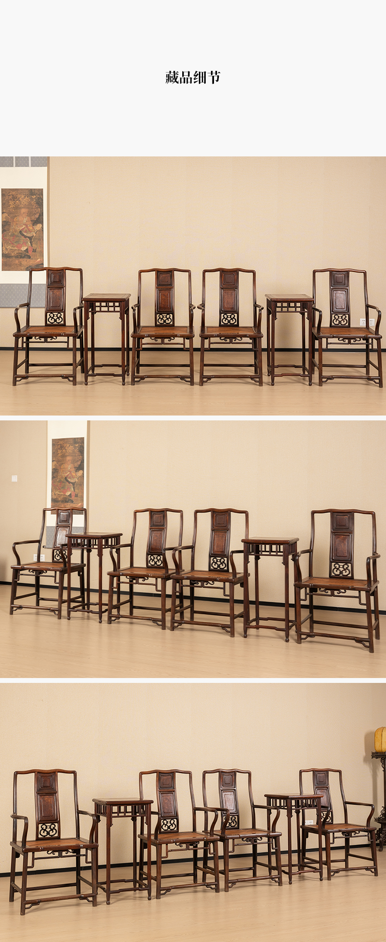 清中期 红三攒靠背南官帽椅成堂(四椅两几)