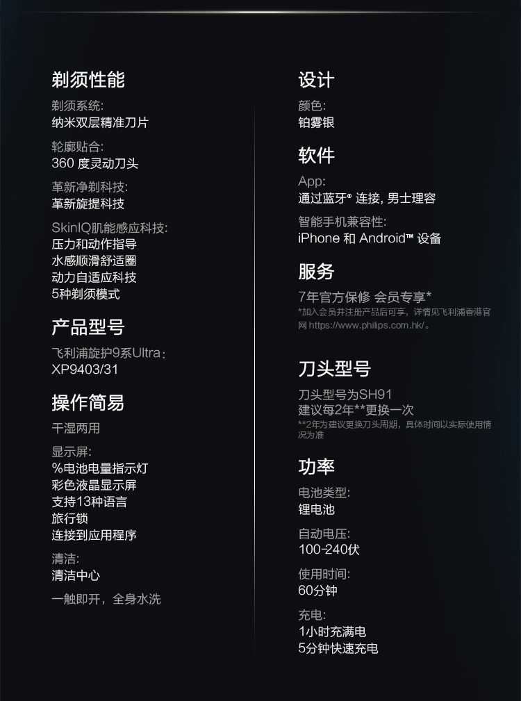 【飞利浦】飞利浦整机进口剃须刀刮胡刀XP9403旋护新9系ultra高端礼
