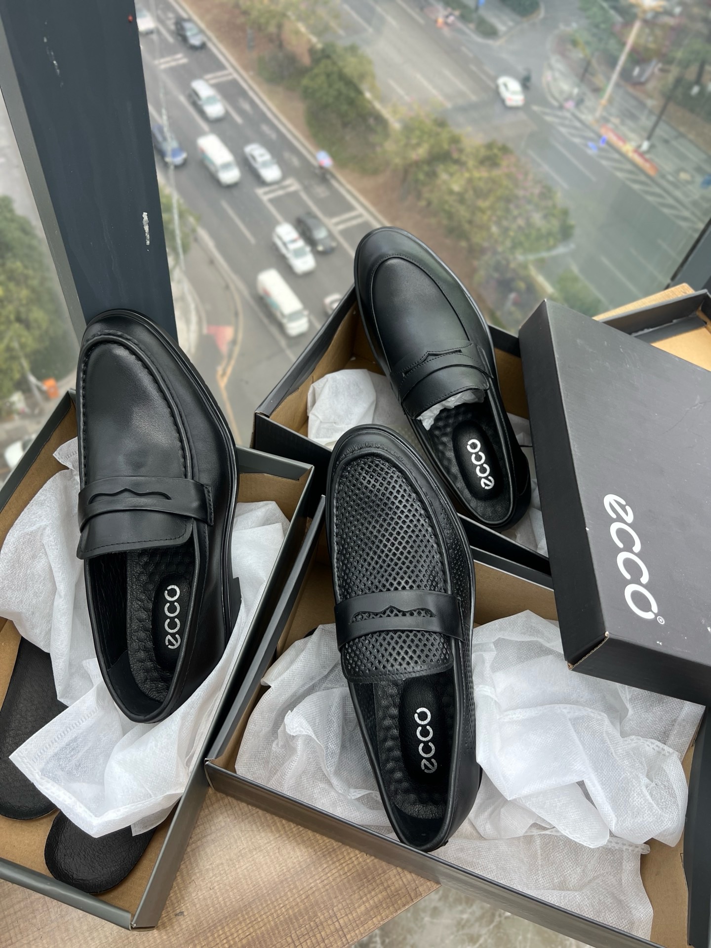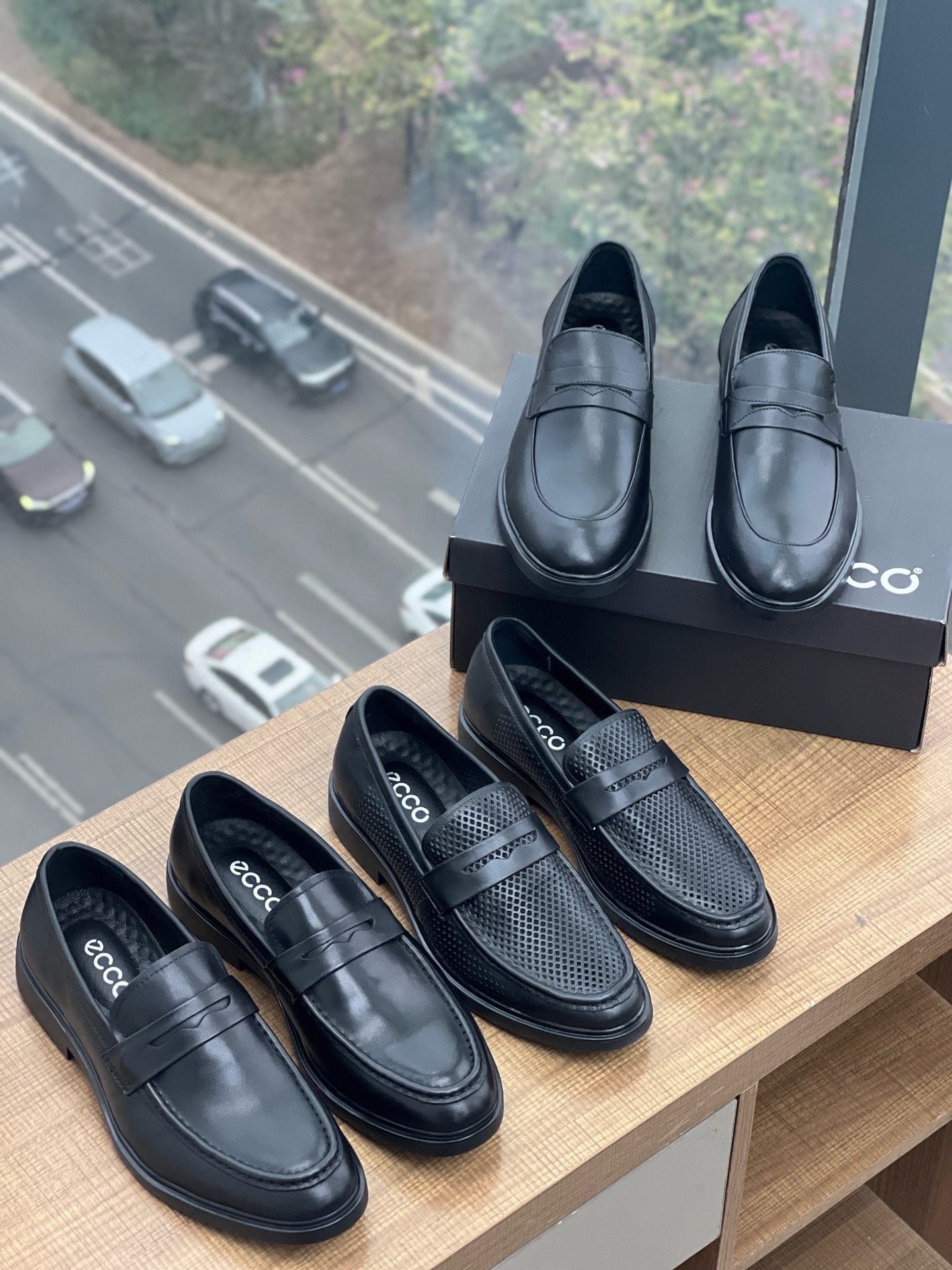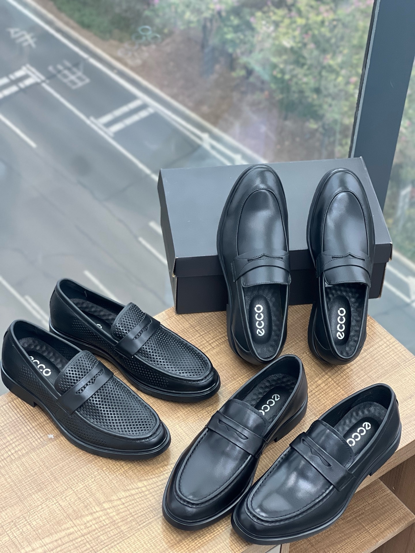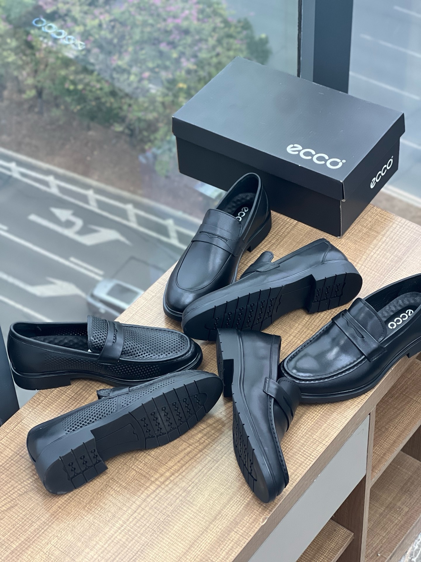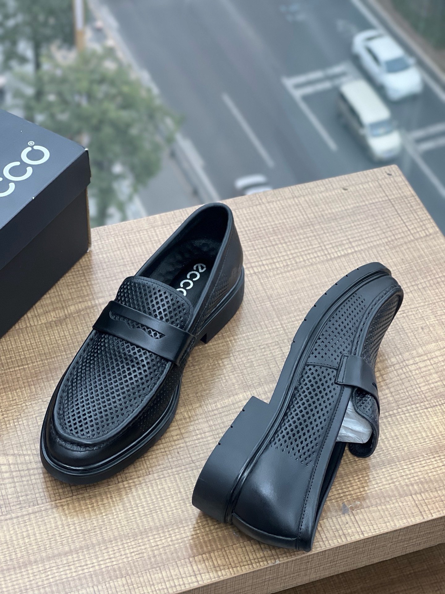 纯跑量款~ECCO 真皮商务套脚光面打孔男鞋都能让您成为焦点。