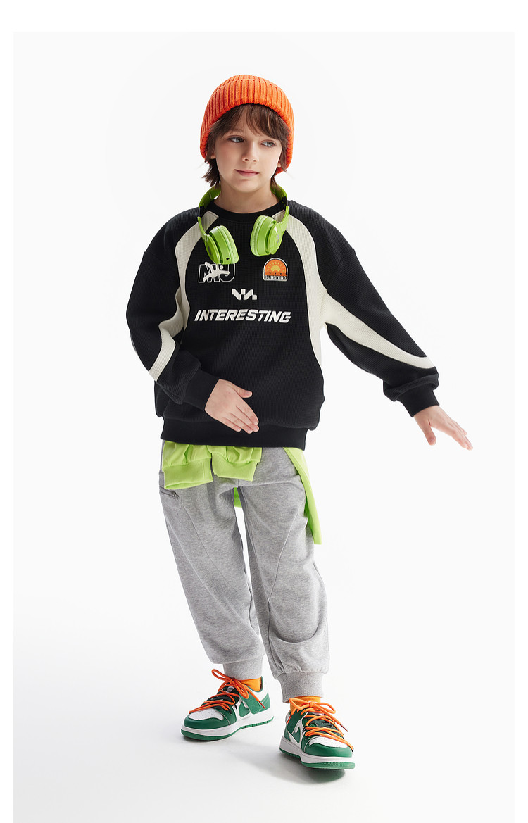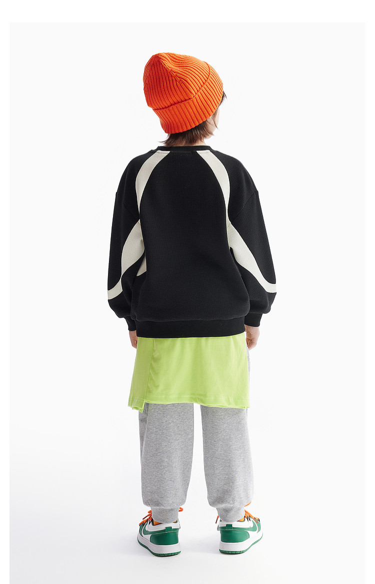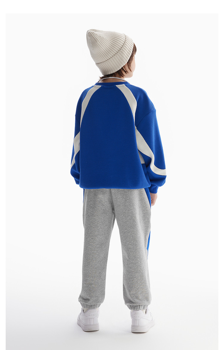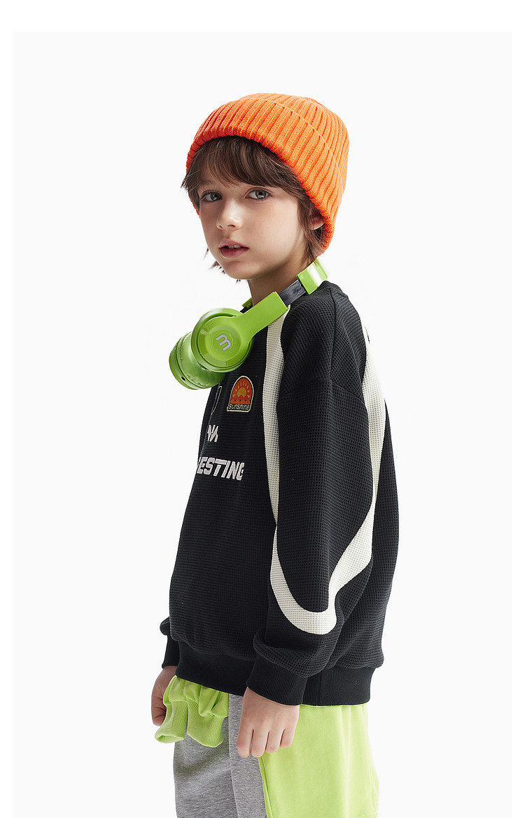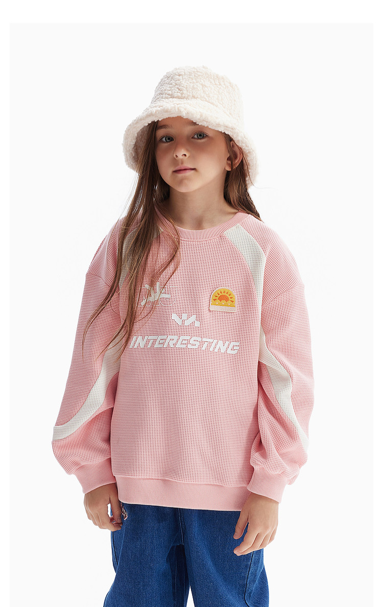【MQD】【170】童装男女童长袖t恤春秋季款华夫格儿童圆领卫衣宝宝上衣内搭