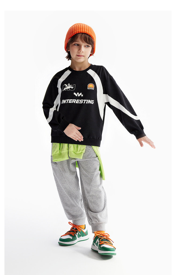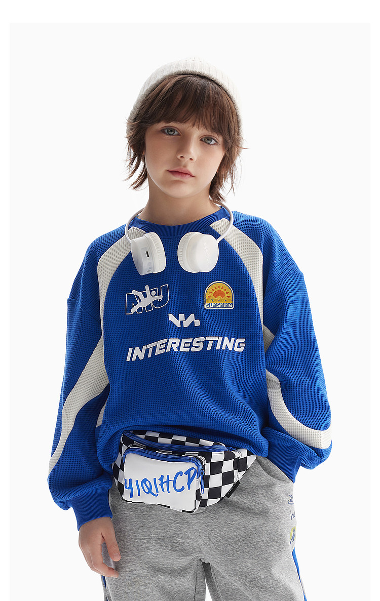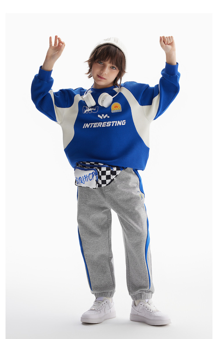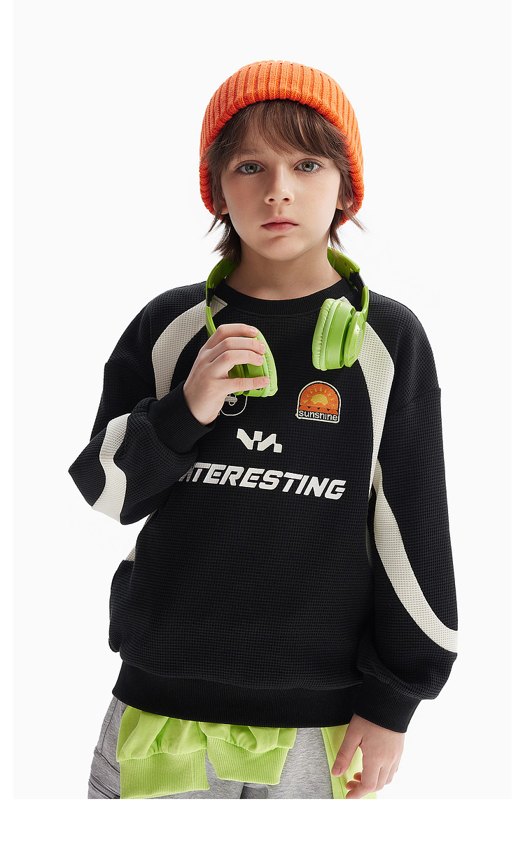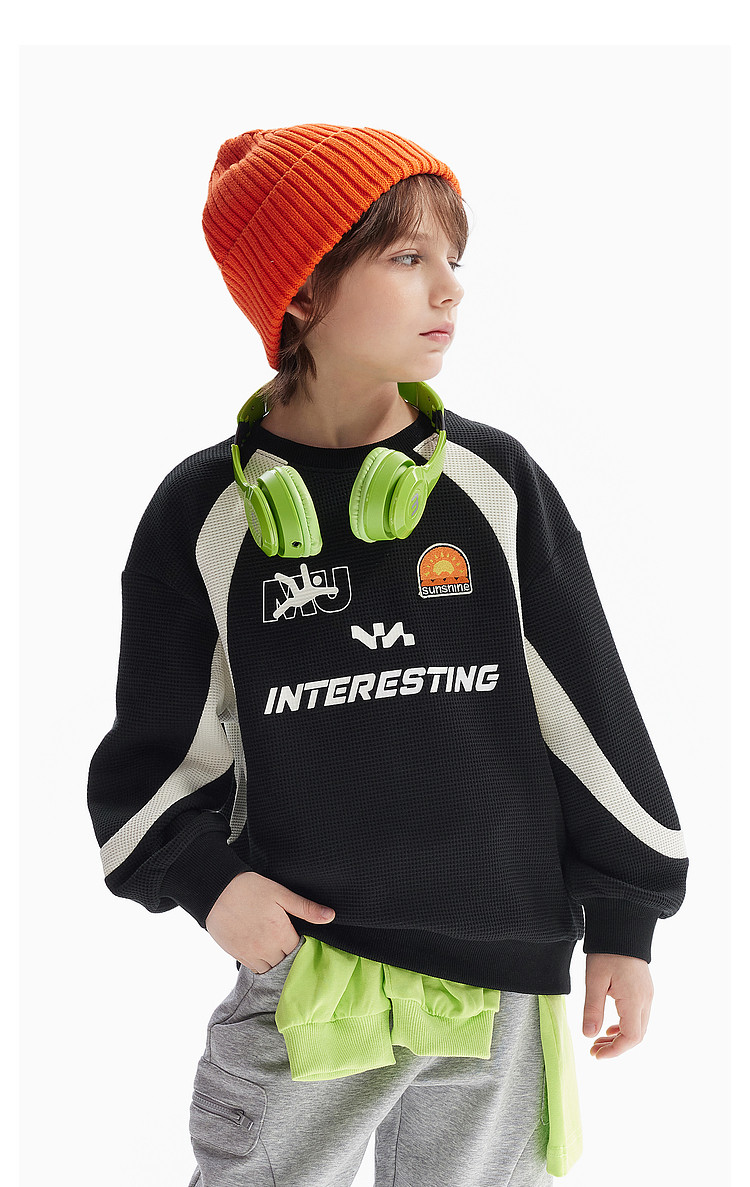 【MQD】【170】童装男女童长袖t恤春秋季款华夫格儿童圆领卫衣宝宝上衣内搭