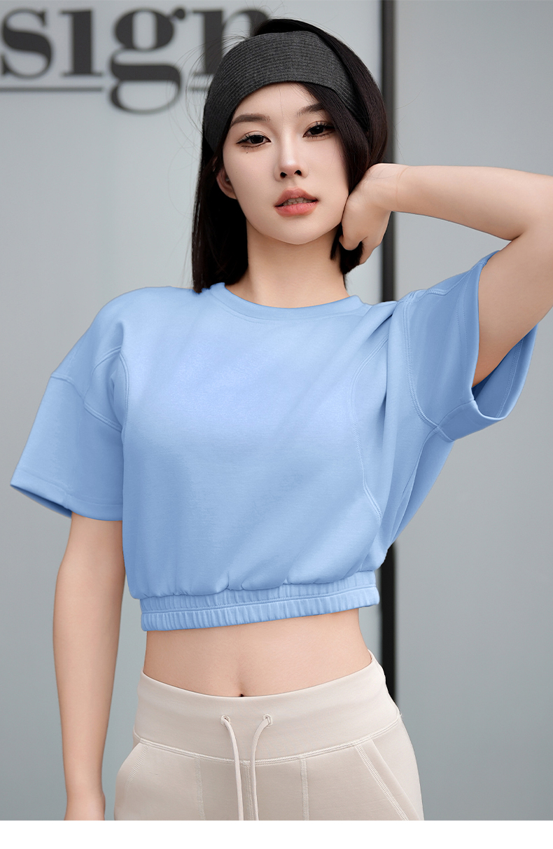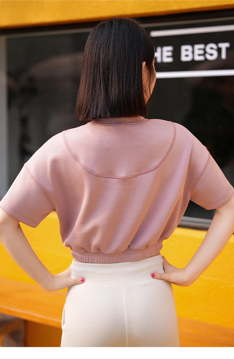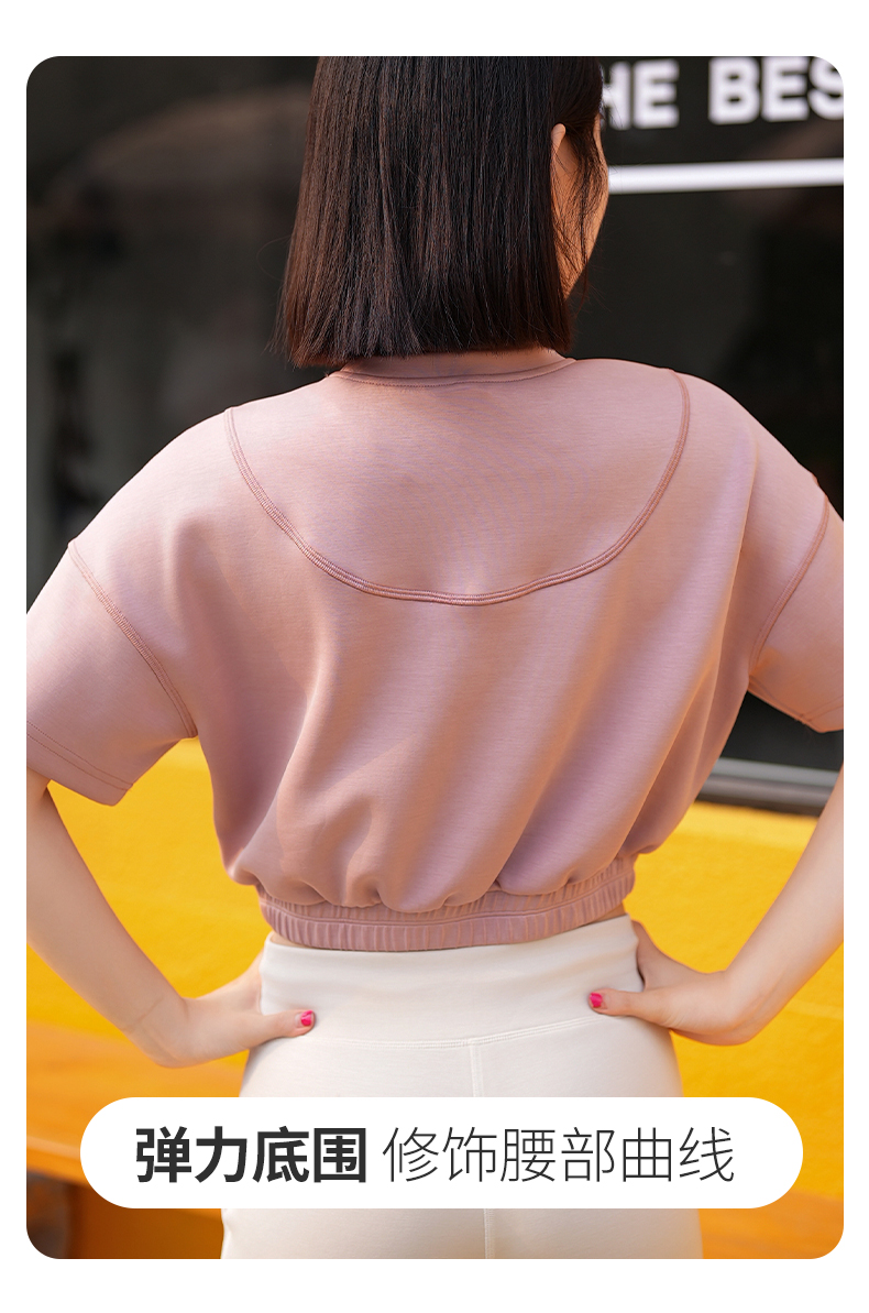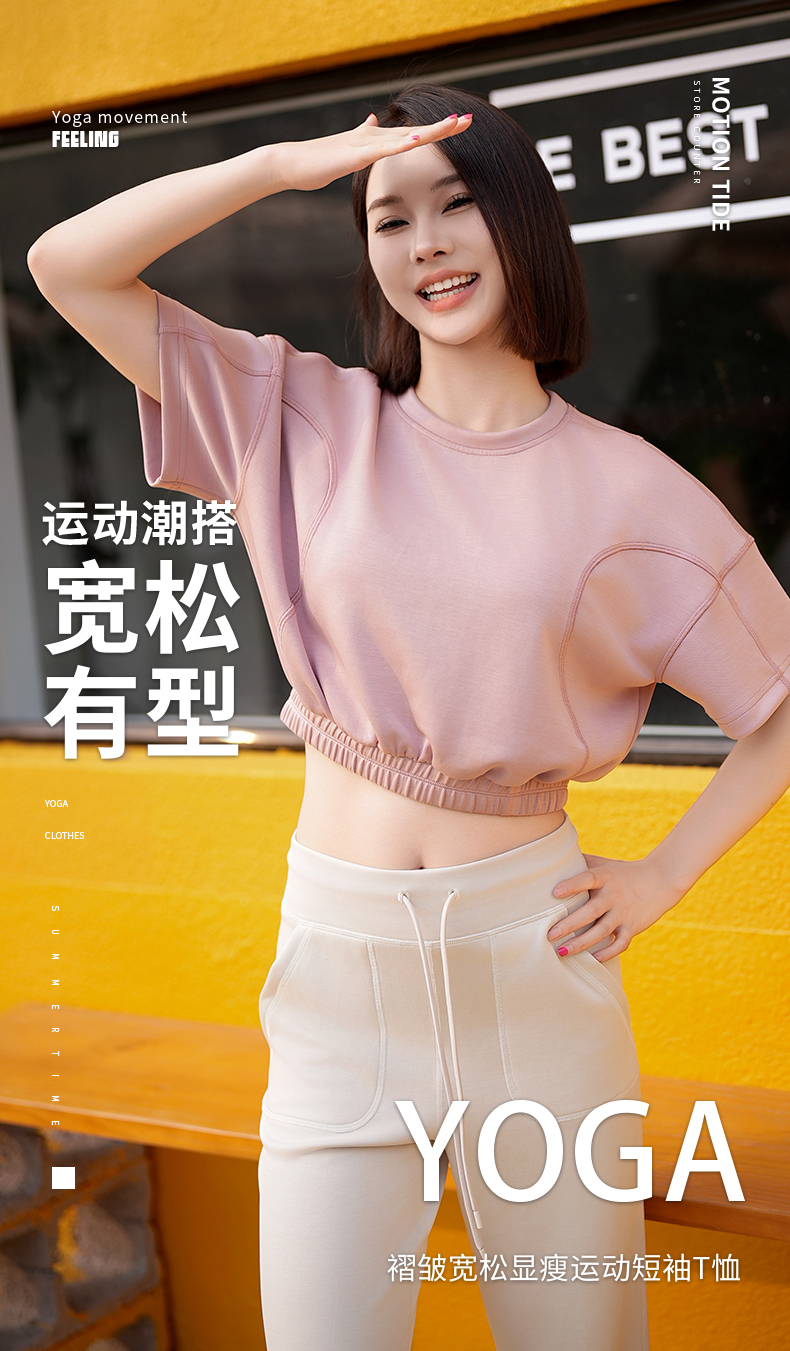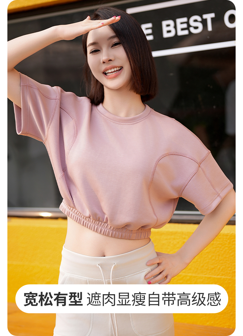 跃牌【倚窗听雨】系列 Athena lulu砂洗莫代尔瑜伽服女褶皱宽松显瘦运动跑步健身短袖T恤DA71
