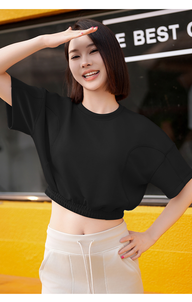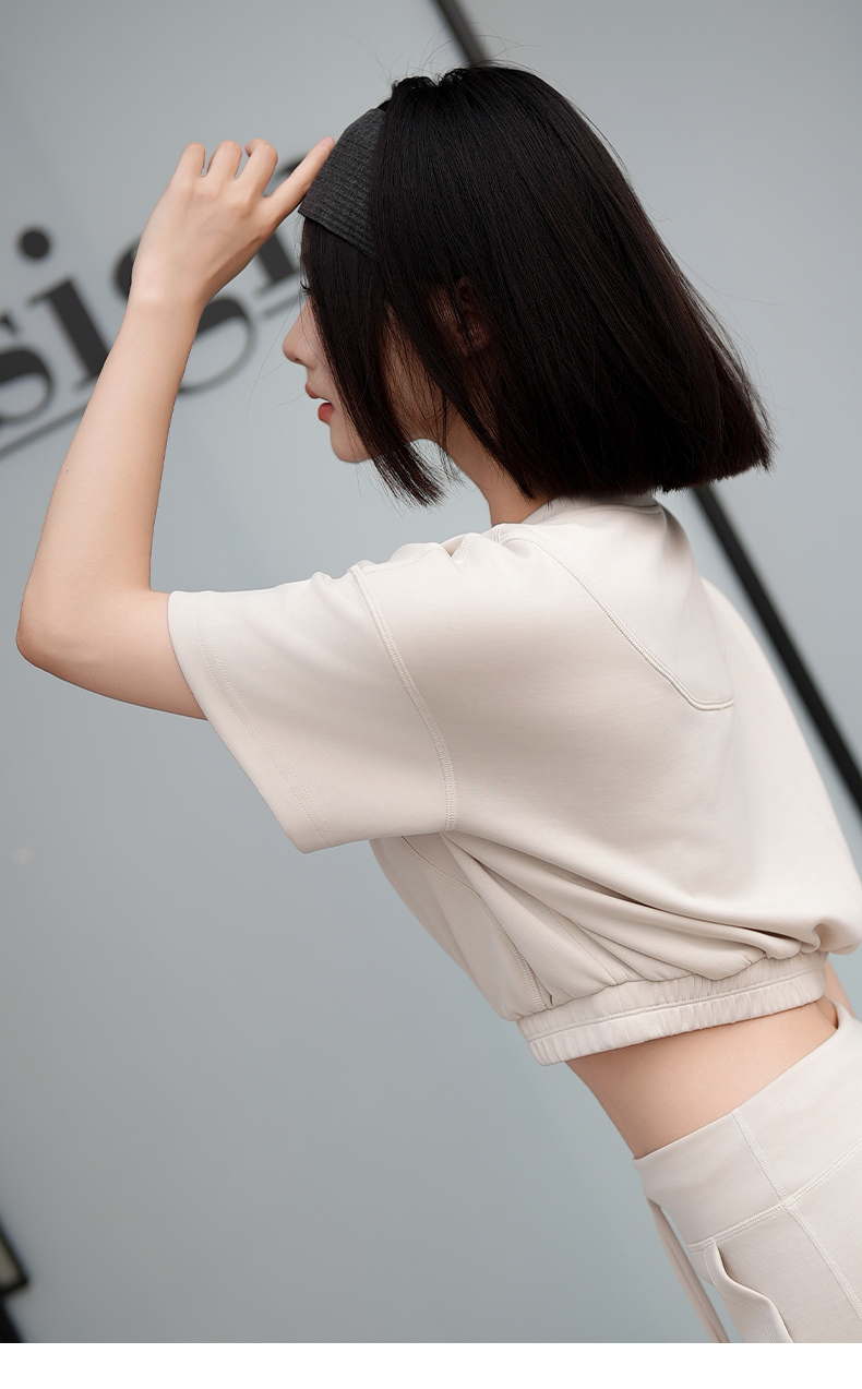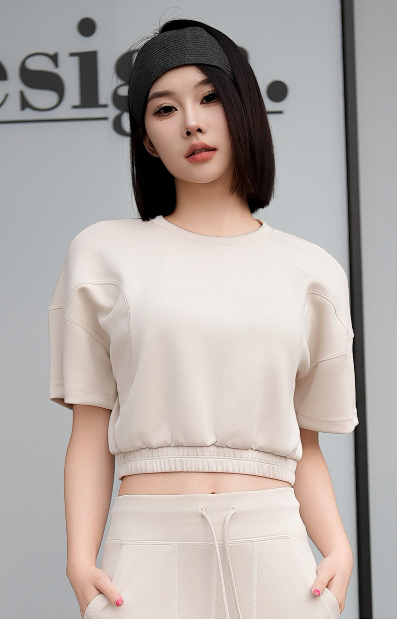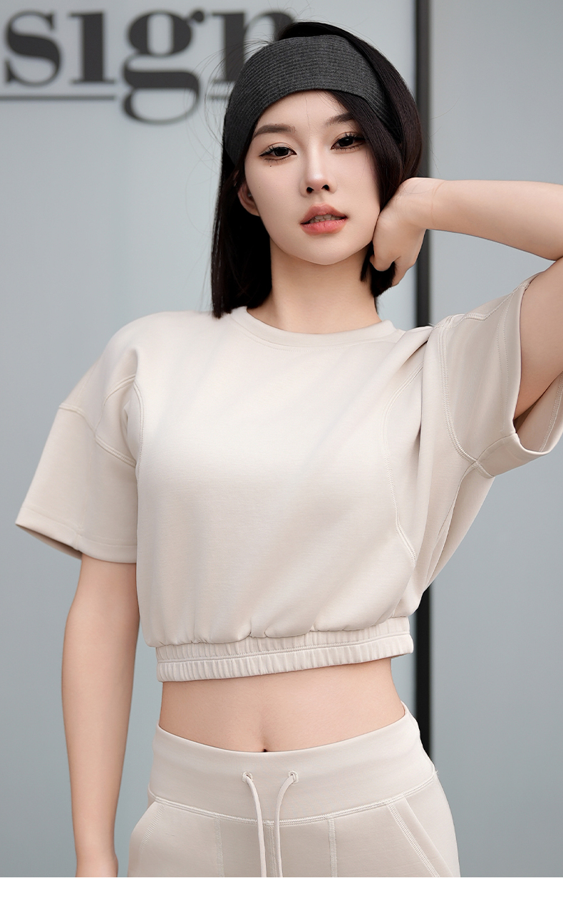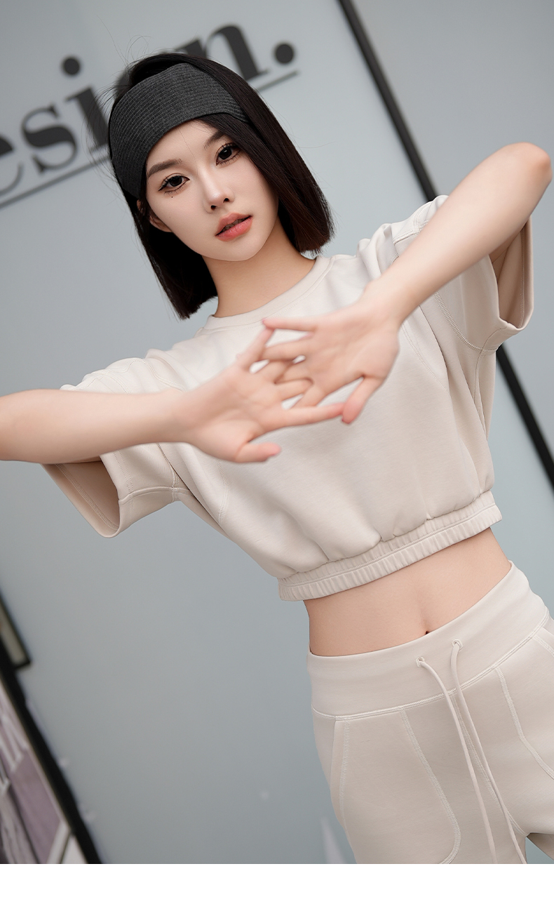 跃牌【倚窗听雨】系列 Athena lulu砂洗莫代尔瑜伽服女褶皱宽松显瘦运动跑步健身短袖T恤DA71