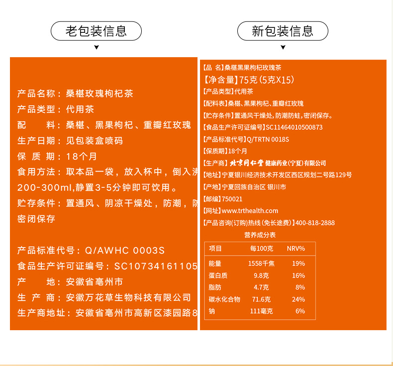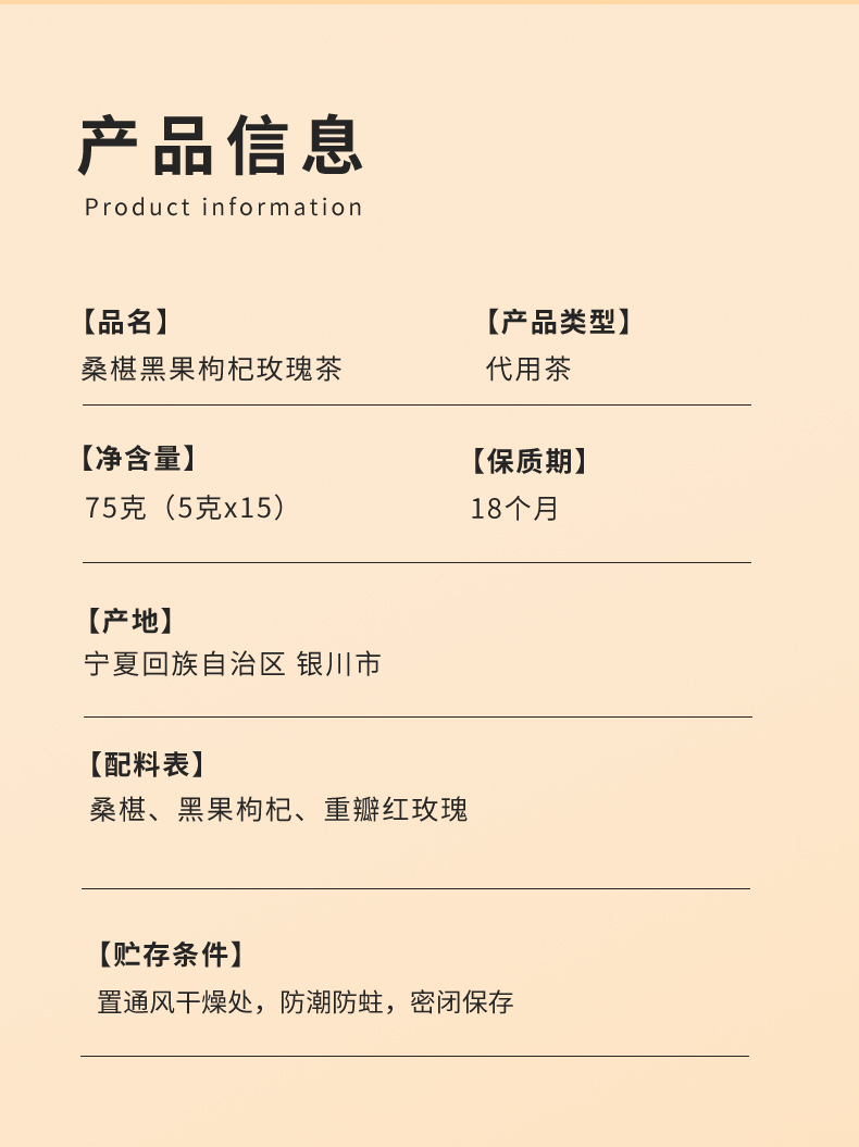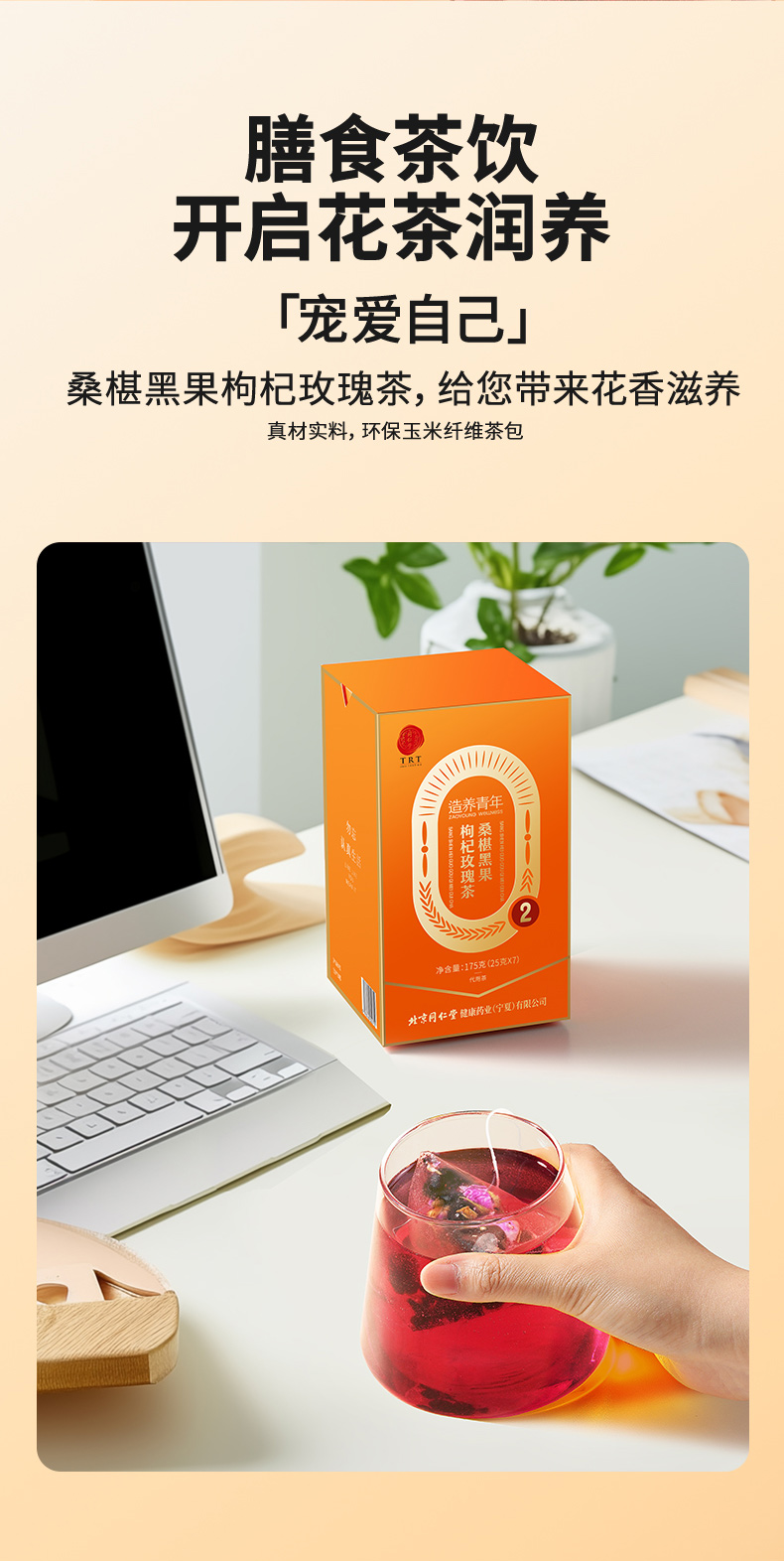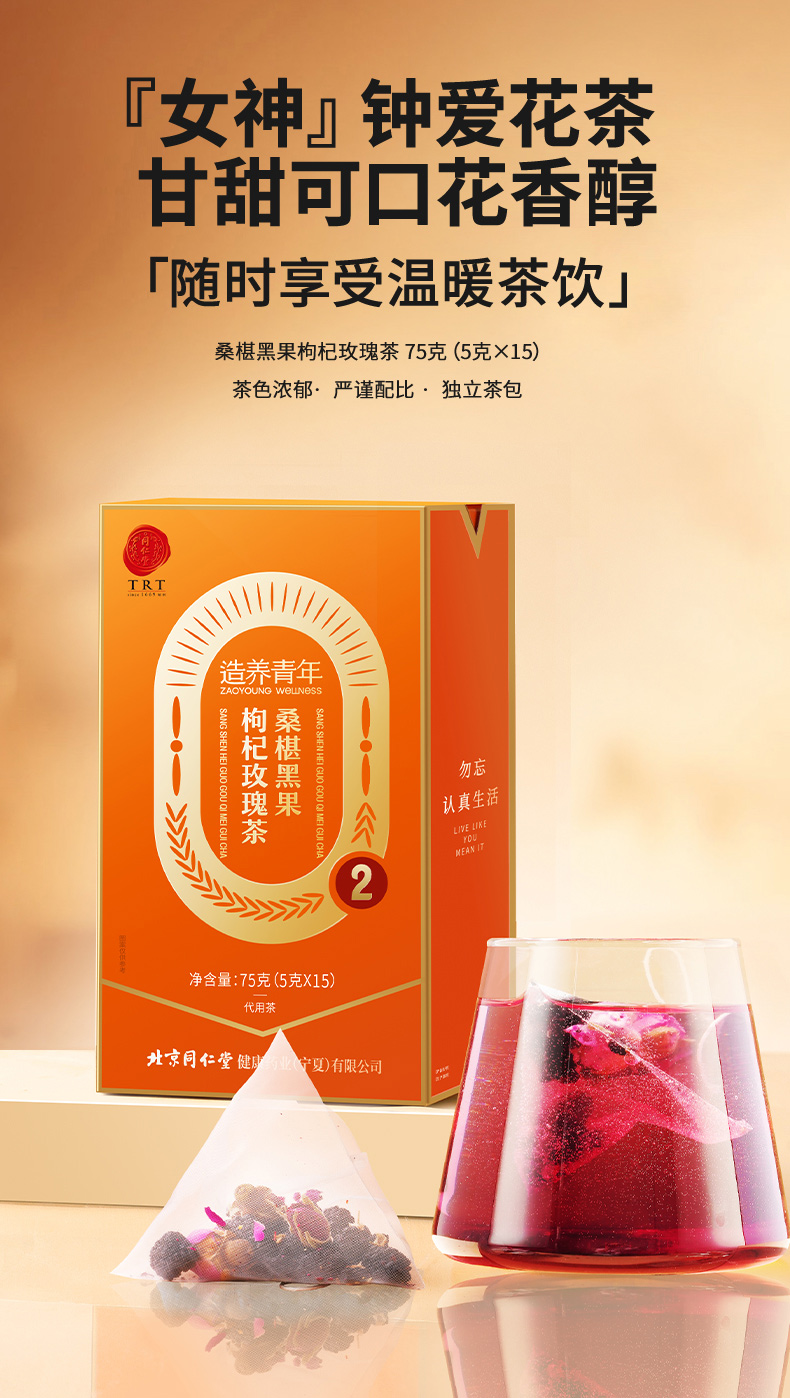 【正宗同仁堂品牌】北京同仁堂桑椹玫瑰枸杞茶75克(5g*15)清新自然 独立包装SY