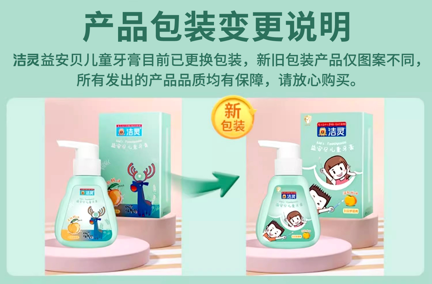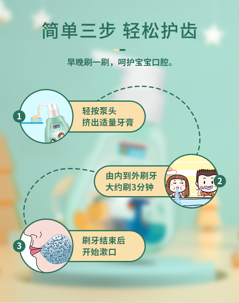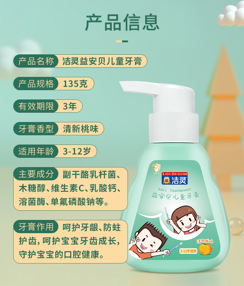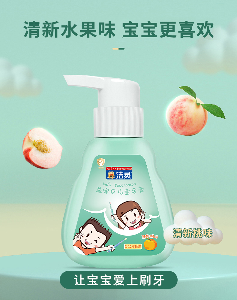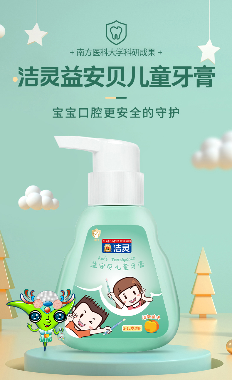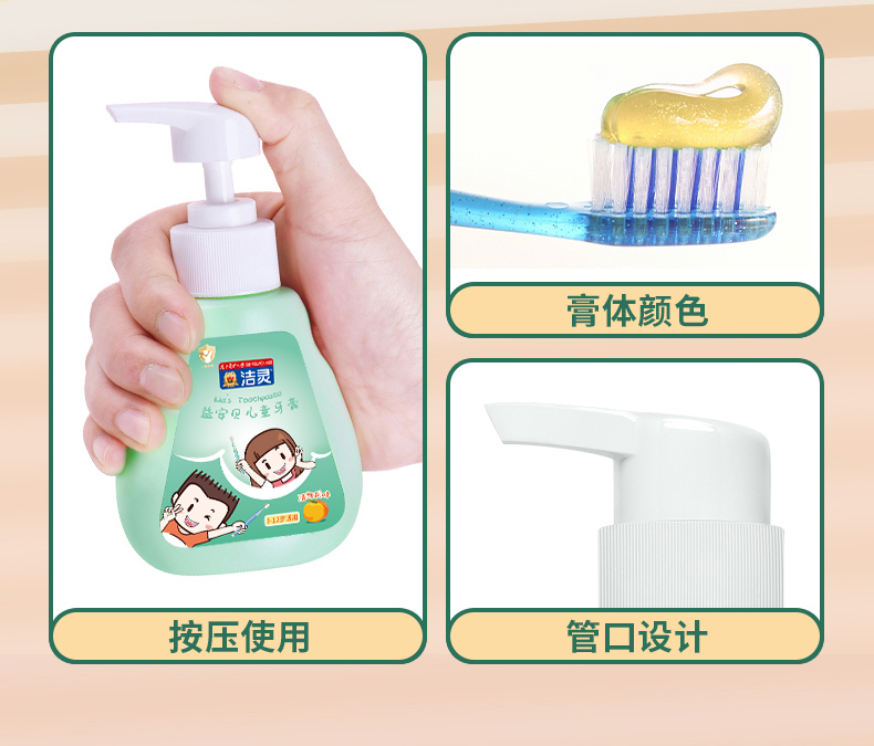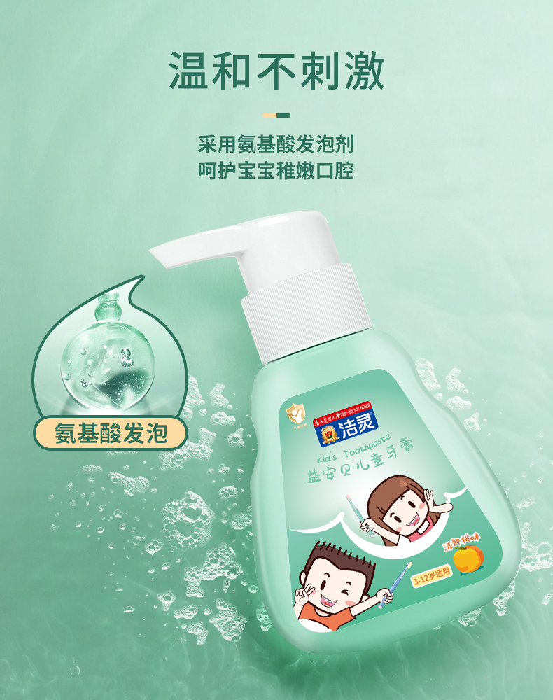 洁灵益安贝儿童牙膏 含益生菌氟 按压式液体牙膏 3-6-12岁适用