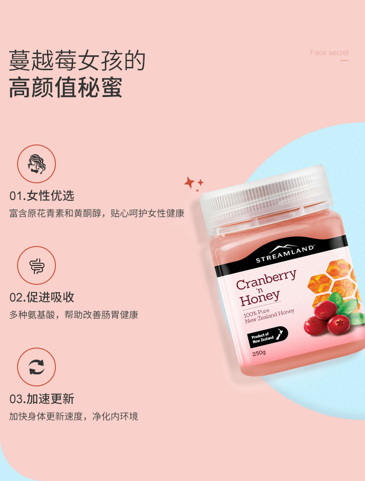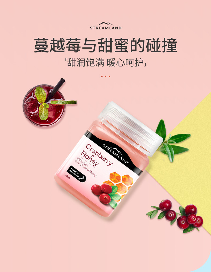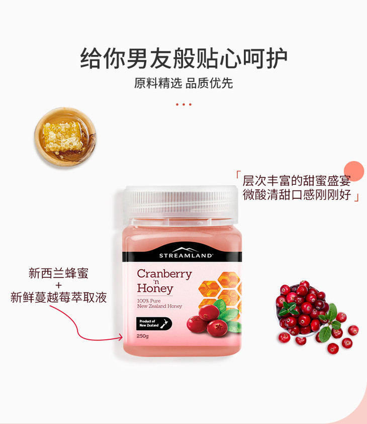 【呵护女性】新西兰 Streamland 新溪岛蔓越莓蜂蜜 500g