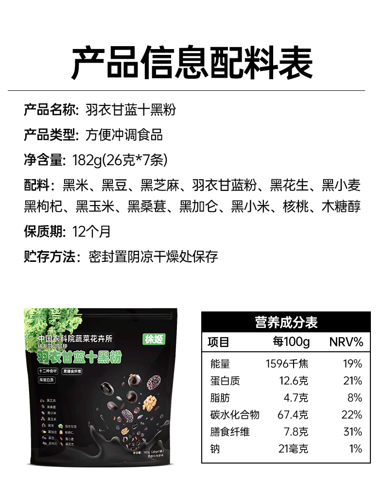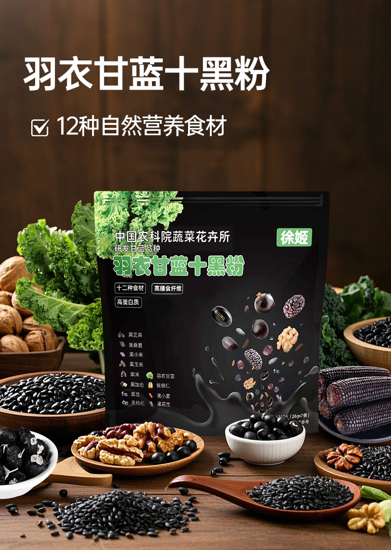 中国农科院研发|羽衣甘蓝十黑粉(12种食材)+羽衣甘蓝薄脆(非油炸)组合装|0蔗糖0香精|独立包装 以黑养黑 健康零食
