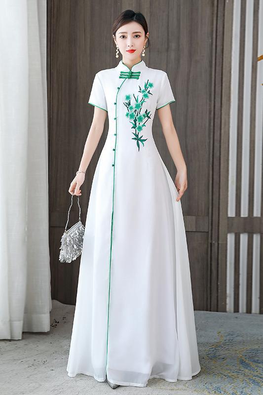 AHM hzj2919复古盘扣改良旗袍连衣裙时尚绣花气质 商品图0
