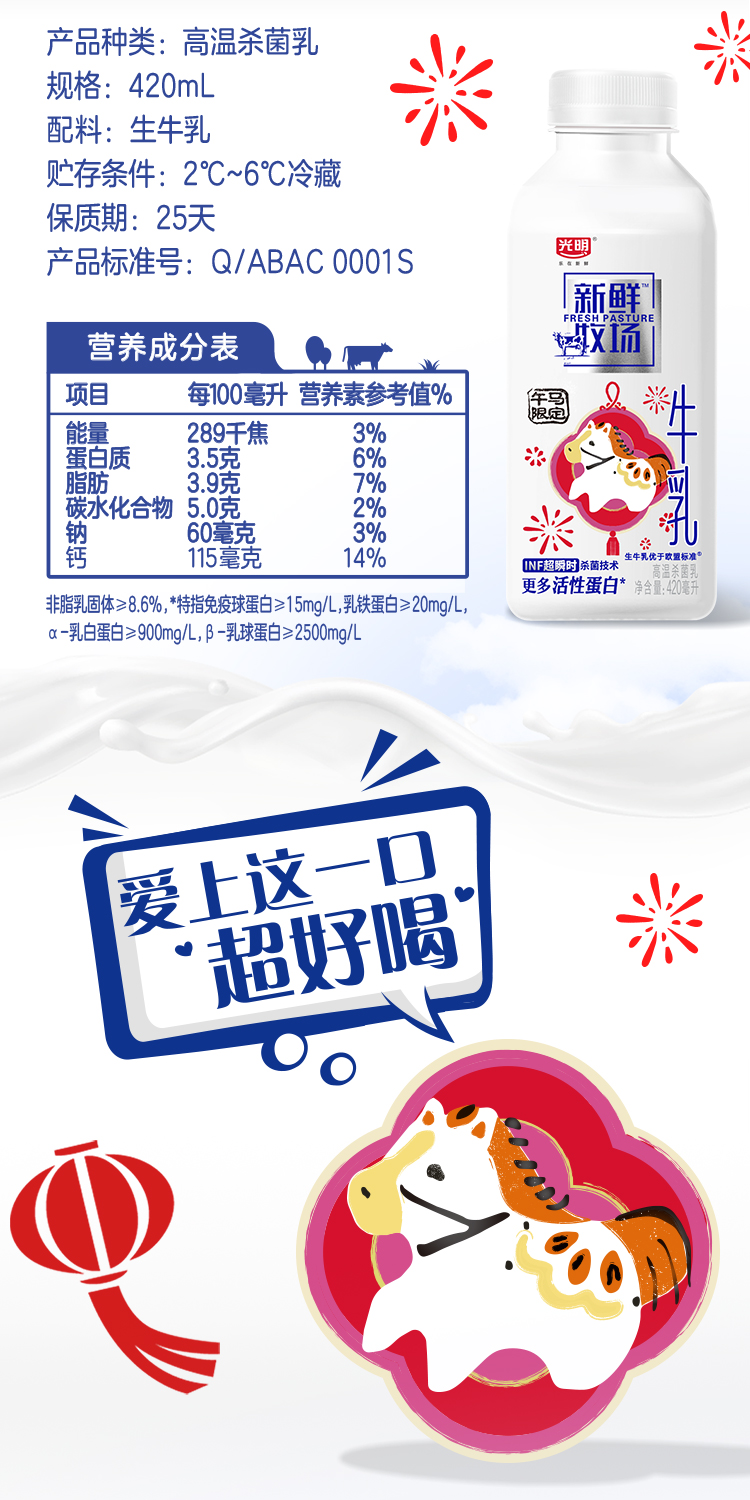 420ml光明新鲜牧场高品质生牛乳