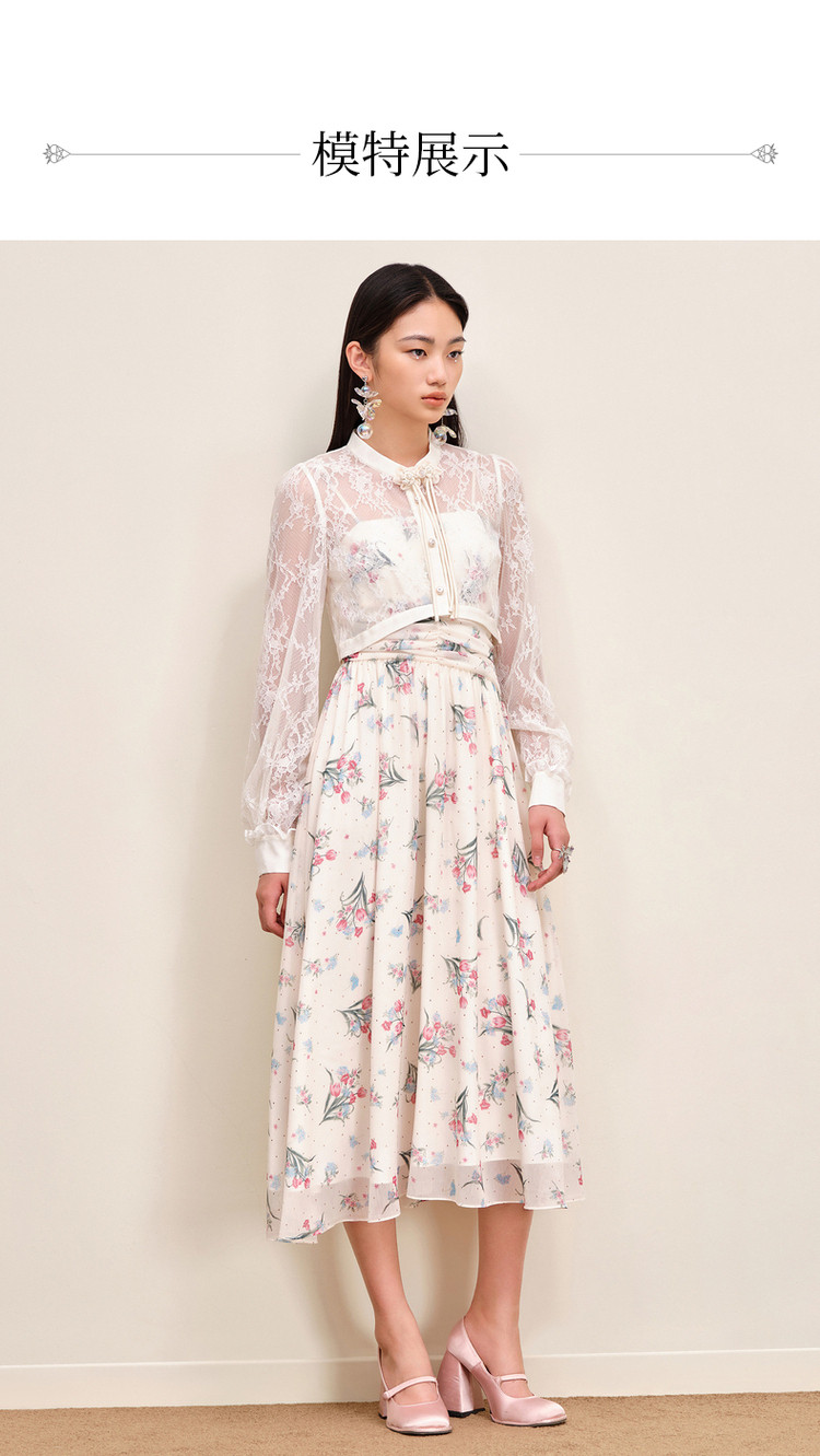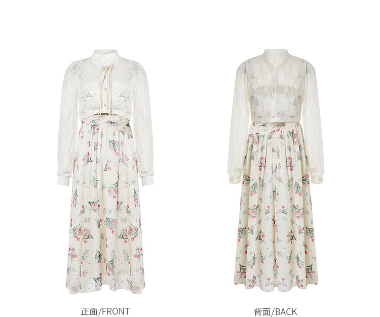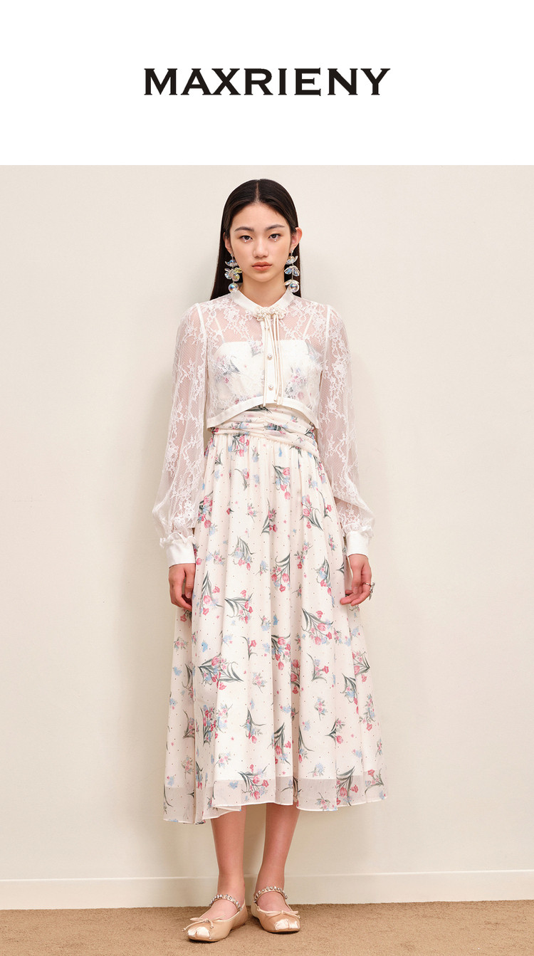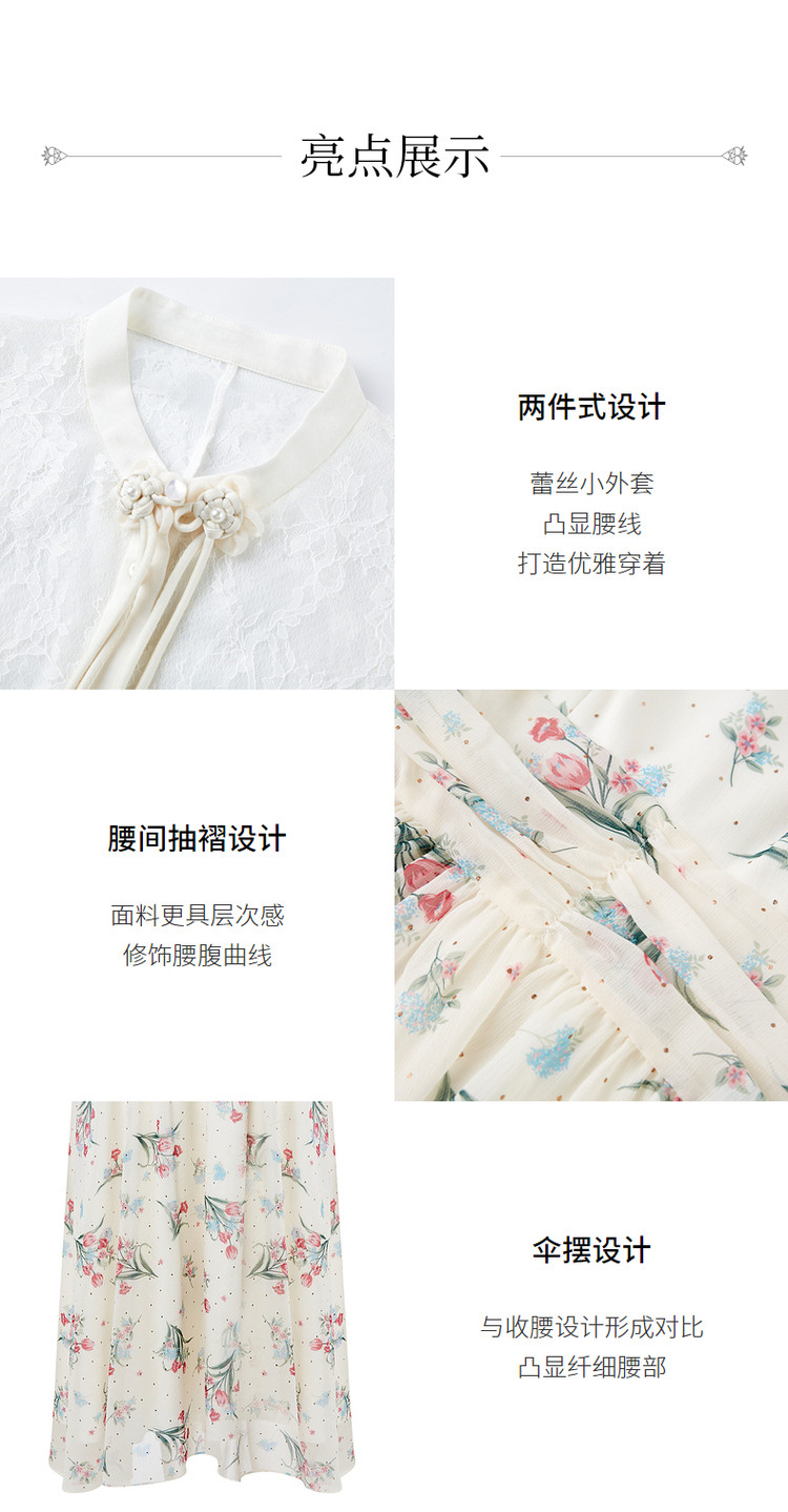MAXRIENY温柔度假仙美风印花连衣裙蕾丝外搭小衫外套两件套套装MS88DR535F10