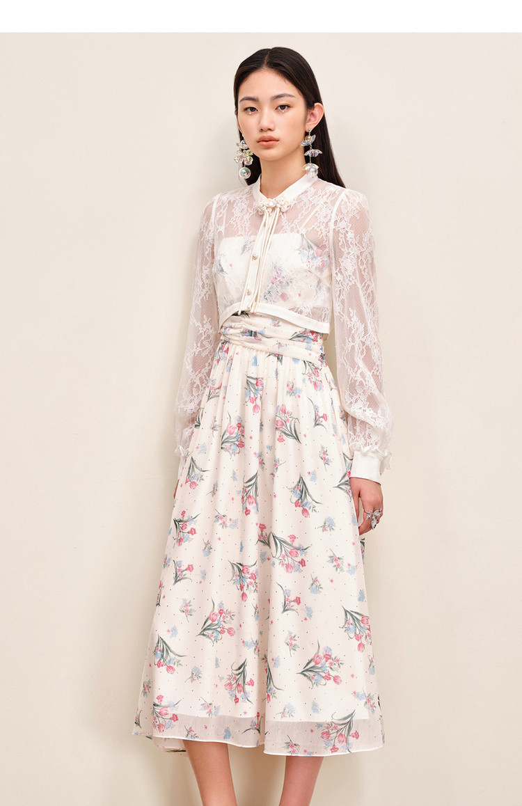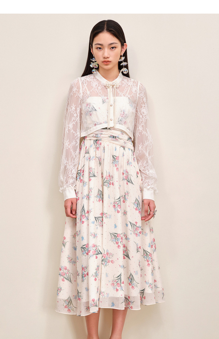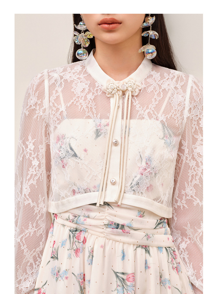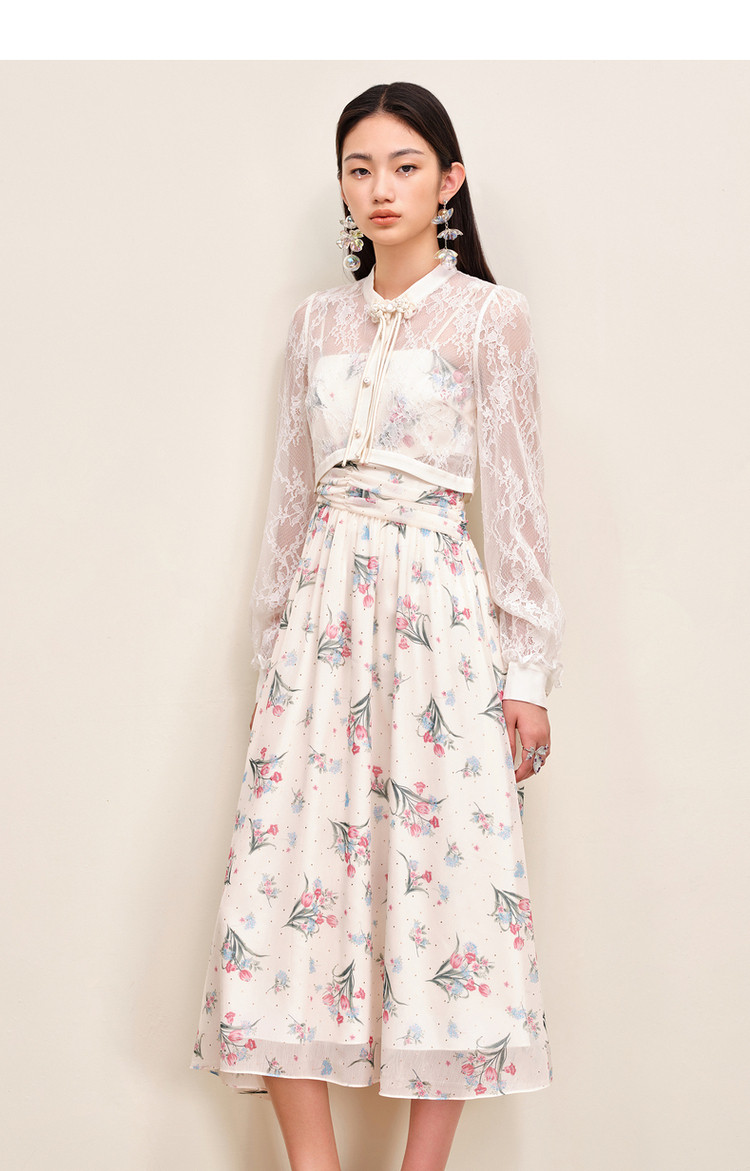 MAXRIENY温柔度假仙美风印花连衣裙蕾丝外搭小衫外套两件套套装MS88DR535F10