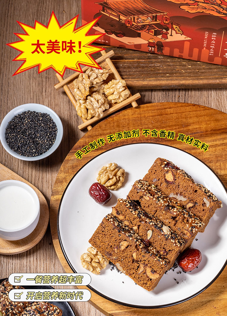 【产品亮点】手工制作,无添加剂 不含香精 真材实料,可以吃到真的大枣和核桃仁的枣糕。低糖低油。健康美味两不误。