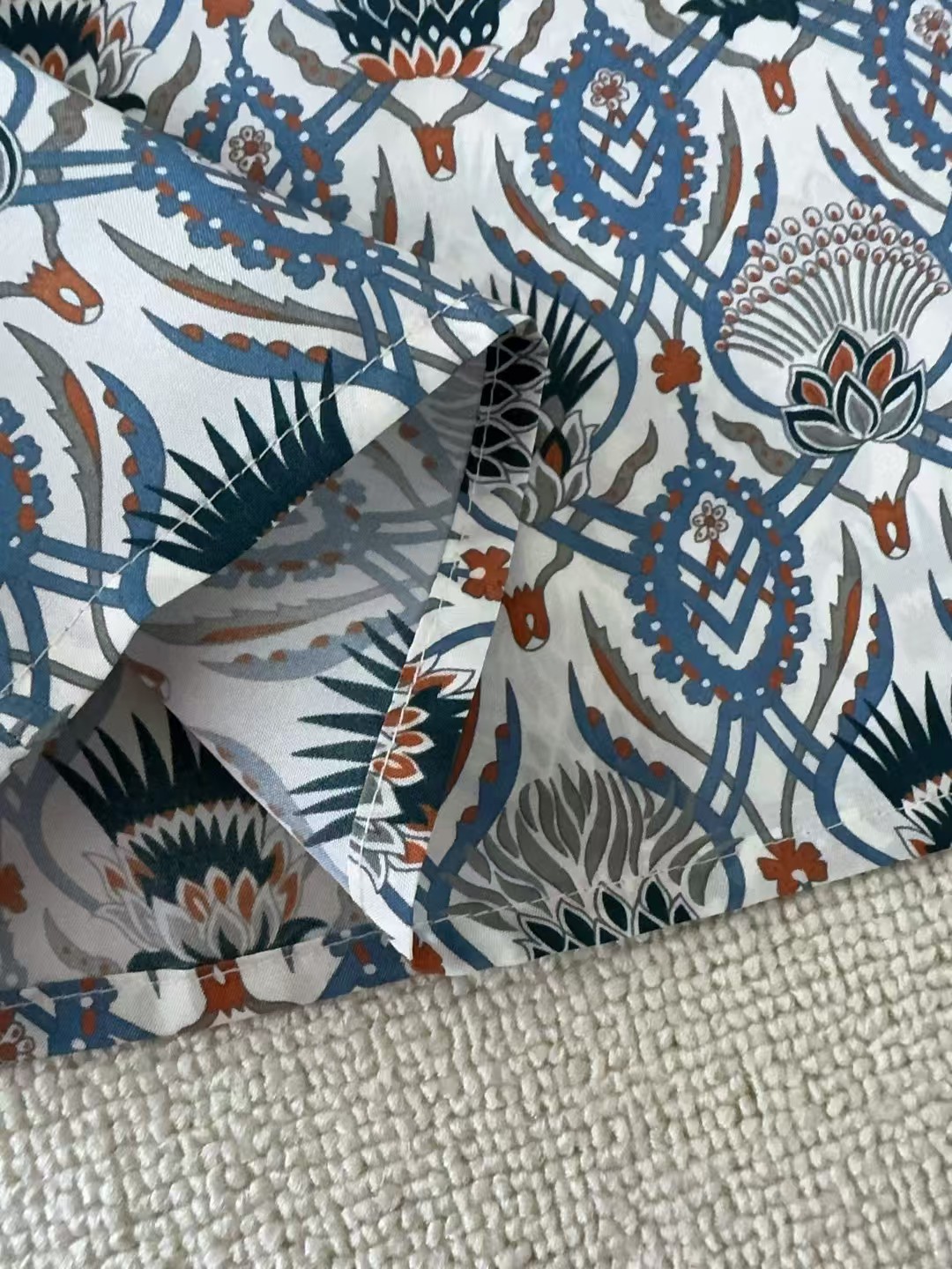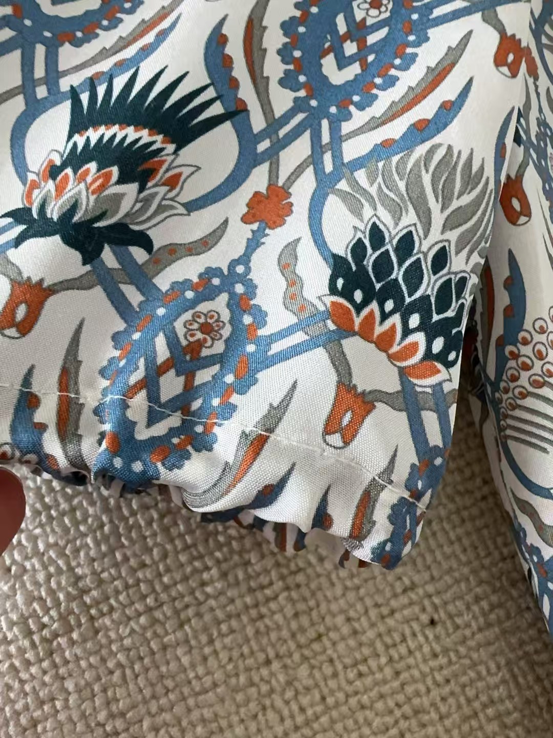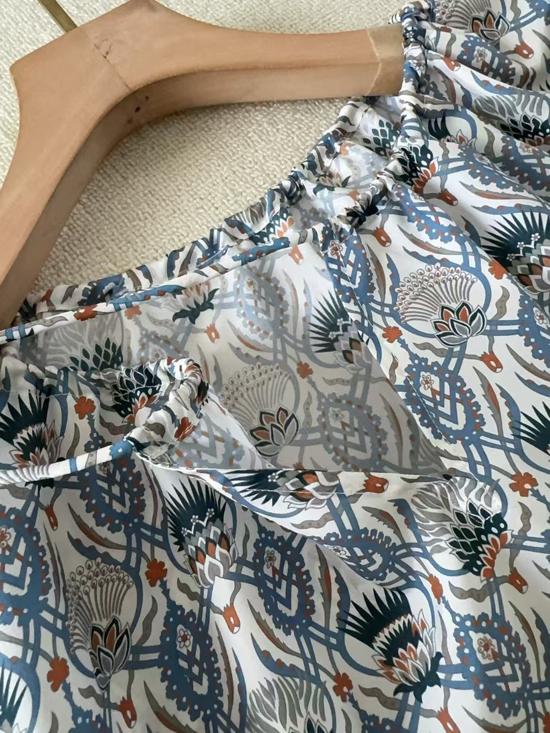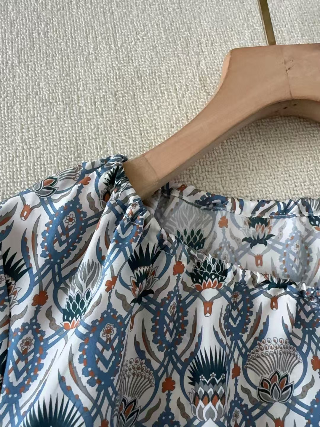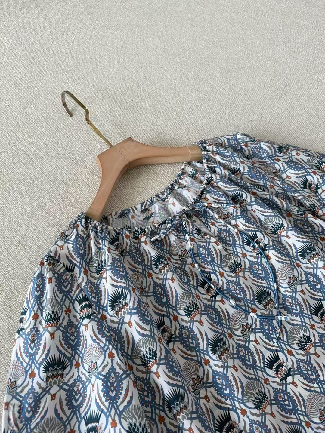 LP*重磅印花系带短袖真丝上衣,重磅的100%电力纺真丝,很少见的高奢质感真丝,面料比常规真丝更有厚实感及挺括感,因此只要是这组面料出的成衣,都是不需要里衬的,足足的真丝用料,宽松直筒版型,领口及袖口处,均设计本布抽绳,绑带设计 用超细真丝缠绕,可随意系成蝴蝶结或自然垂坠 增添慵懒随性的浪漫气息,上身特别的年轻、有活动感,日常通勤或是休闲、度假,这组花色都很出彩~