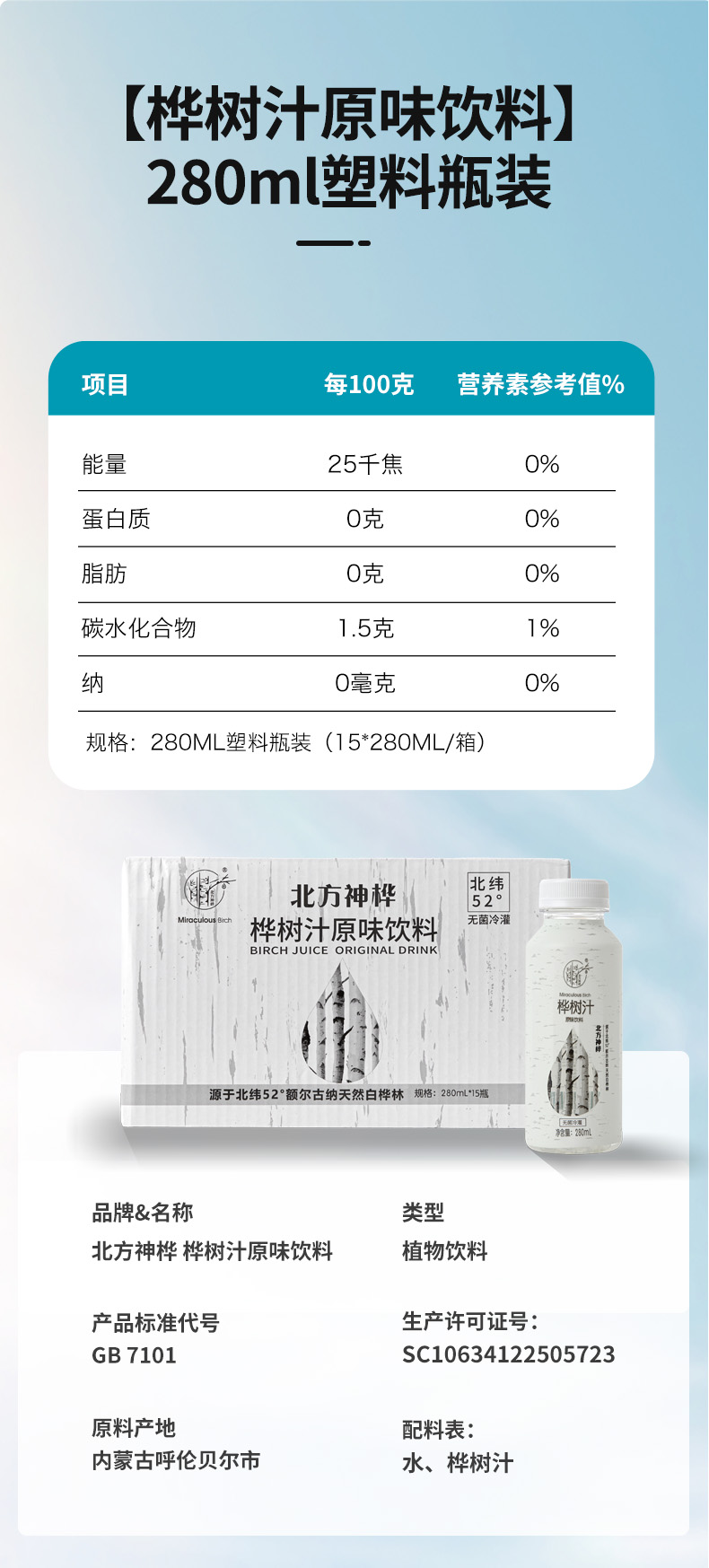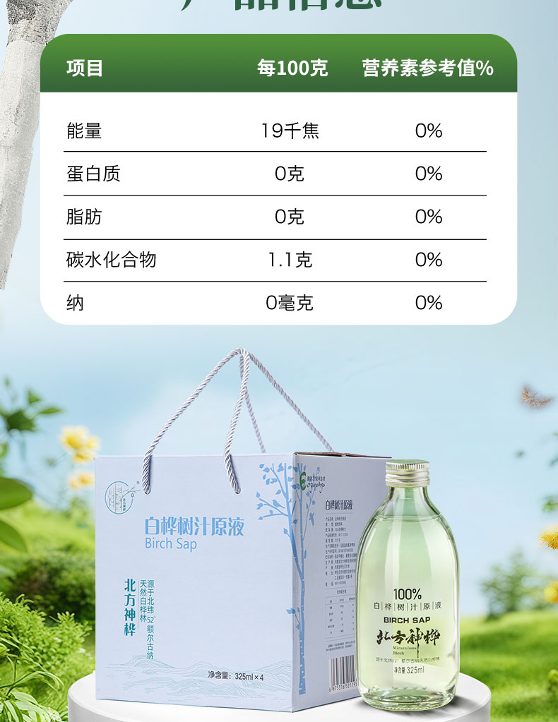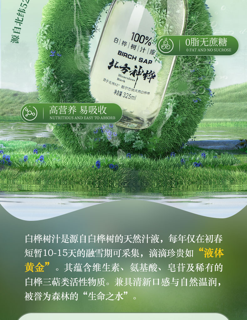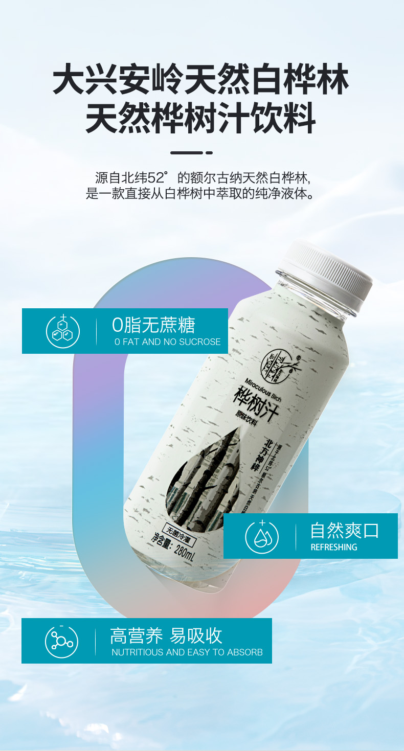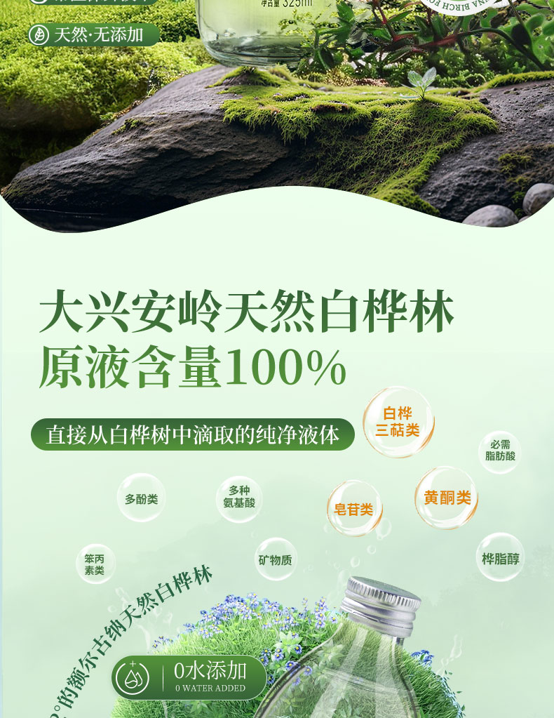 白桦树汁原液&饮料 | 325ml/280ml 富含矿物质及多种维生素 口感清爽 大兴安岭天然白桦林 北方神桦