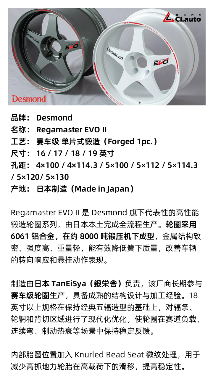 Desmond Regamaster EVO II 锻造轮圈 16/17/18/19 4×100/114.3 / 5×100/112/114.3/120/130 日本进口 No.251104