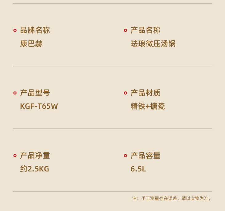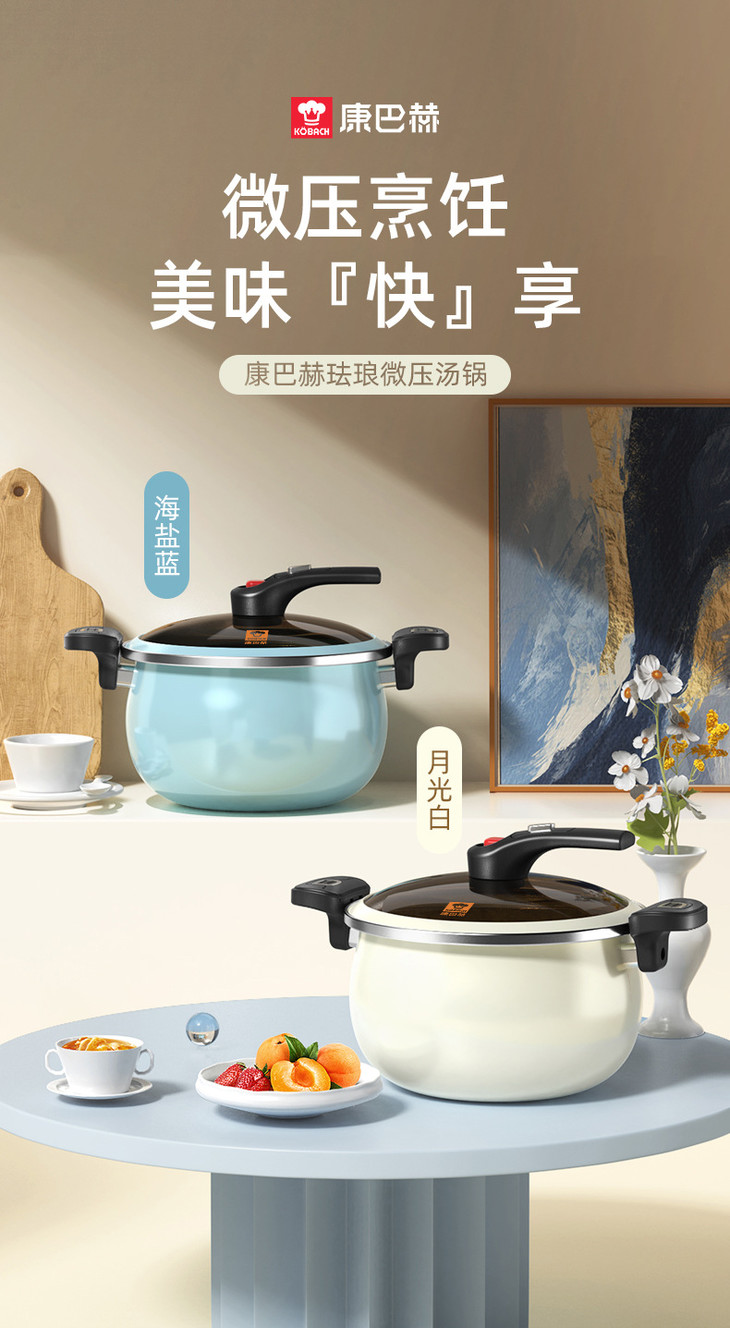 【康巴赫】珐琅锅家用微压炖锅 6.5L(蓝色)炖盅砂锅煲汤锅焖烧锅不粘锅电磁炉煮锅 【14042017】KGF-T65B