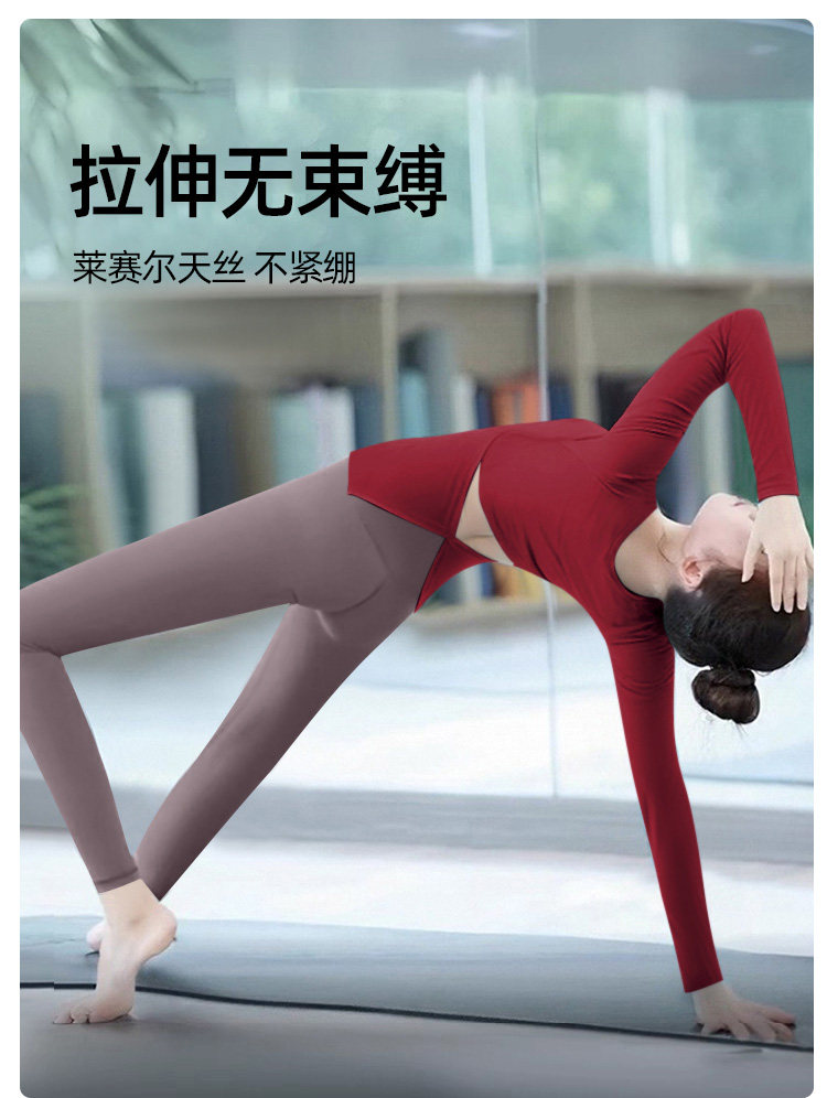 跃牌【海听系列】莱赛尔运动上衣春秋款裸感修腰瑜伽服长袖显瘦瑜伽长袖XC107(不带胸垫)