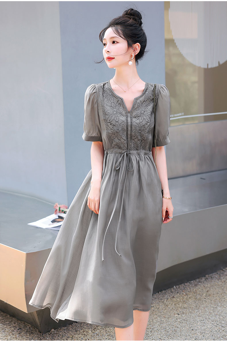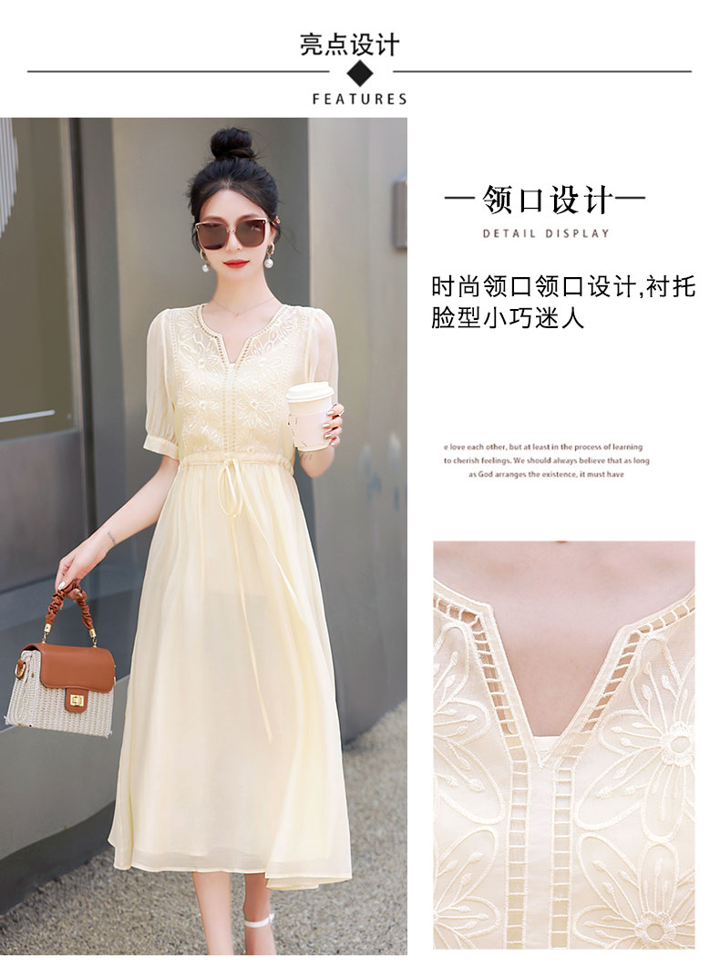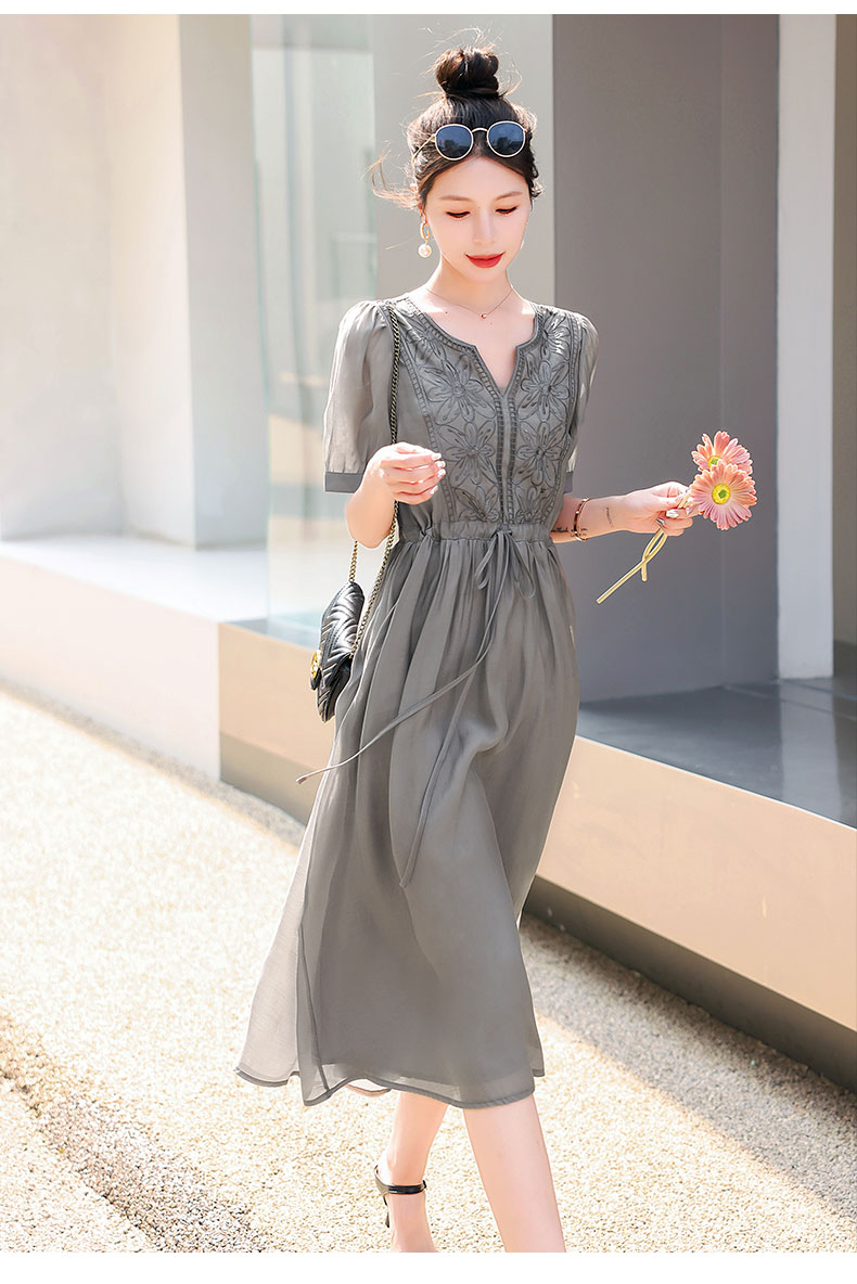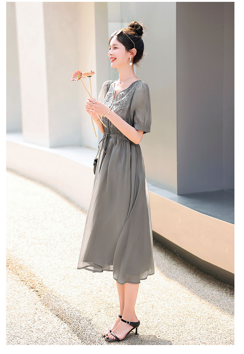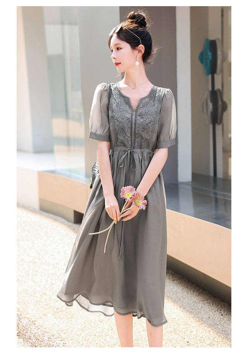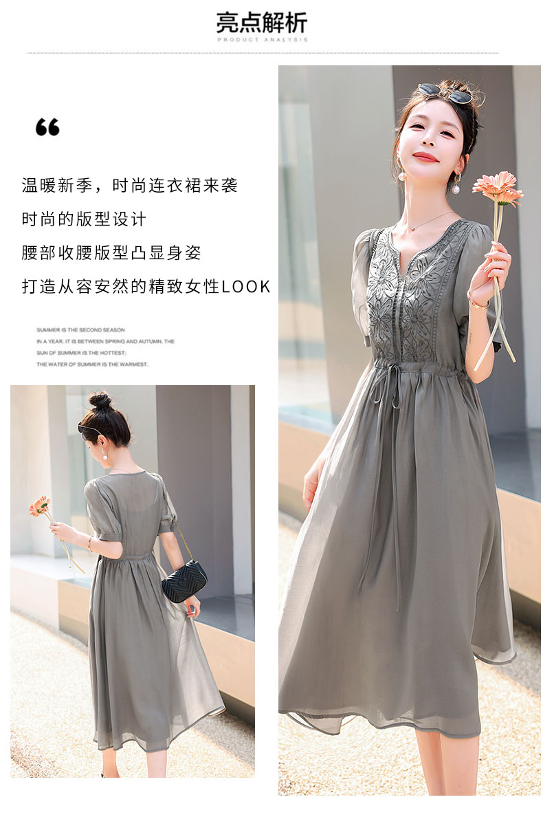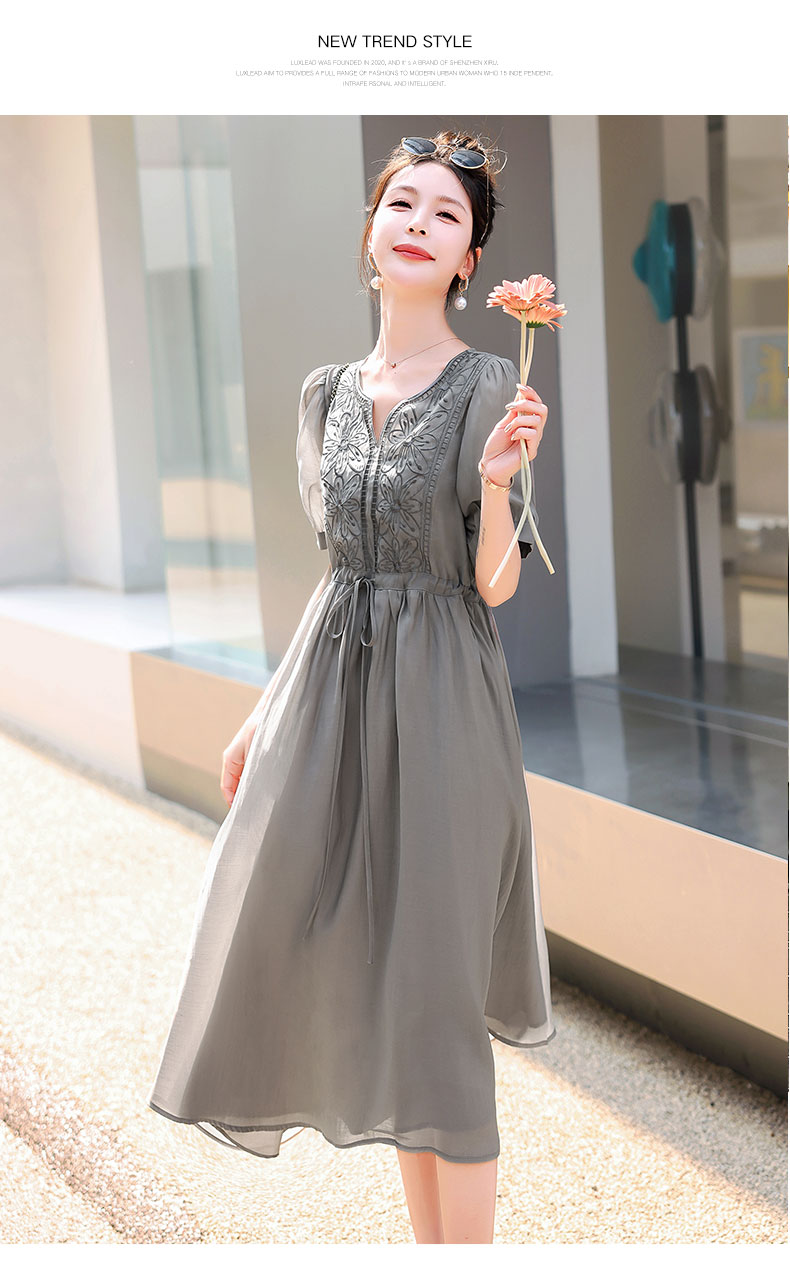 舒适百搭,天丝刺绣系腰带宽松版显瘦中长裙(85-150斤可穿)HR-SYY2313-1