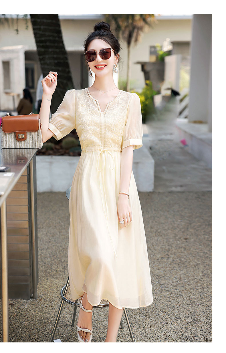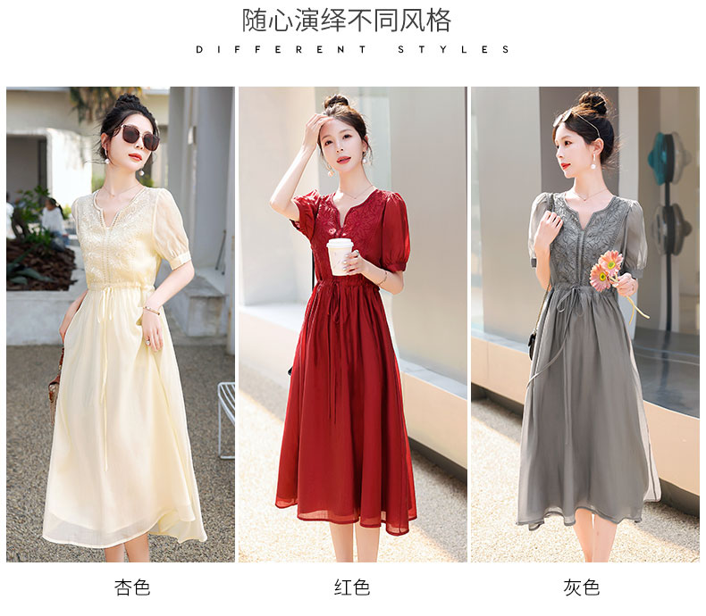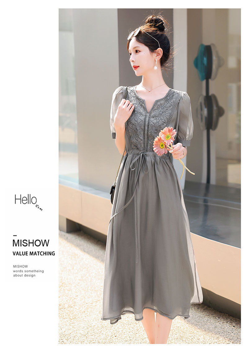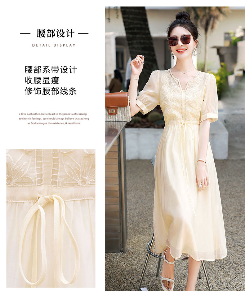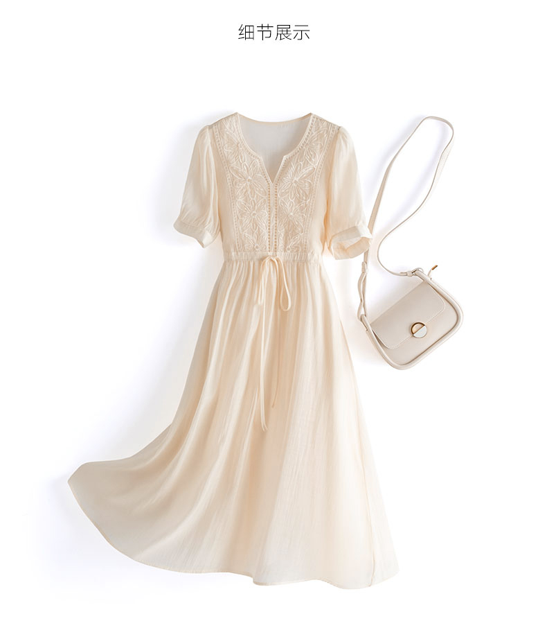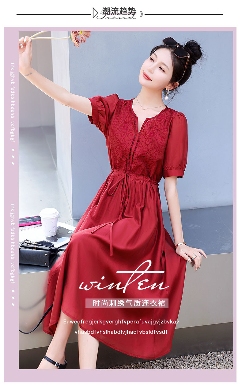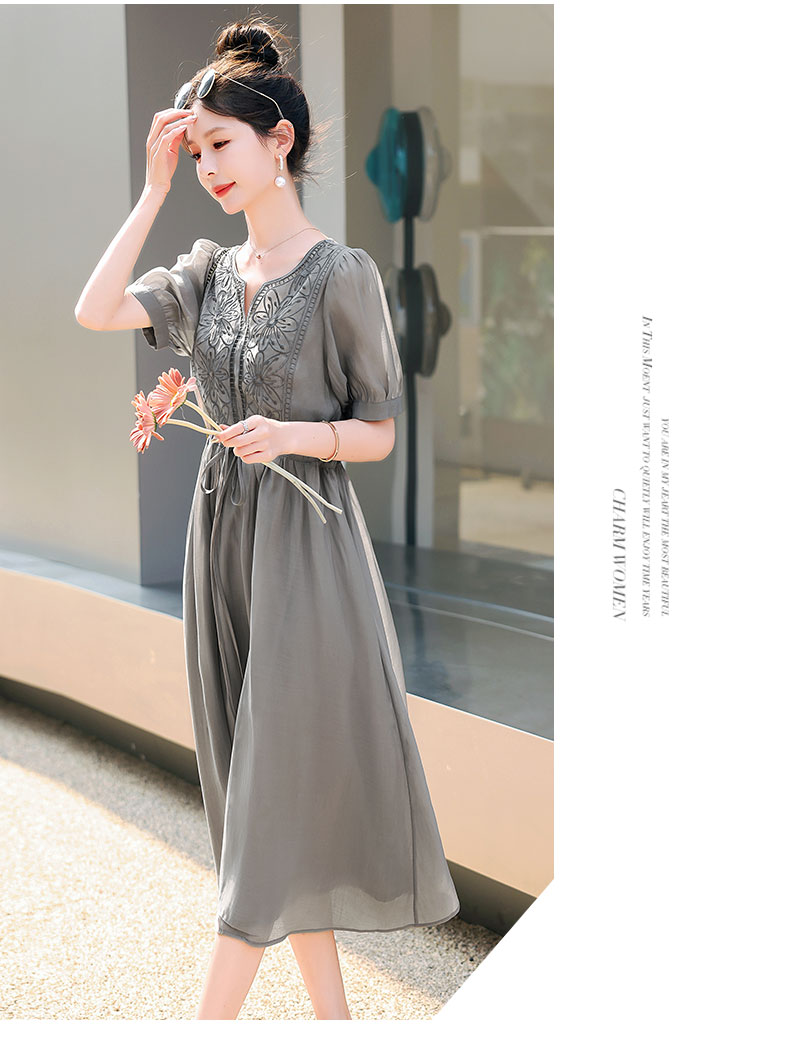 舒适百搭,天丝刺绣系腰带宽松版显瘦中长裙(85-150斤可穿)HR-SYY2313-1