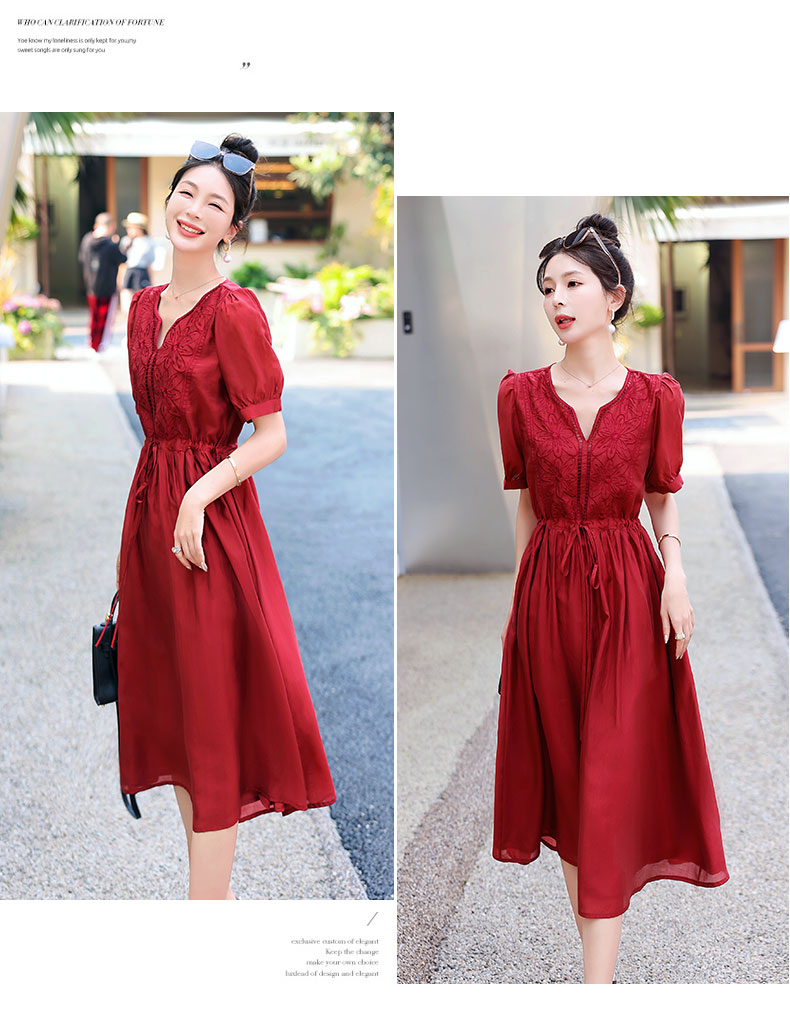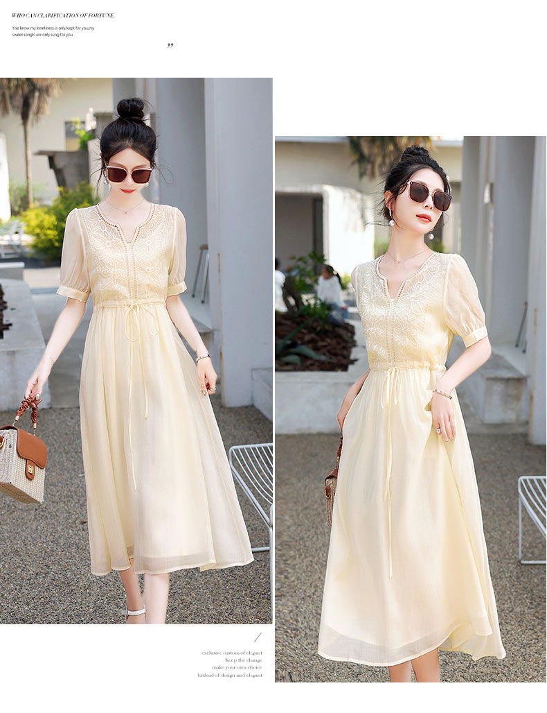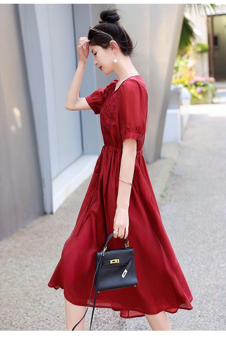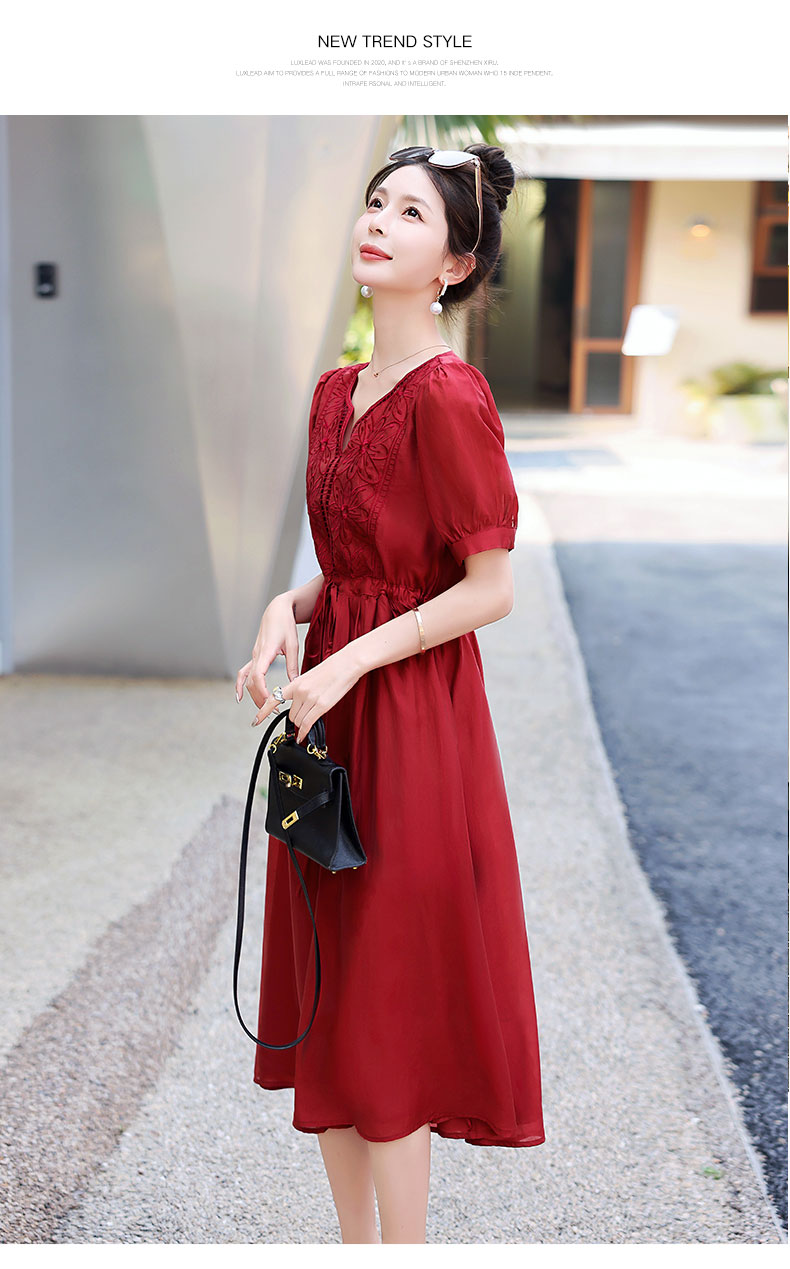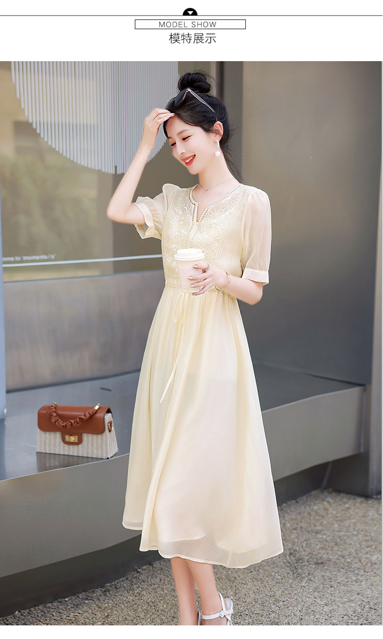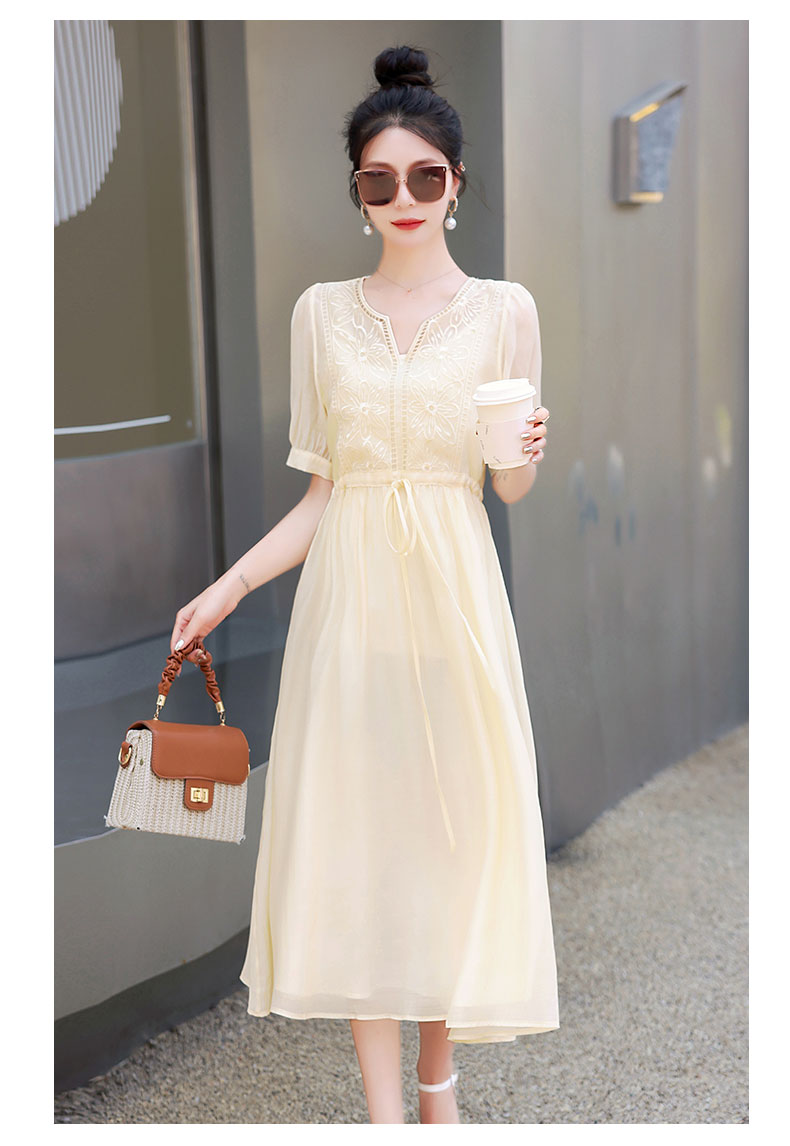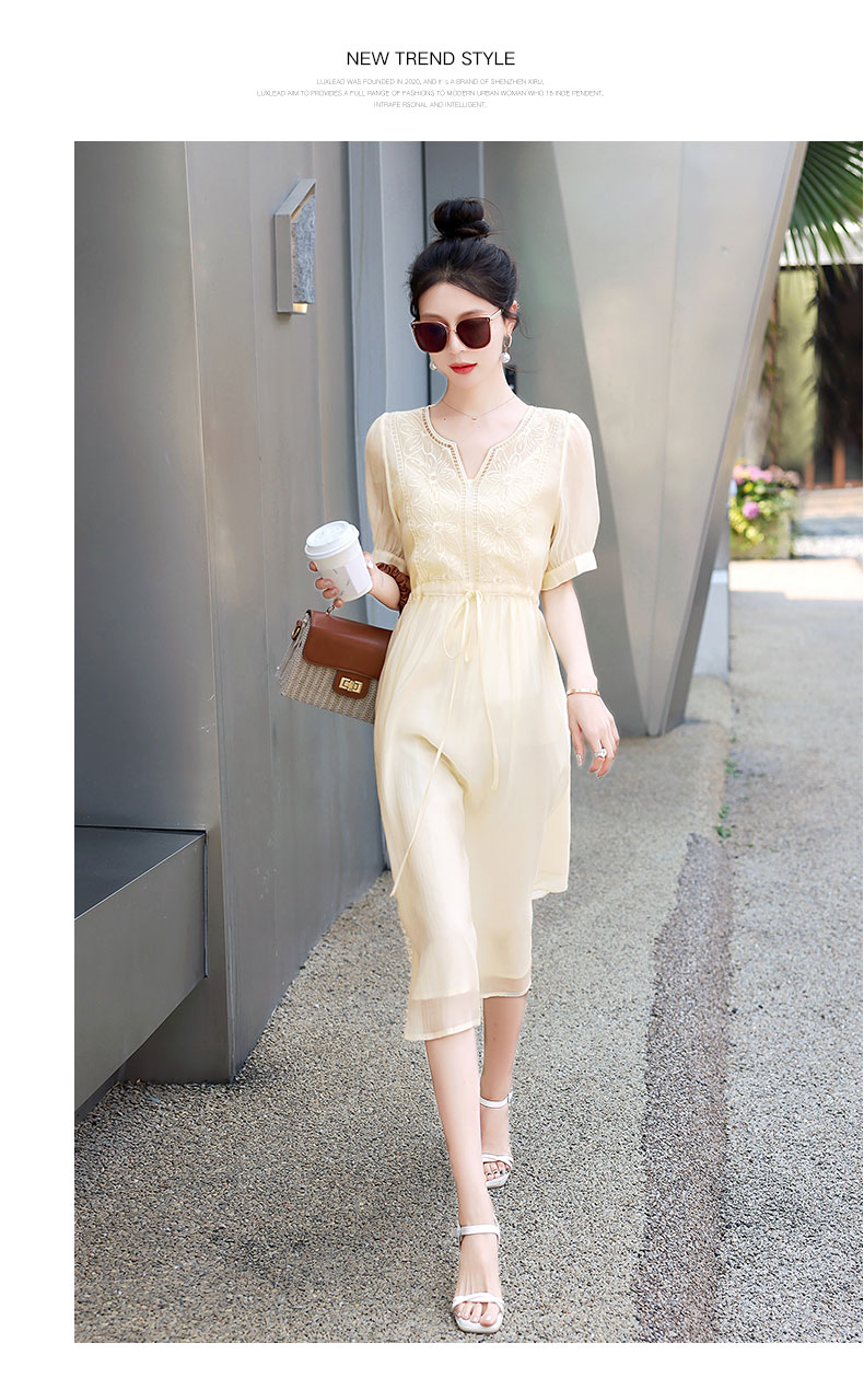 舒适百搭,天丝刺绣系腰带宽松版显瘦中长裙(85-150斤可穿)HR-SYY2313-1