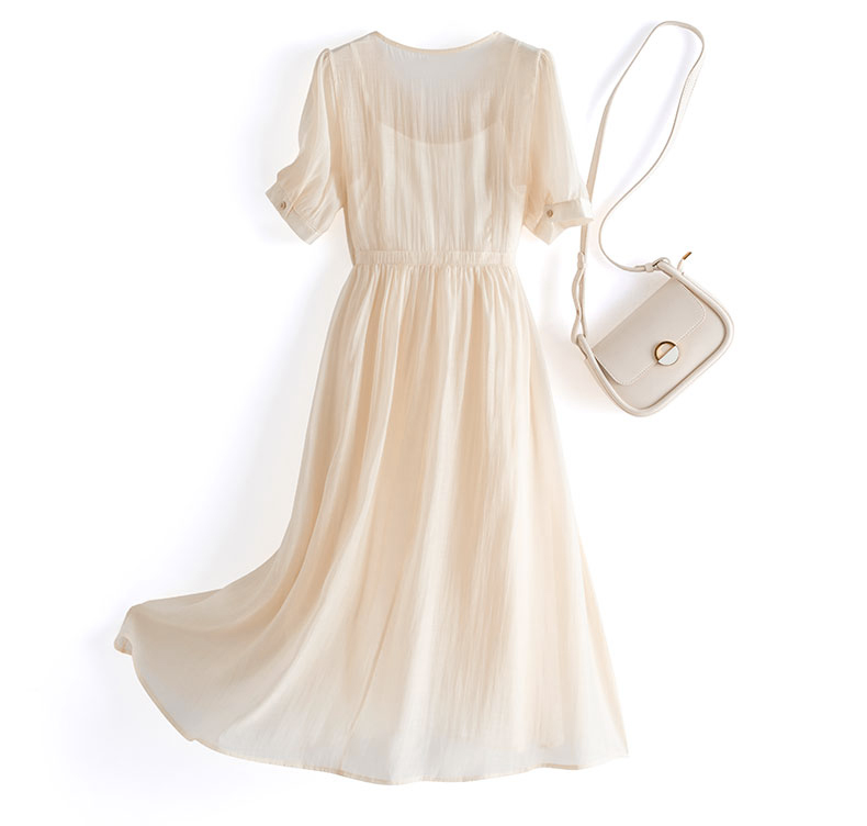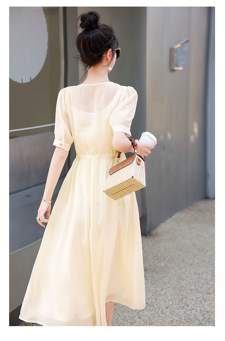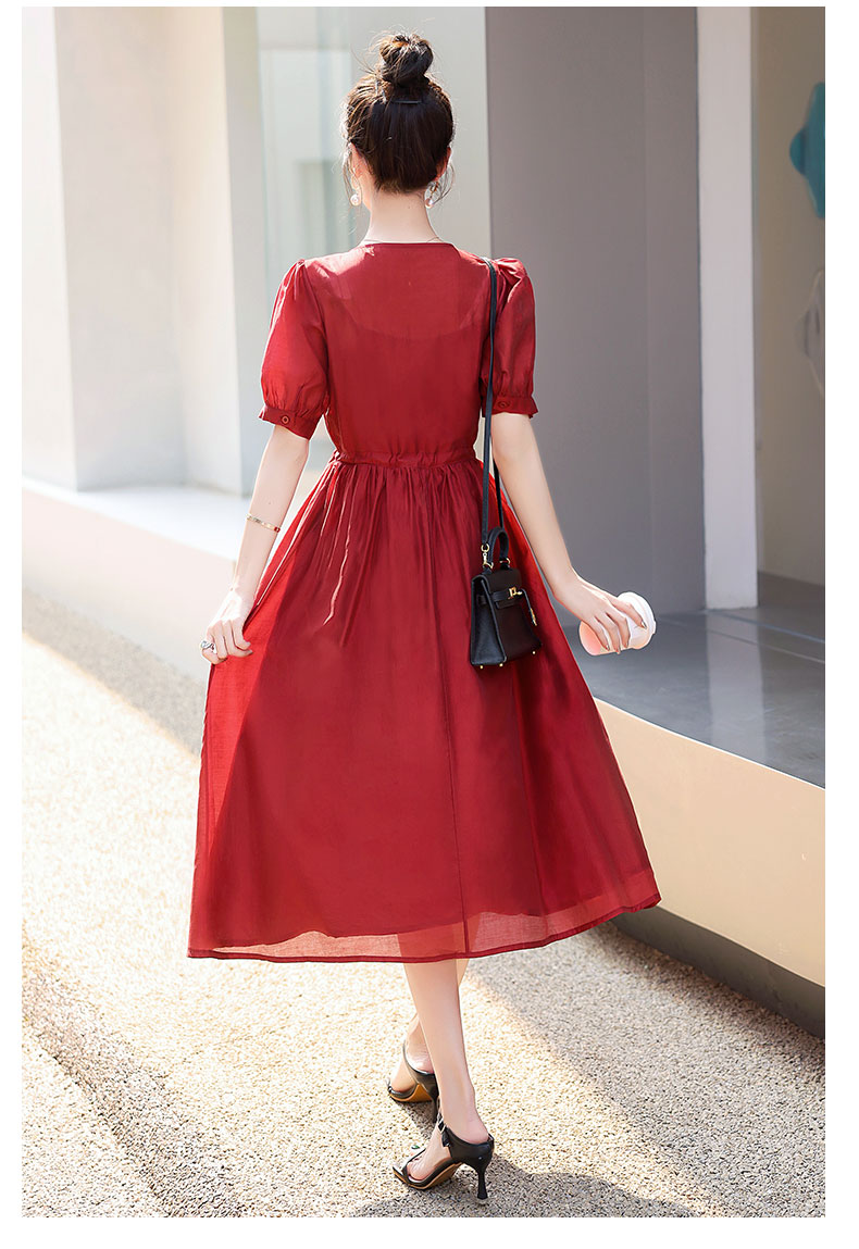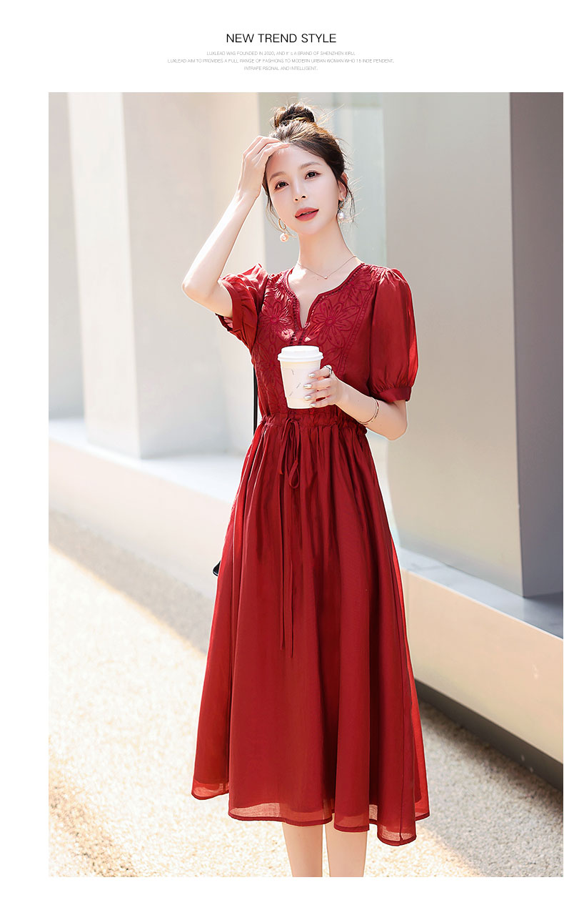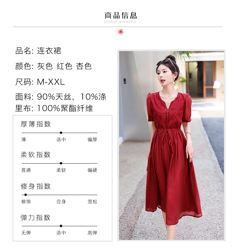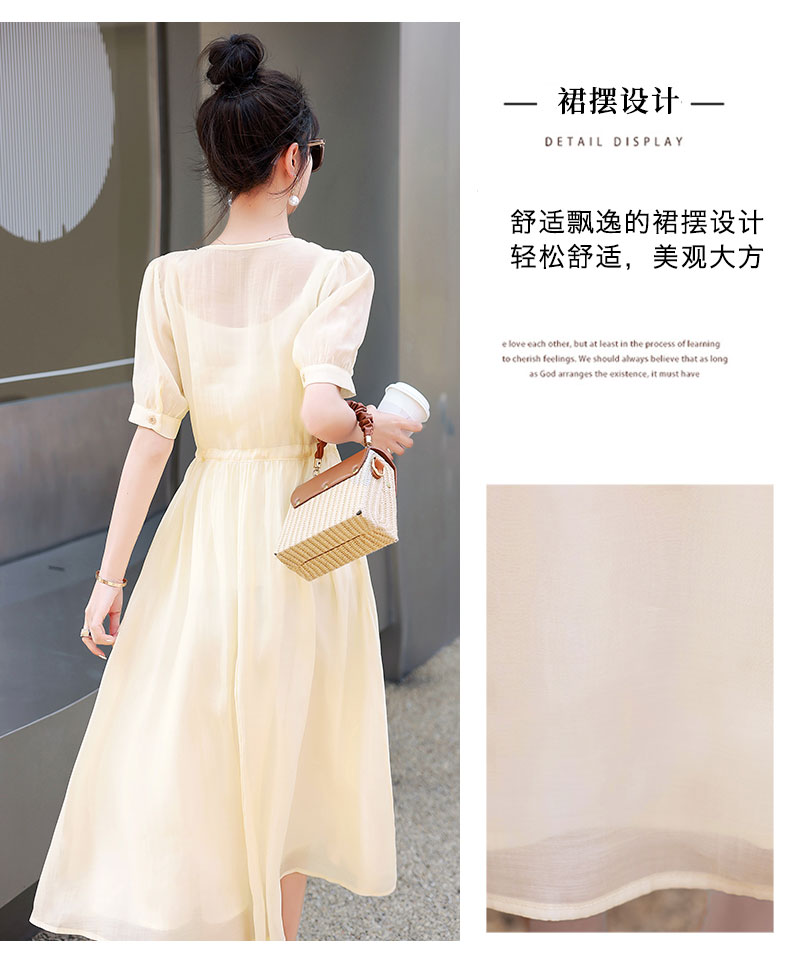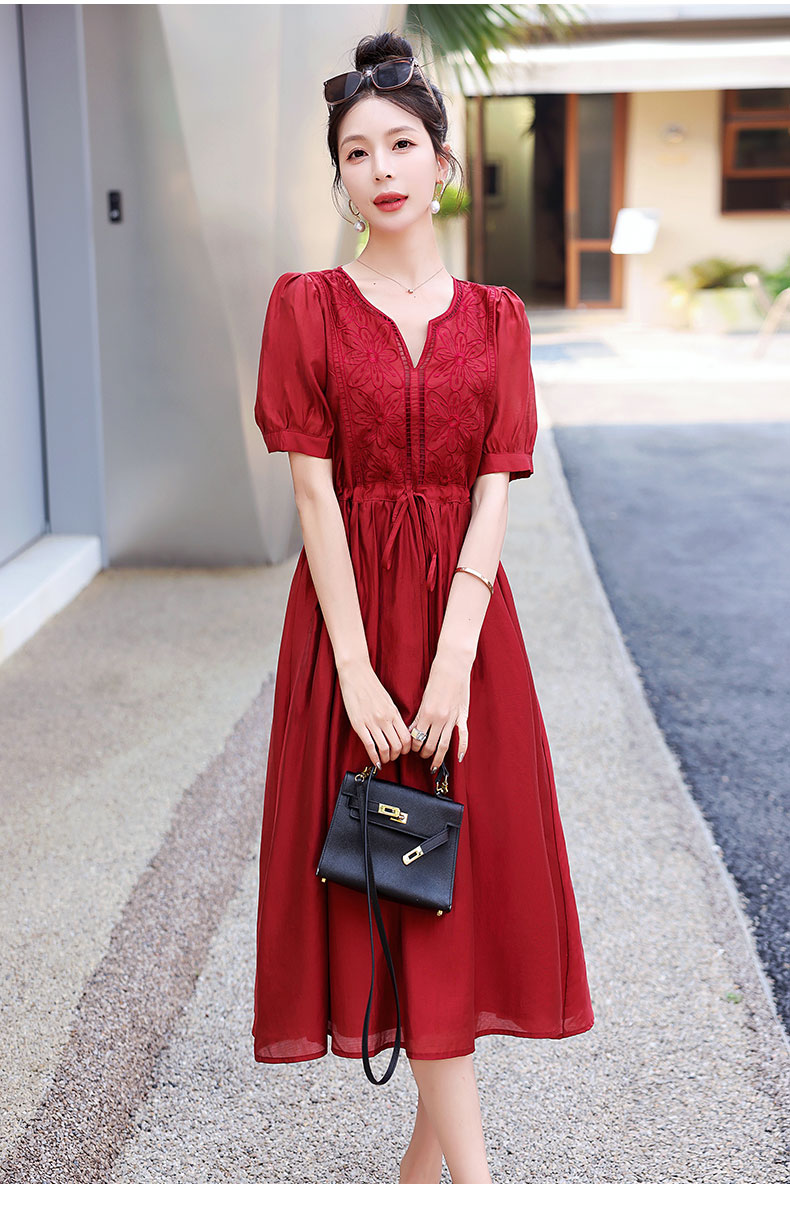 舒适百搭,天丝刺绣系腰带宽松版显瘦中长裙(85-150斤可穿)HR-SYY2313-1