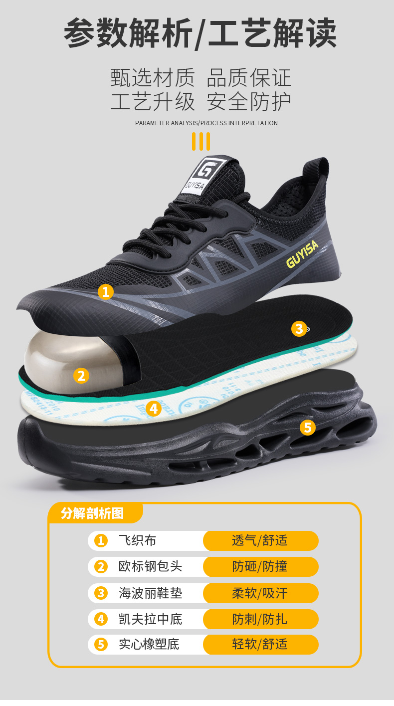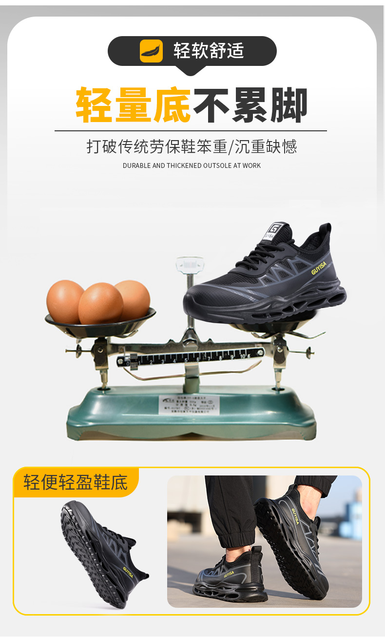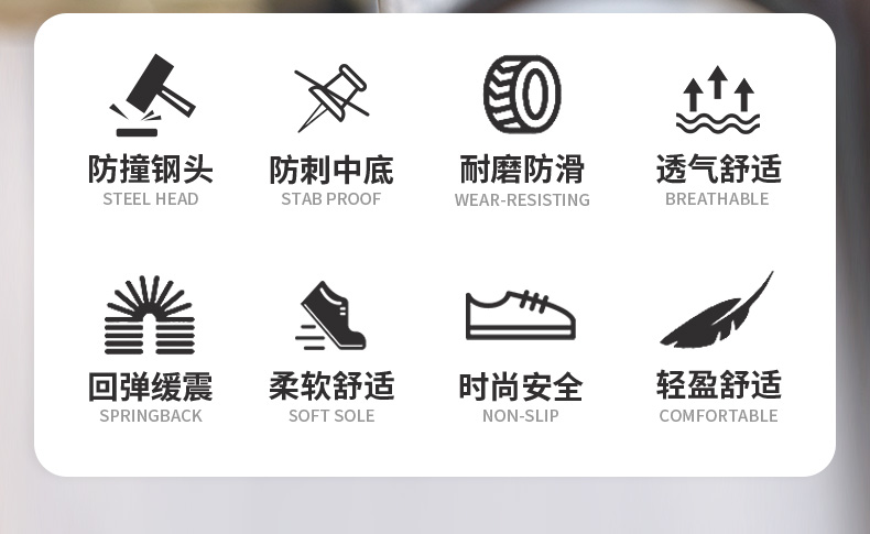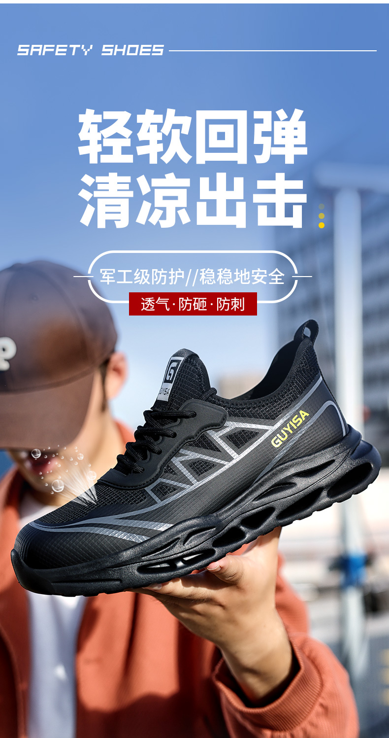新品四季款劳保鞋欧标钢头轻便款式防砸防刺穿工作轻便舒适软底透气
