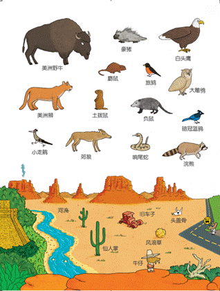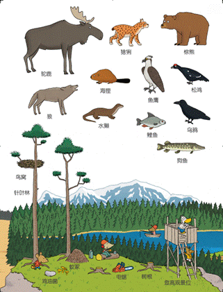 虽是绘本,动物形象却非常严谨地遵循了自然事实,在阅读过程中有很好的科普意义。同样,作者并非对动物进行单独陈列描绘,也并非按照动物科属分类,而是按照不同的自然环境,将动物以及自然界中的人类活动依次呈现出来,增添了绘本的趣味性和故事性。