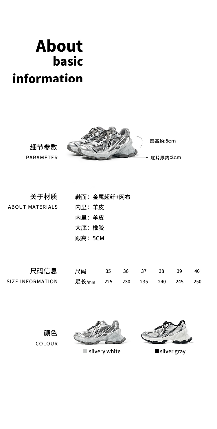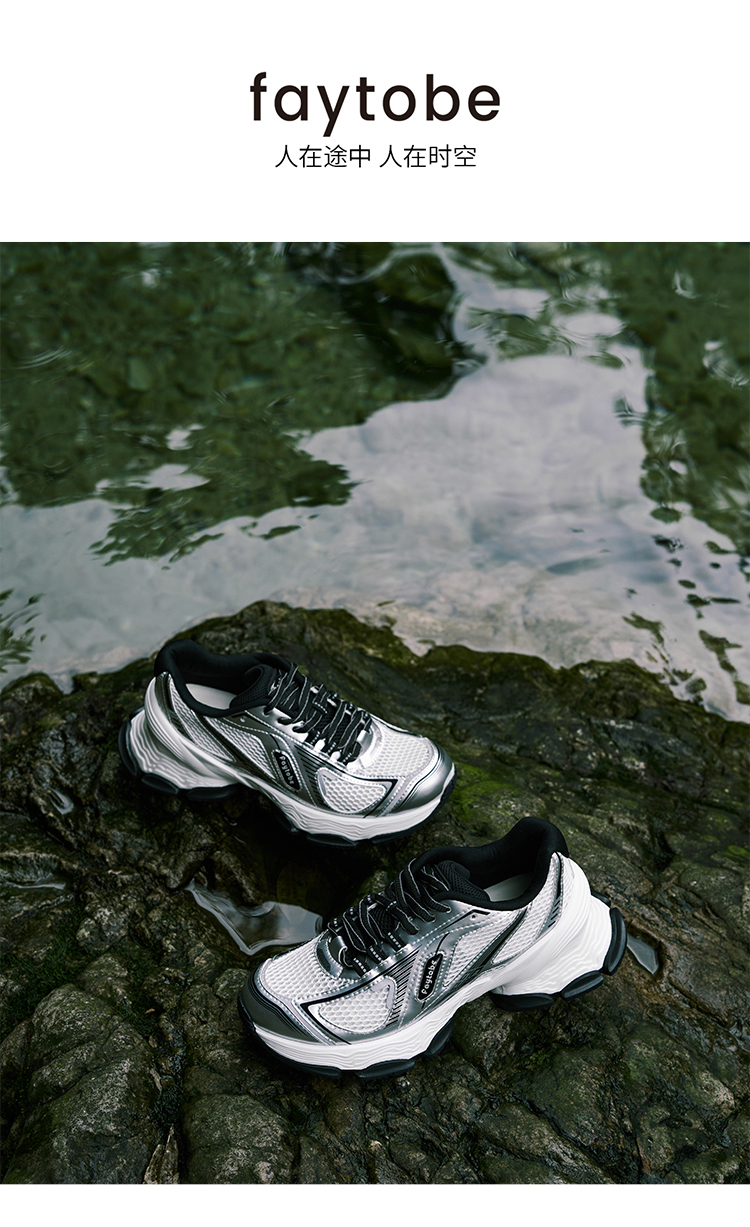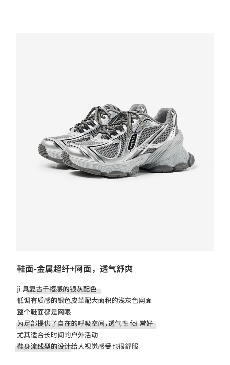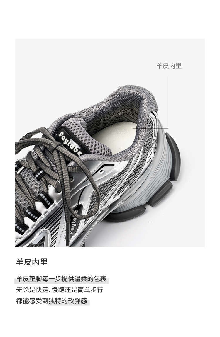 faytobe金属色超时空老爹鞋25春夏透气网面羊皮舒适运动休闲鞋