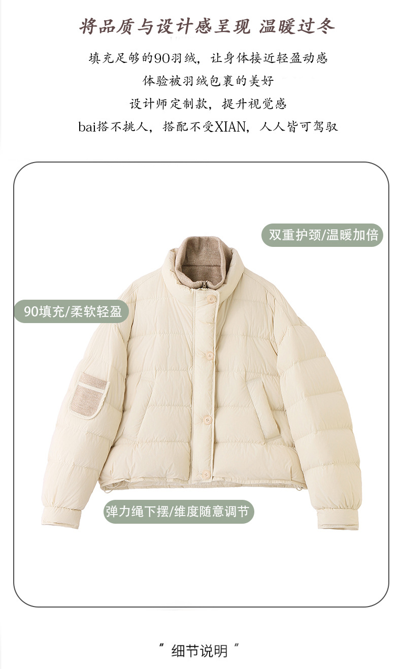 HR WYN1076韩系9羽绒服时尚休闲针织假两件拼接外套 商品图3
