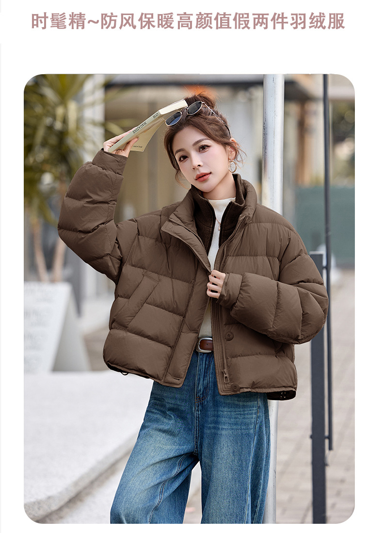 HR WYN1076韩系9羽绒服时尚休闲针织假两件拼接外套 商品图0