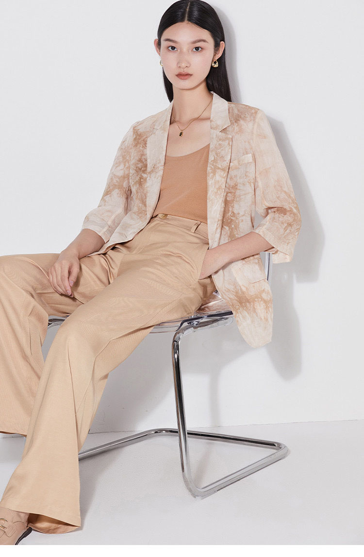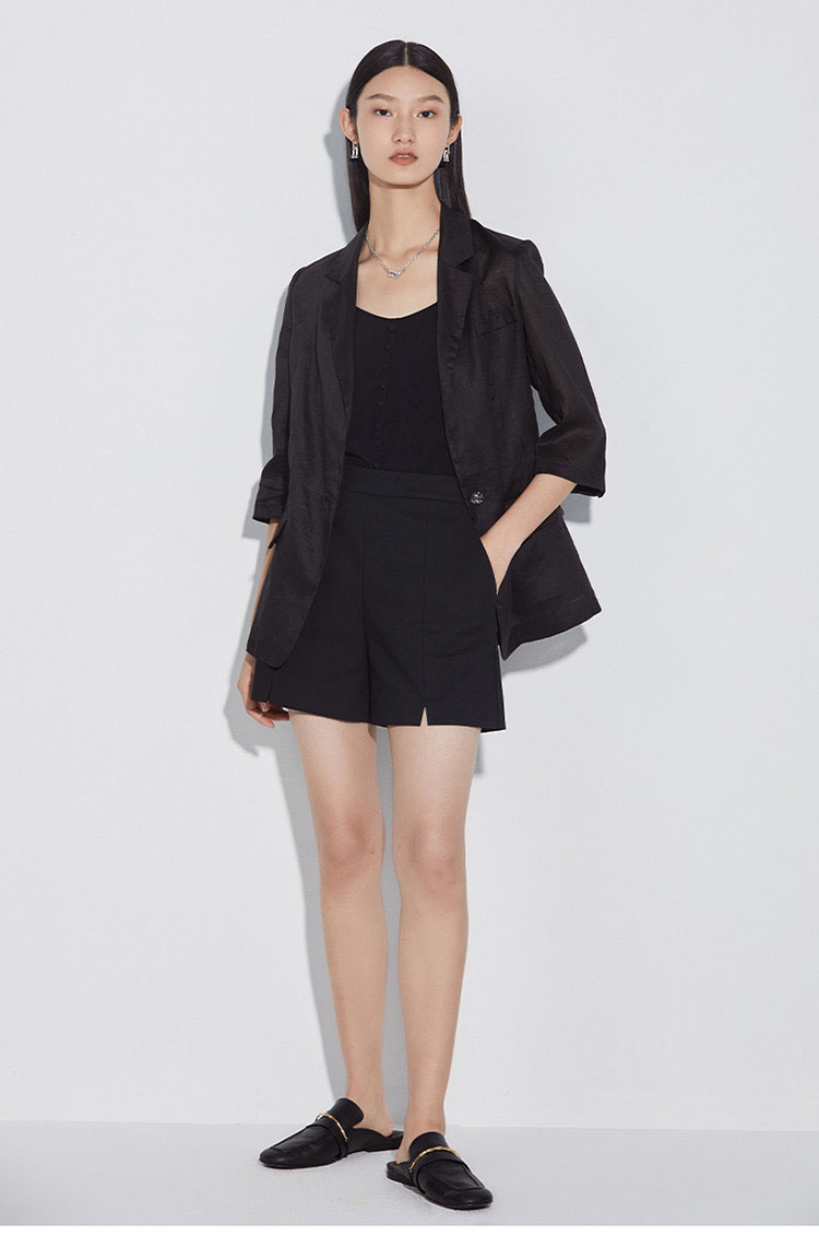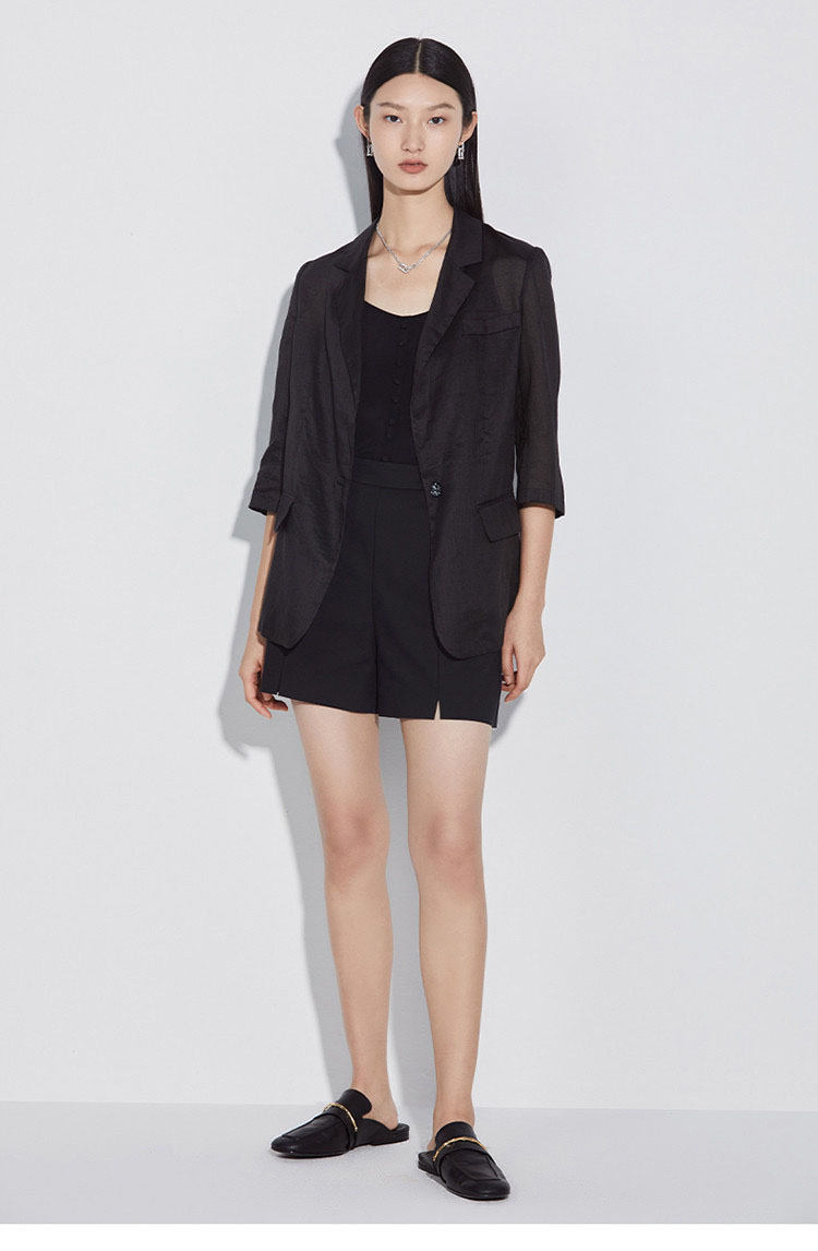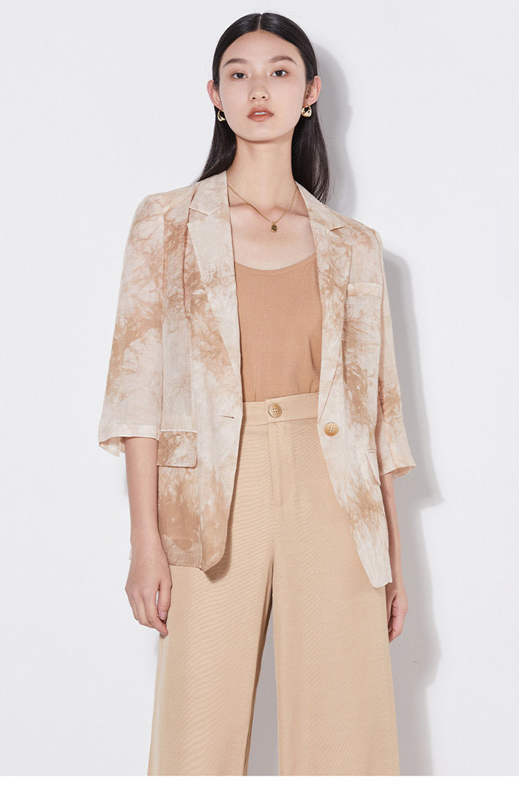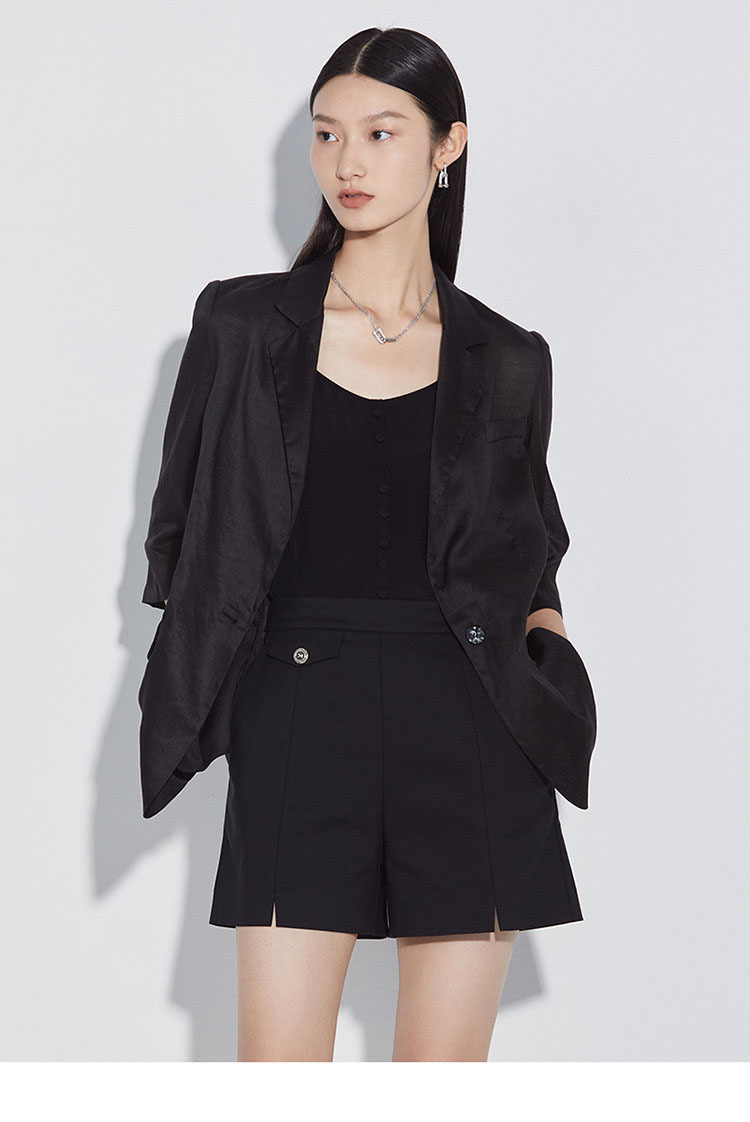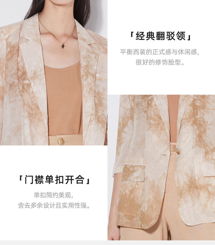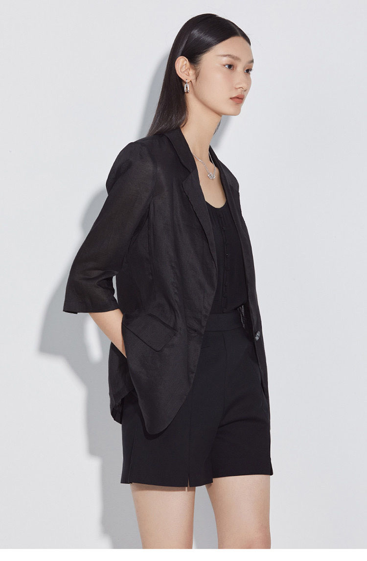 「K」洛诗琳15133气质苎麻小西装2025夏季新款超薄透气七分袖西装外套女420020