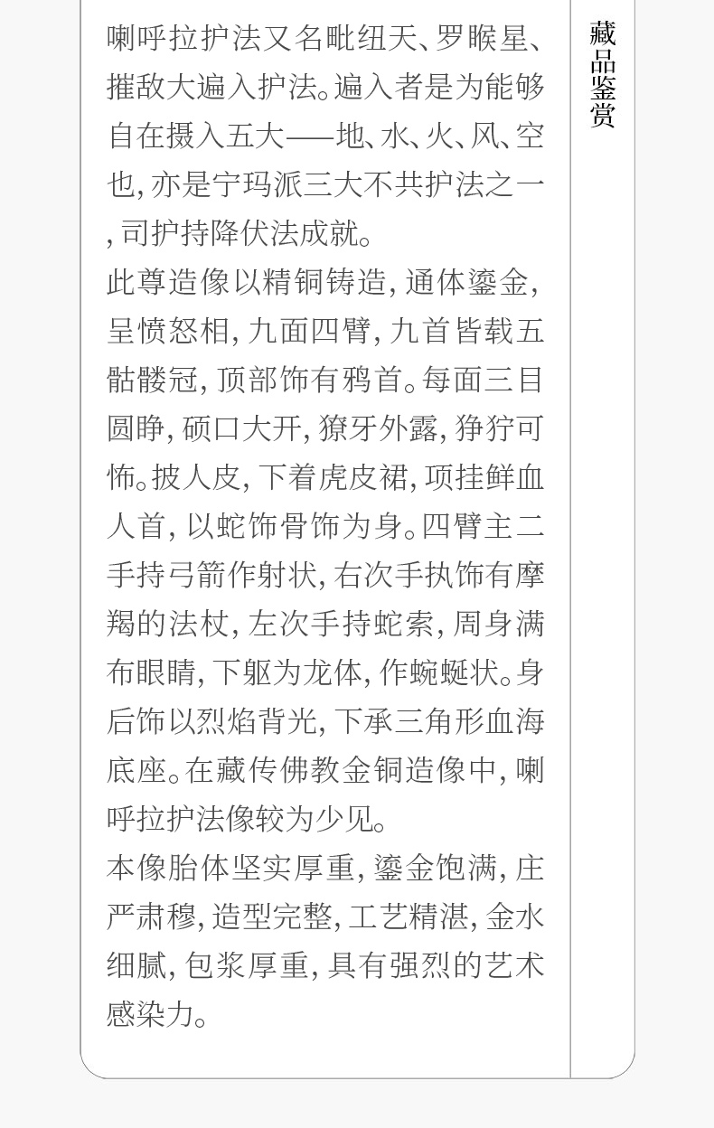 清 铜鎏金宁玛派喇呼拉护法像