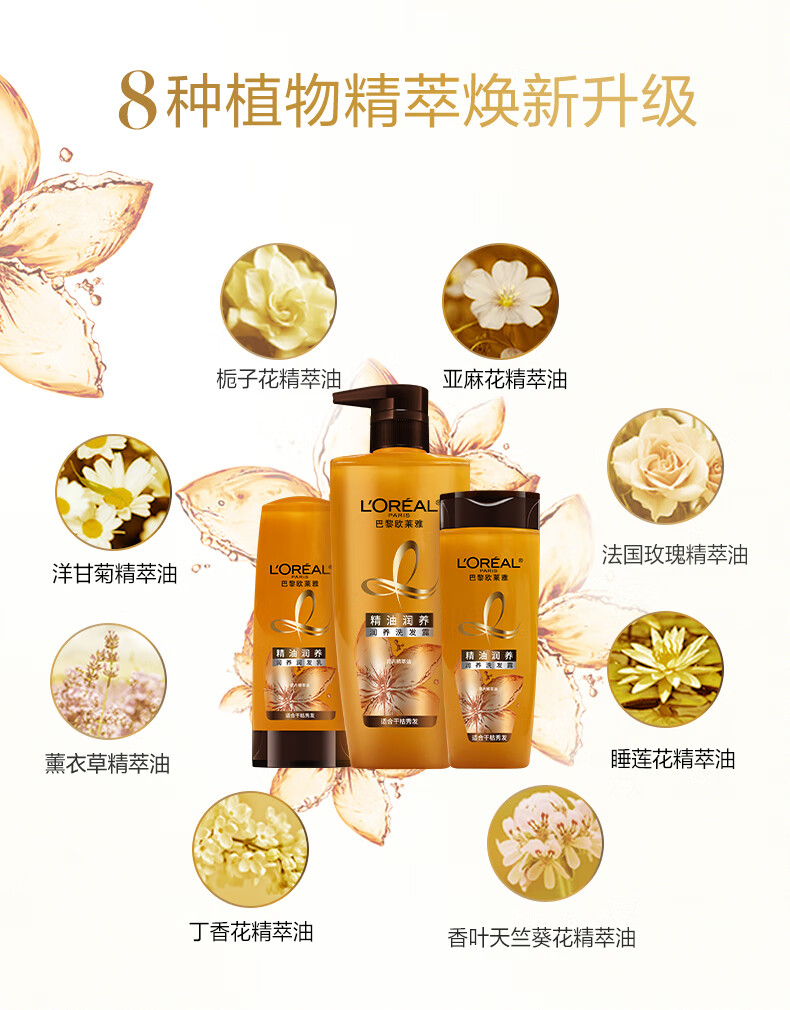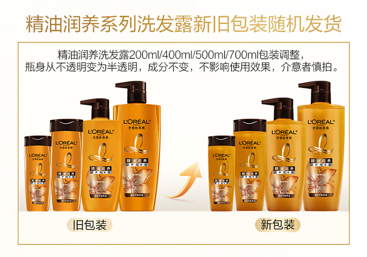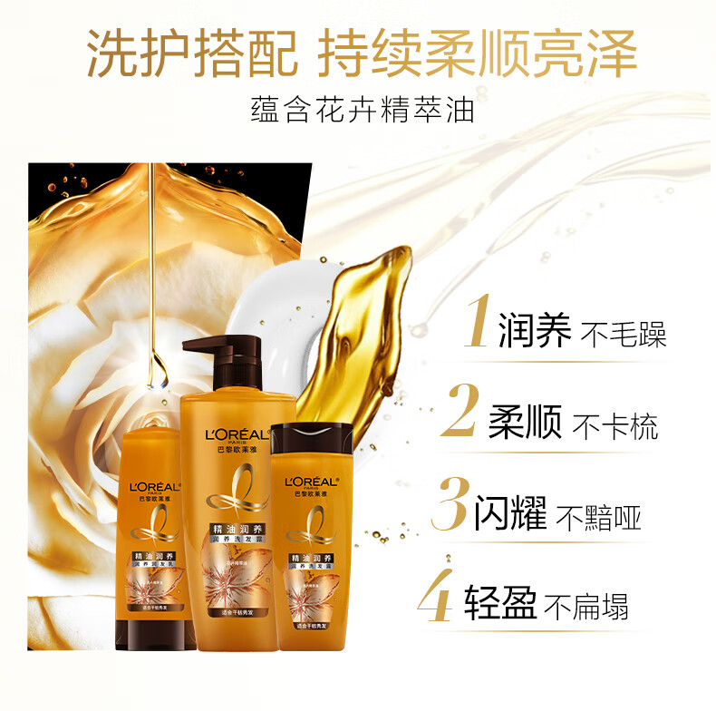 【预售-12月29日配送】巴黎欧莱雅精油润养洗发露1+2组合/1组(洗发露700ml*1+润发乳100ml*2)限用日期:28年1月