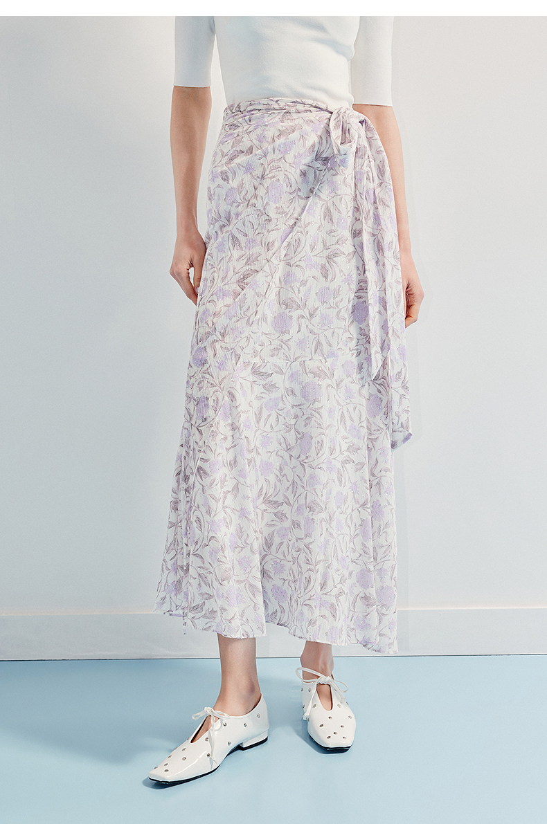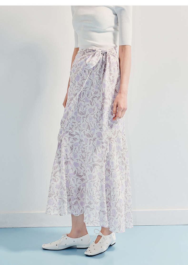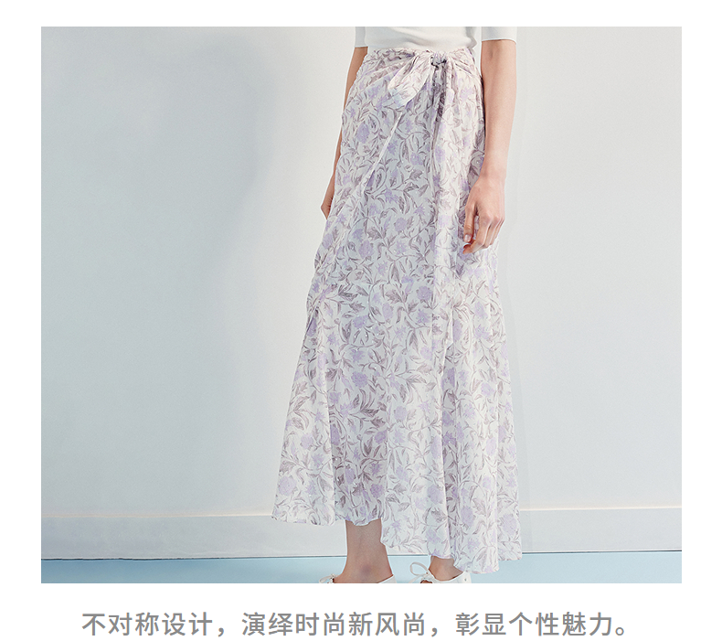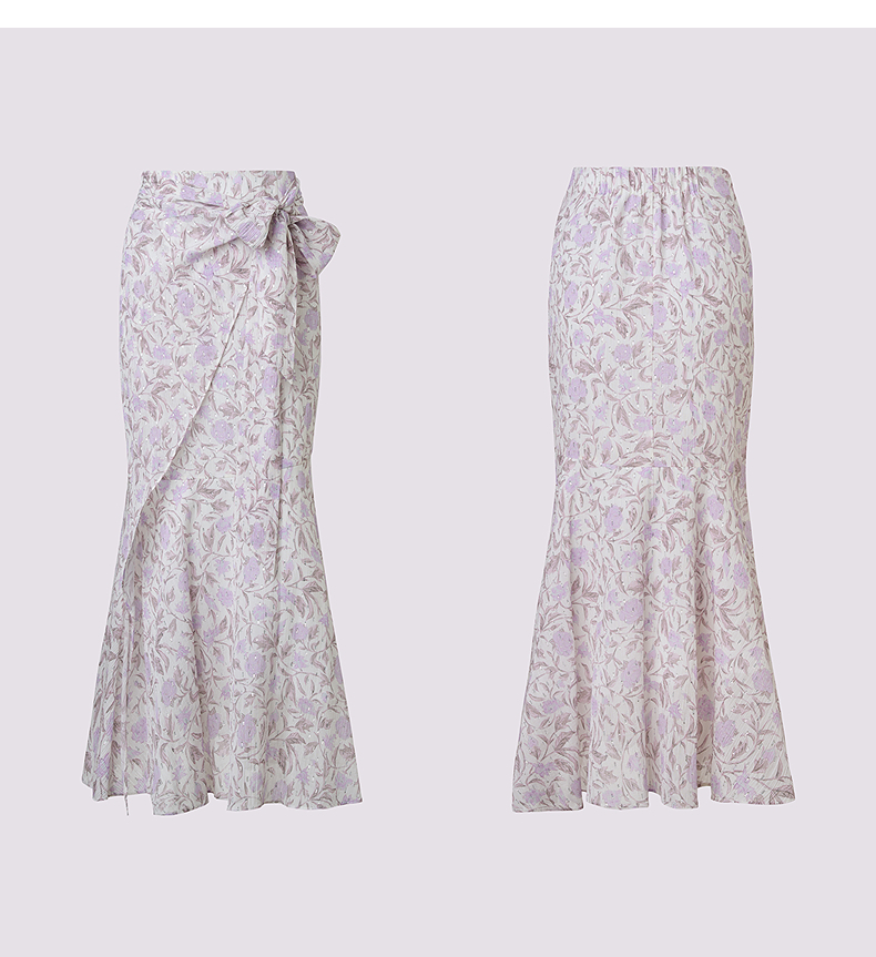 MAXRIENY优雅度假风雪纺碎花半裙25夏款系带印花鱼尾长裙气质感(货号:MF86SK014)