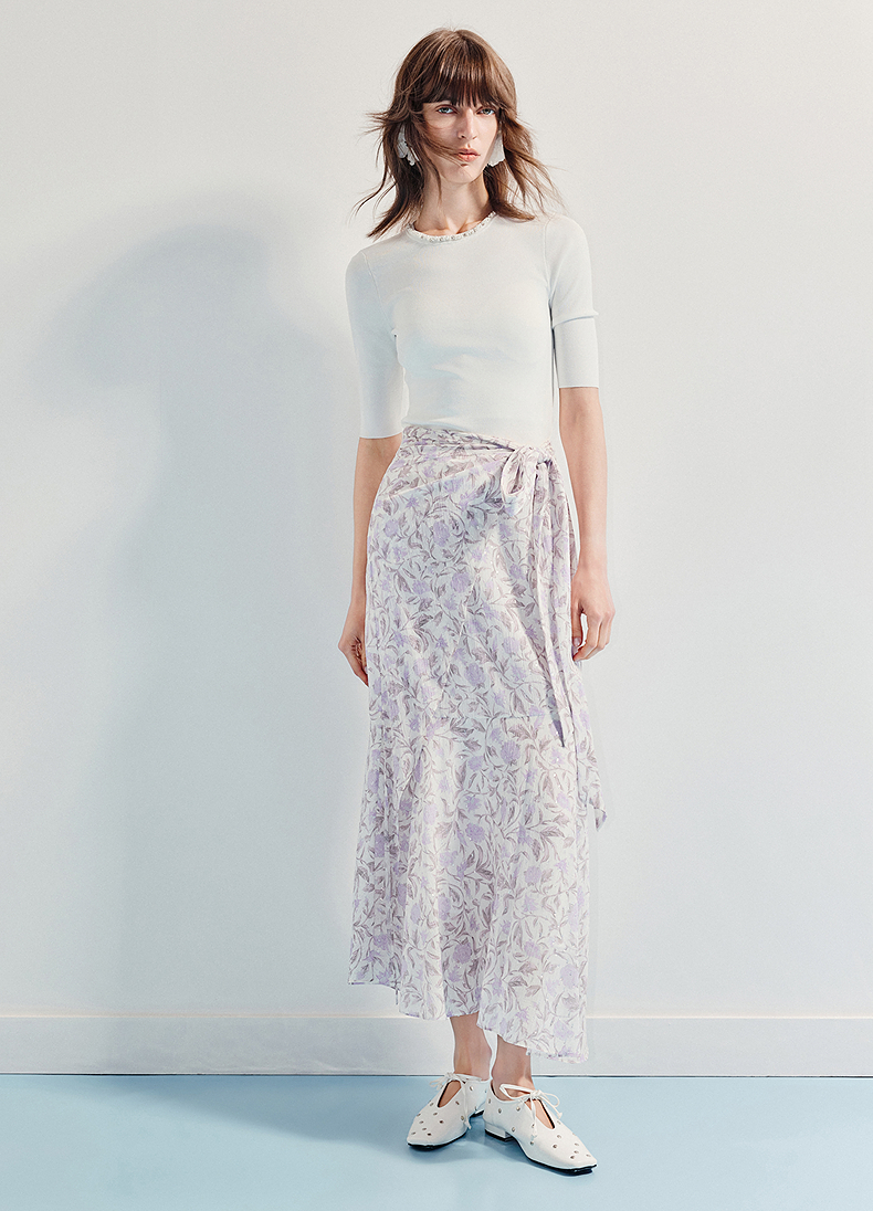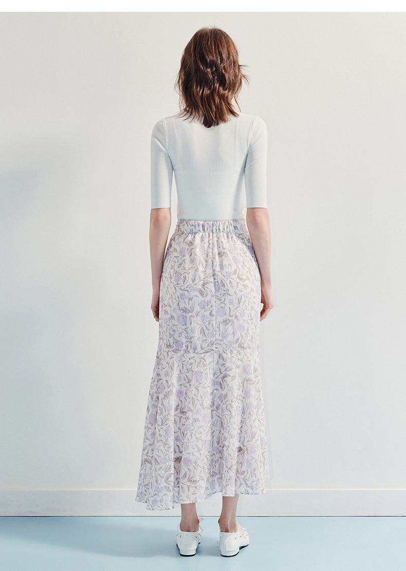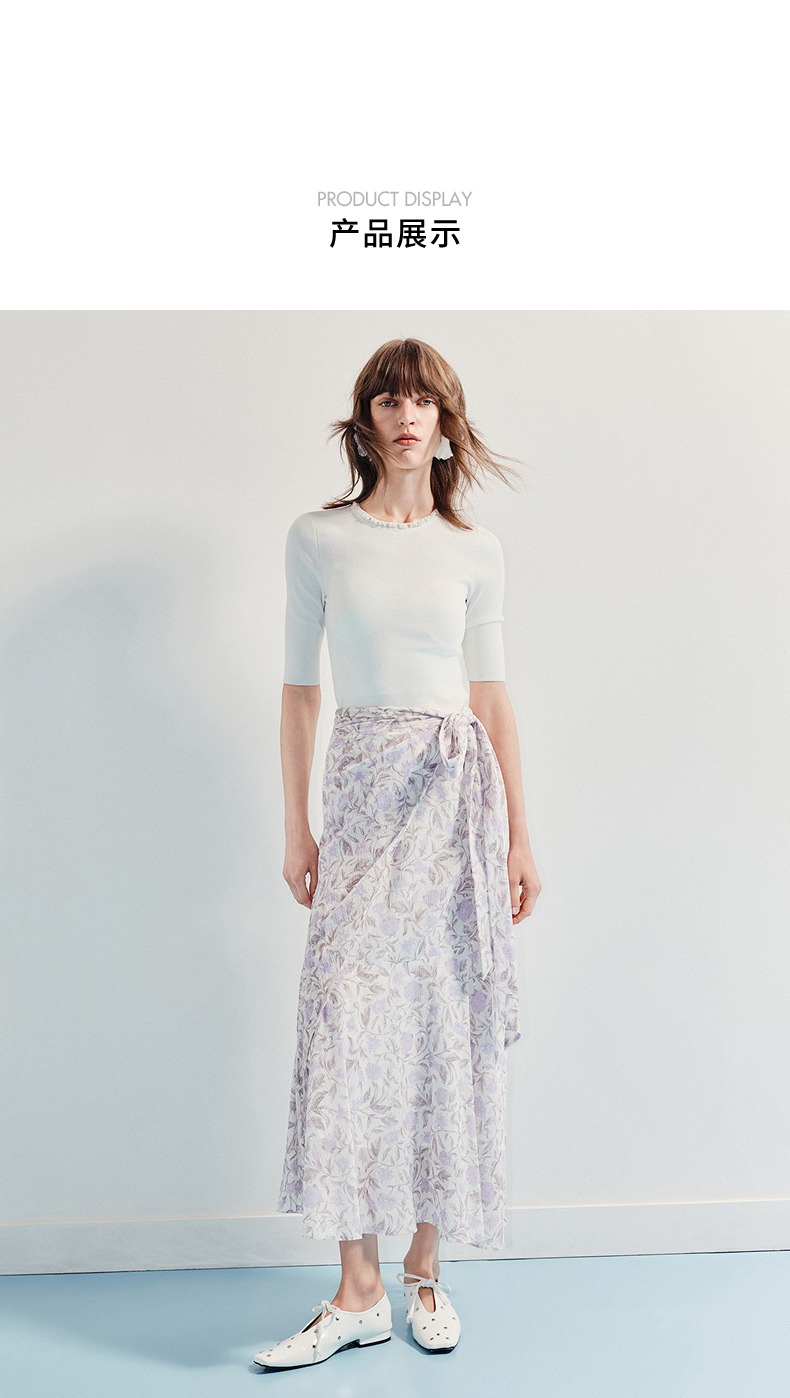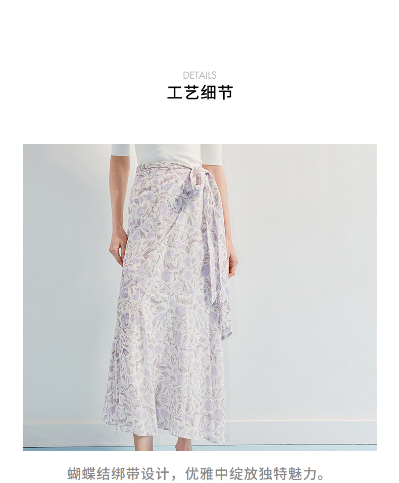 MAXRIENY优雅度假风雪纺碎花半裙25夏款系带印花鱼尾长裙气质感(货号:MF86SK014)