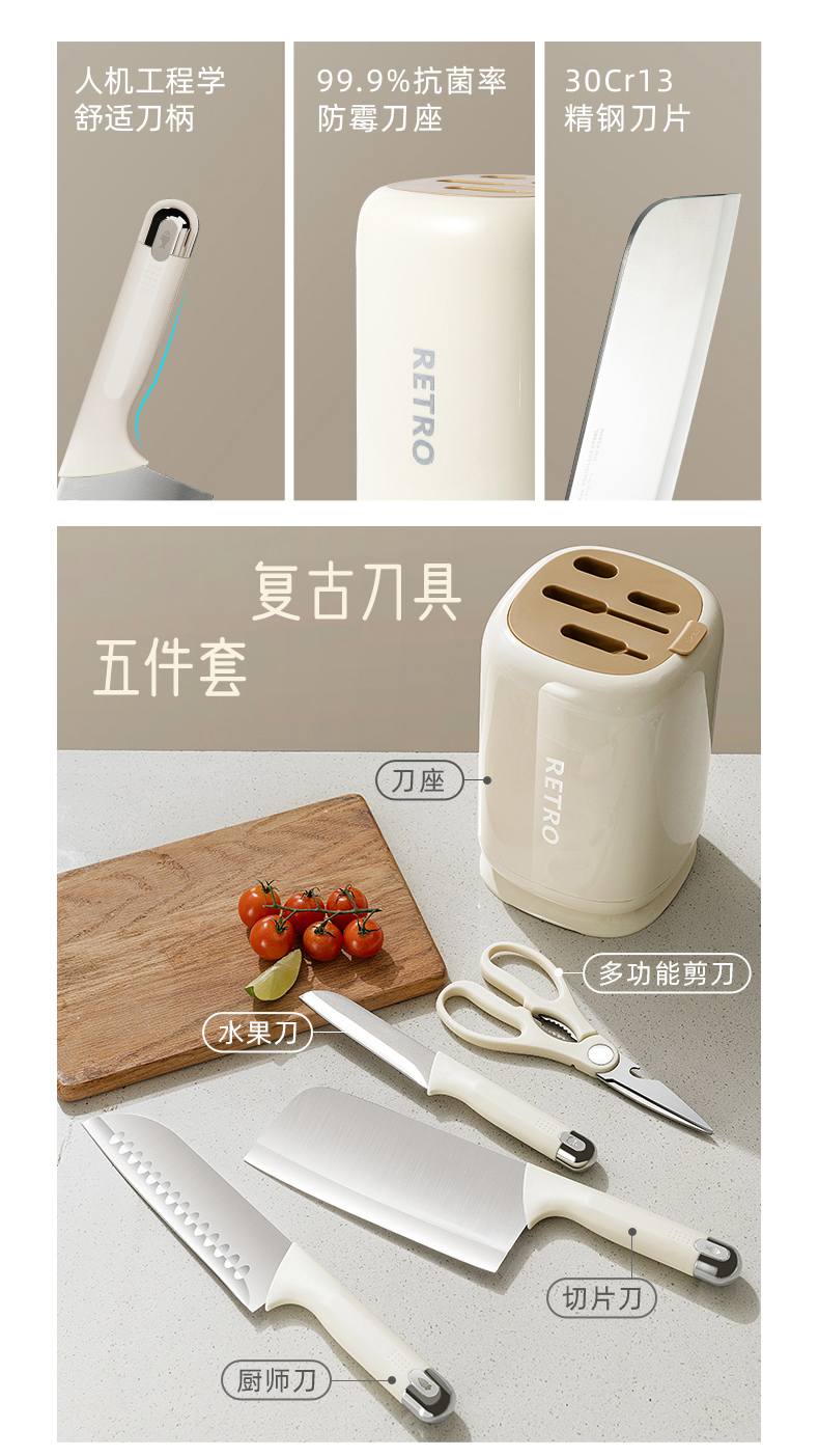 摩登主妇刀具套装婴儿辅食抗菌不锈钢切菜切片刀家用厨房全套厨具