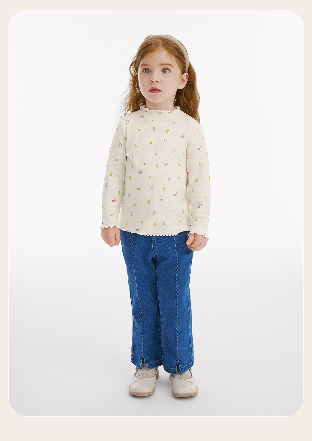 英氏儿童打底衫春秋季长袖男女童纯色百搭T恤套头衫中大童基础款