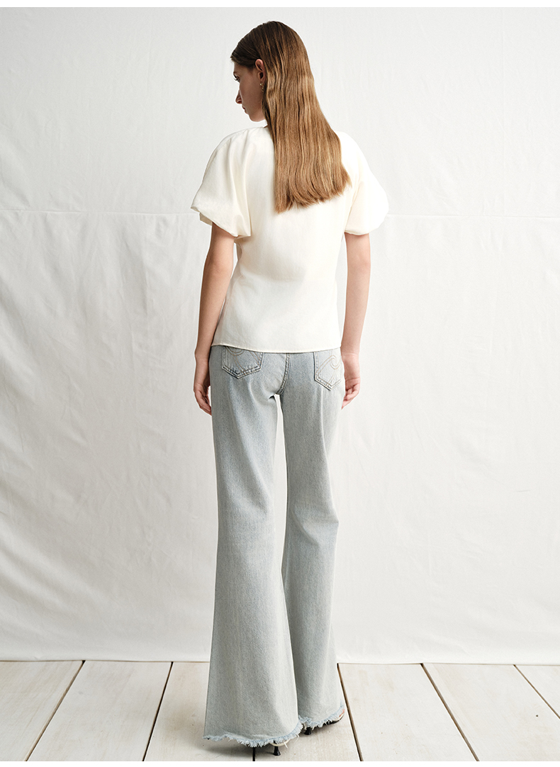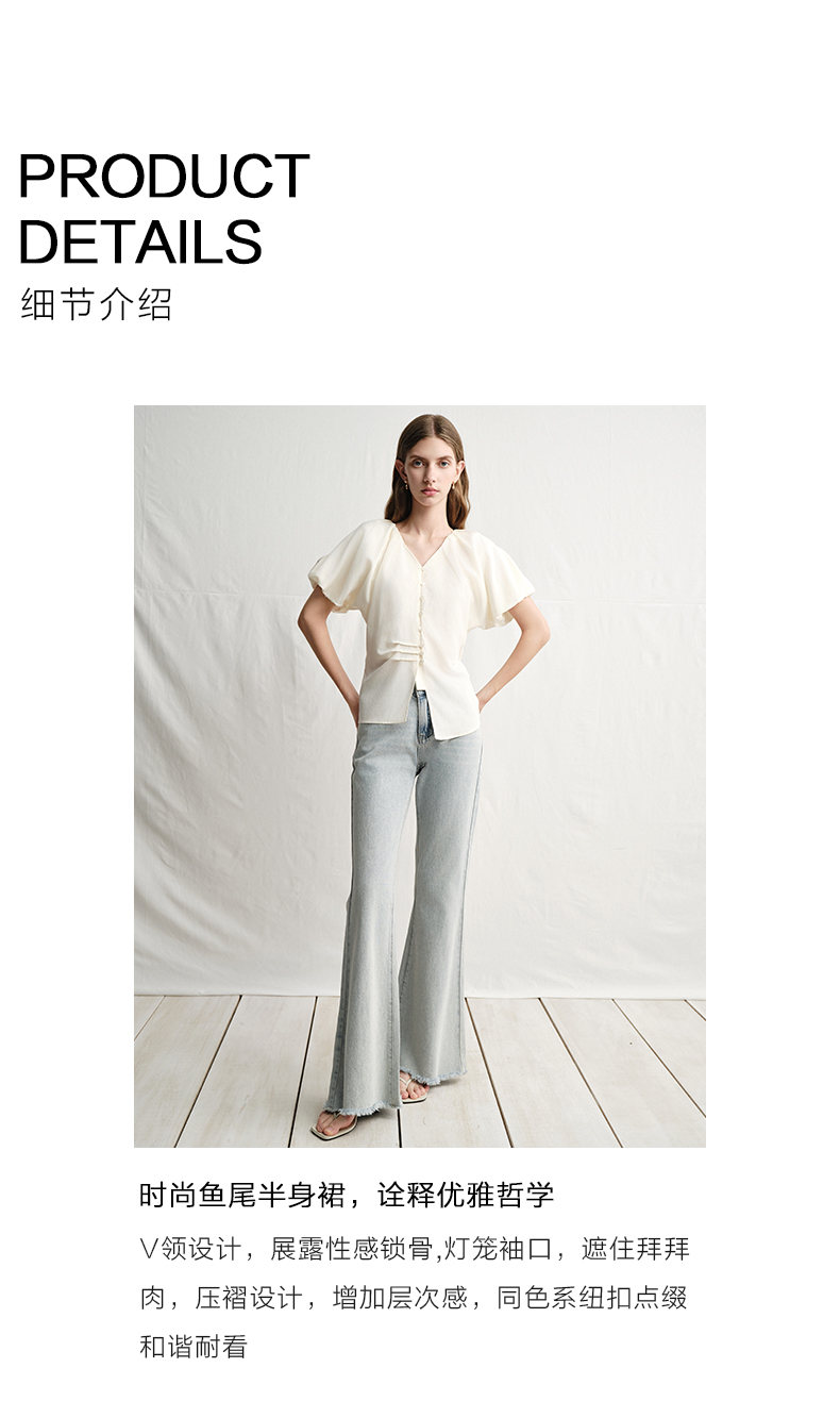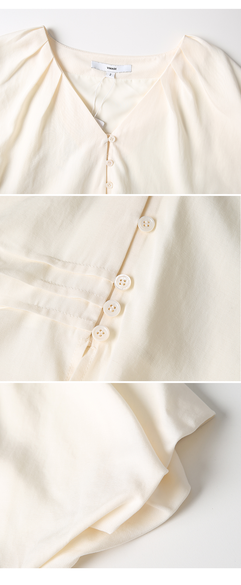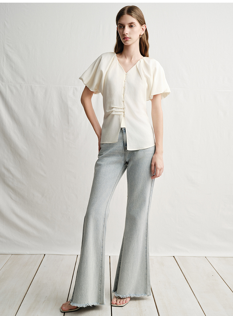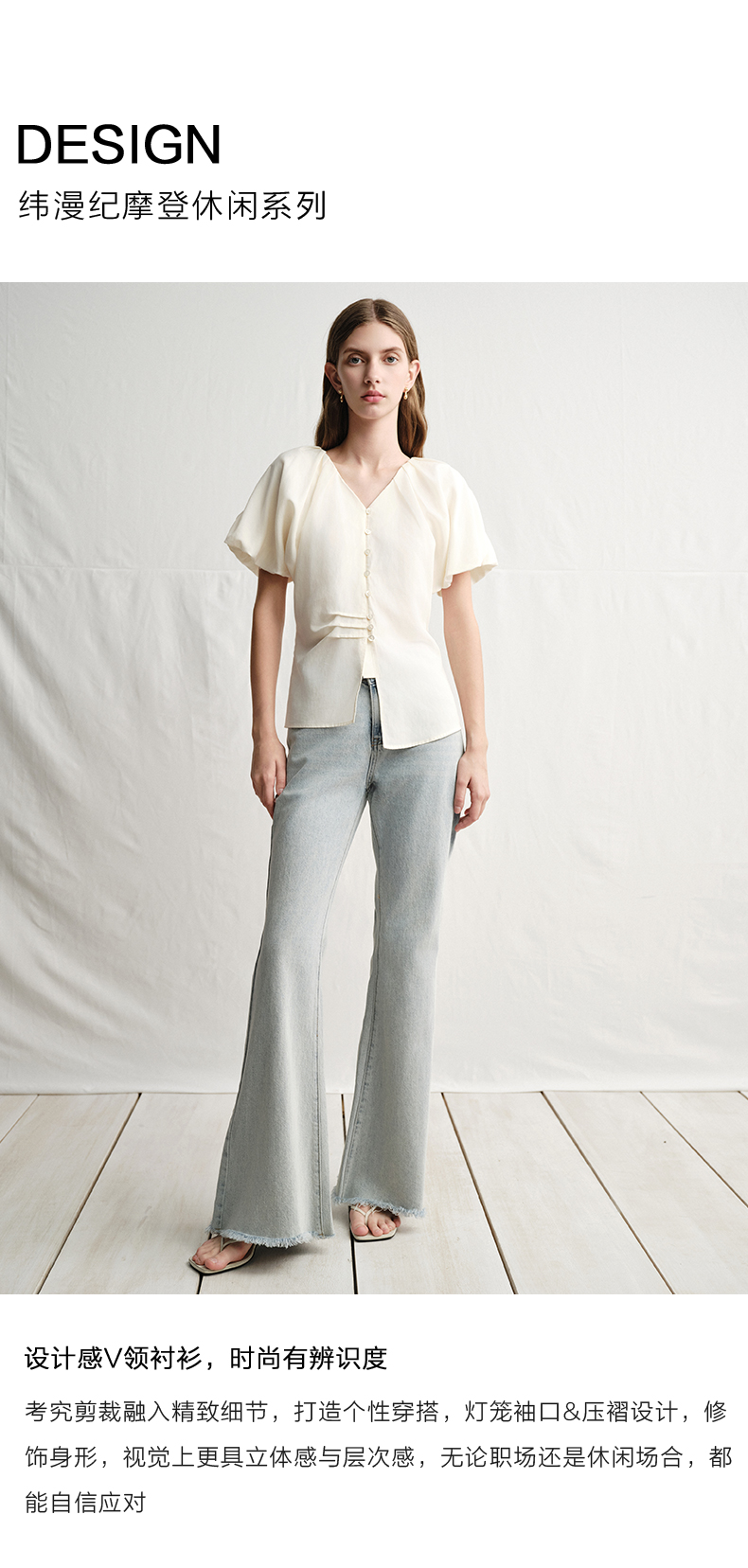 VIMAGE纬漫纪法式V领泡泡袖显瘦短袖压褶设计上衣女2025夏季新款V2309909