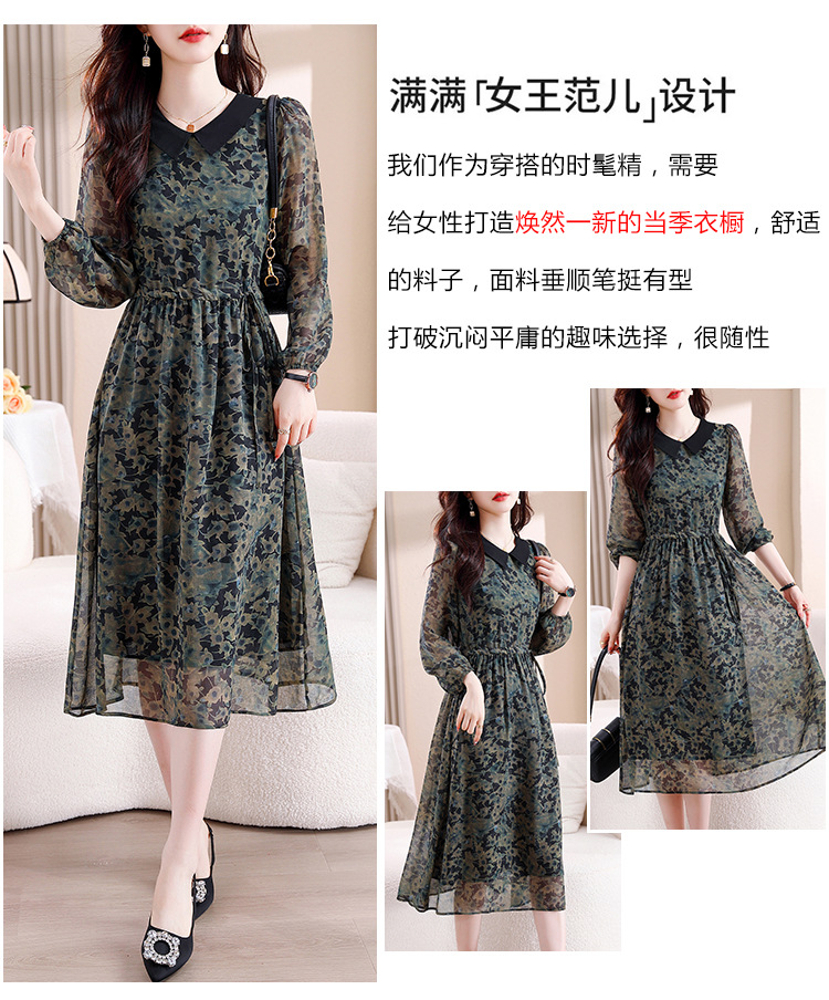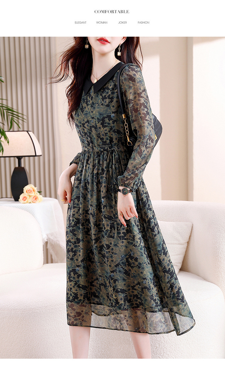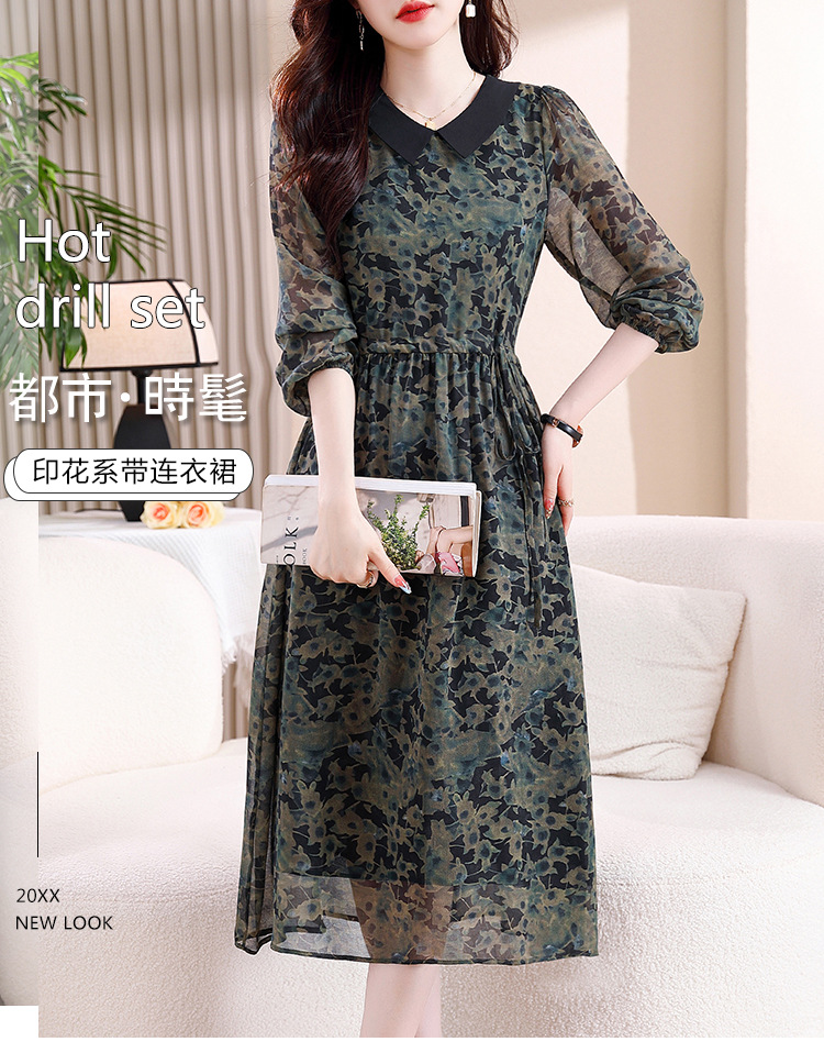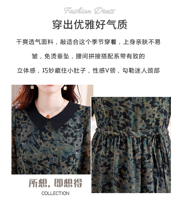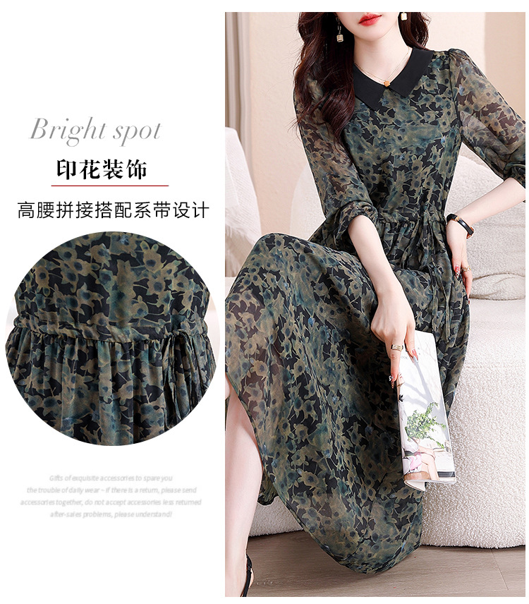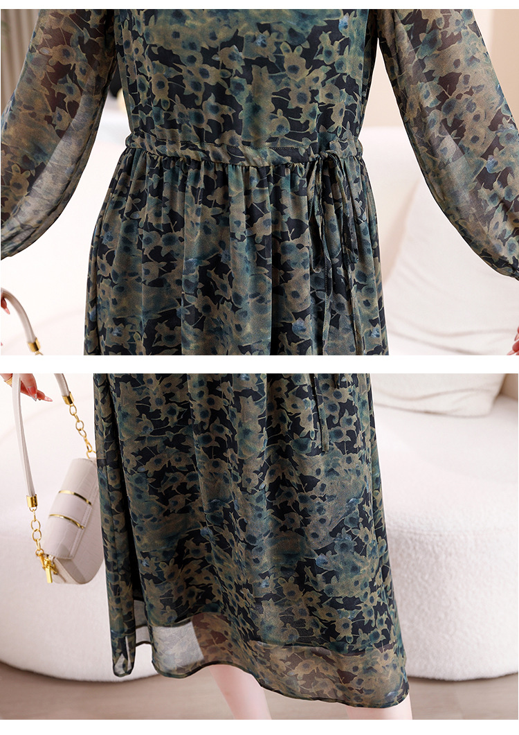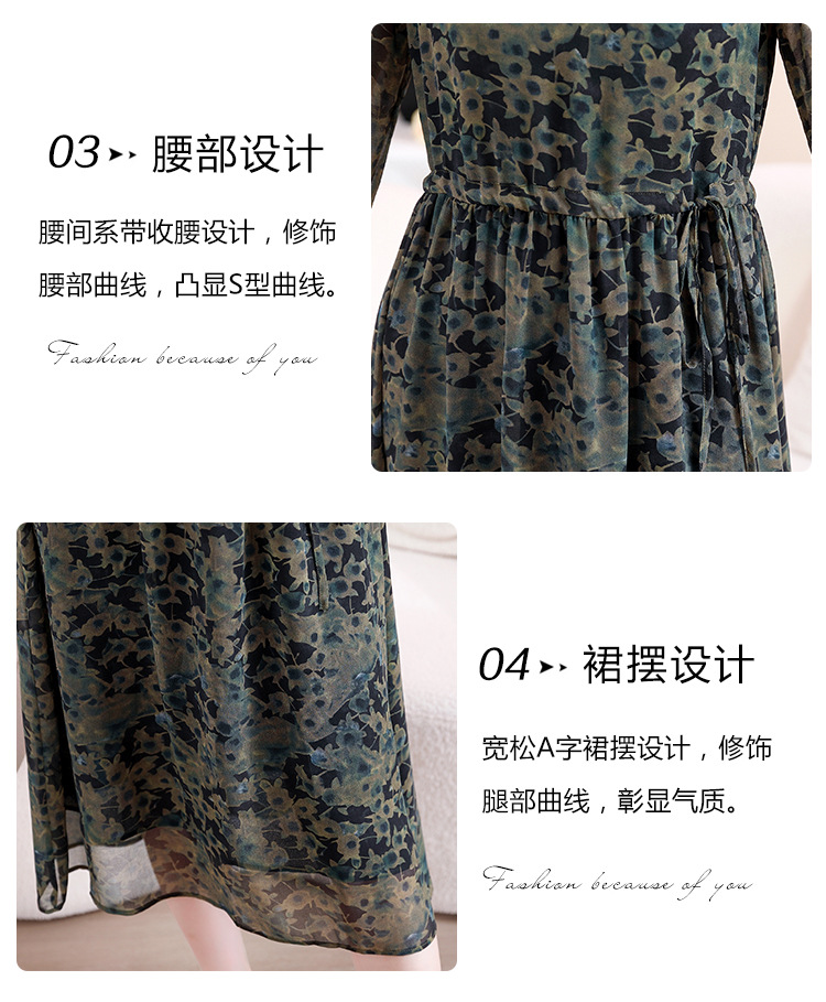 DD-复古印花雪纺连衣裙女2023秋季新款时尚拼接减龄收腰系带V领长裙