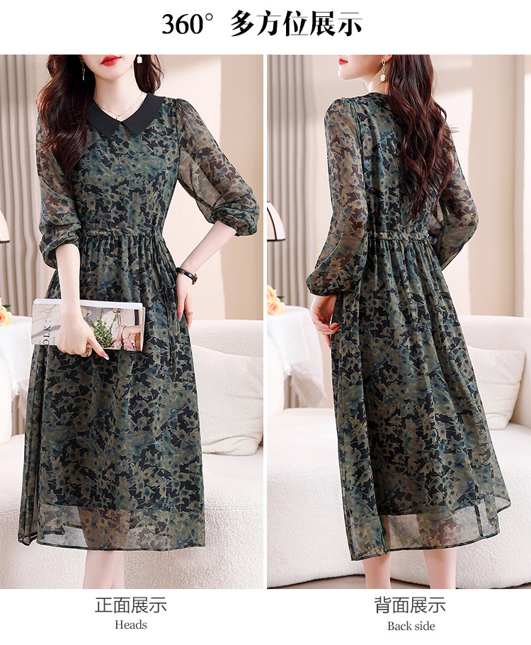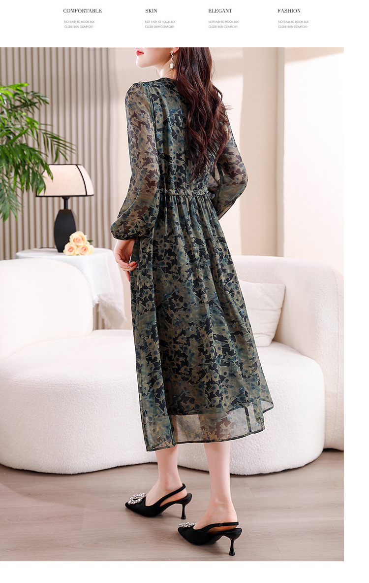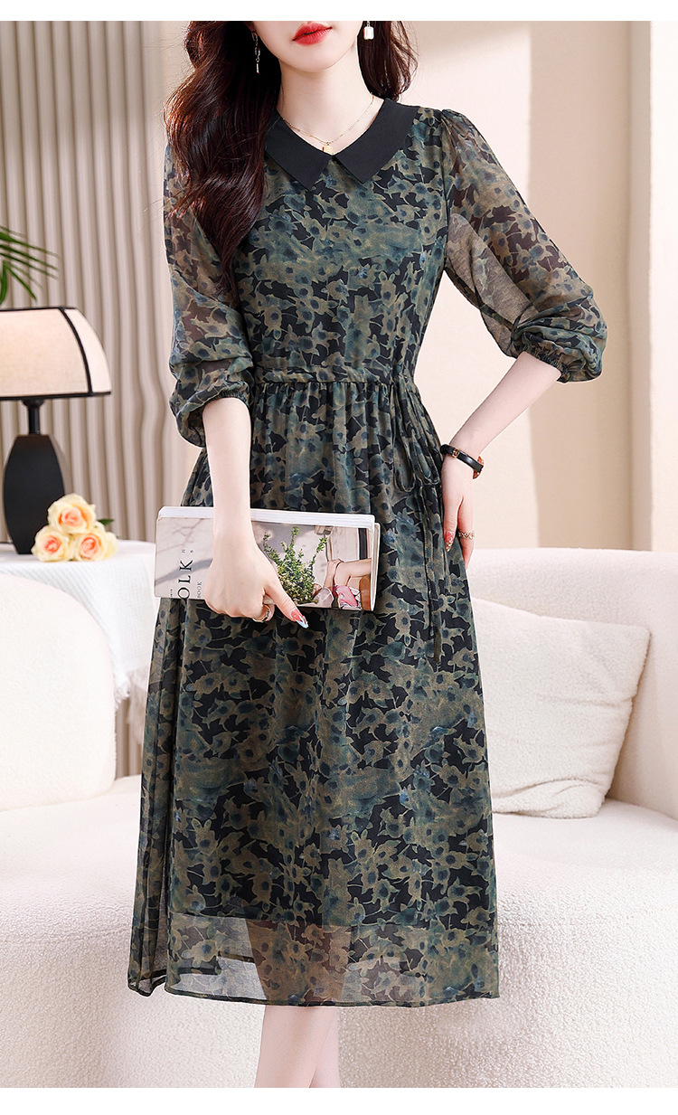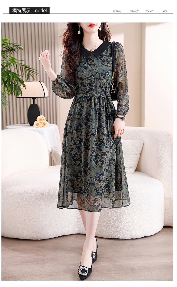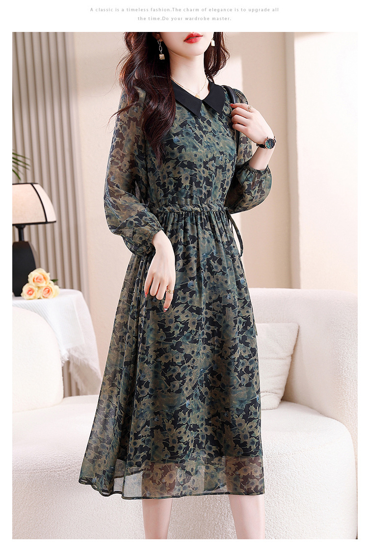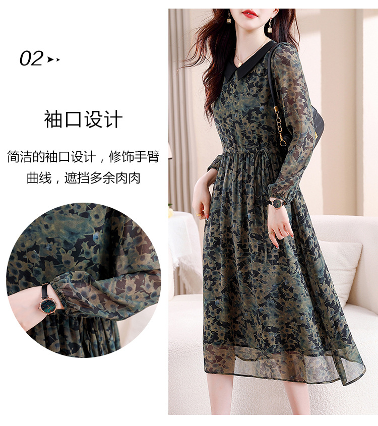 DD-复古印花雪纺连衣裙女2023秋季新款时尚拼接减龄收腰系带V领长裙