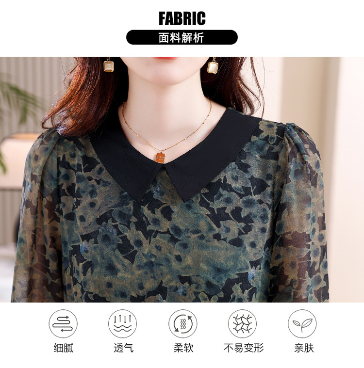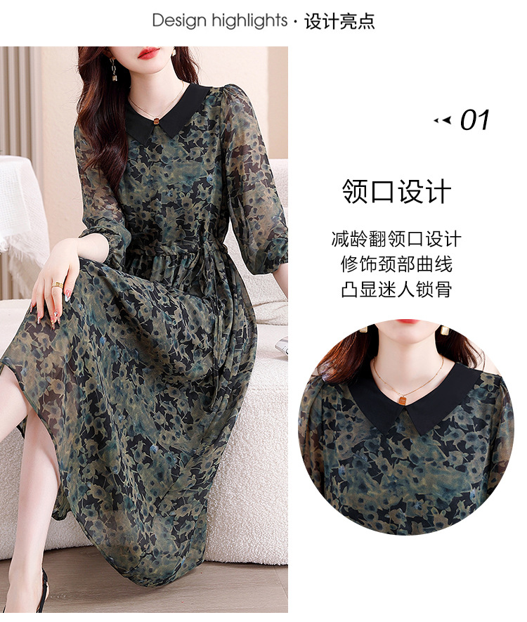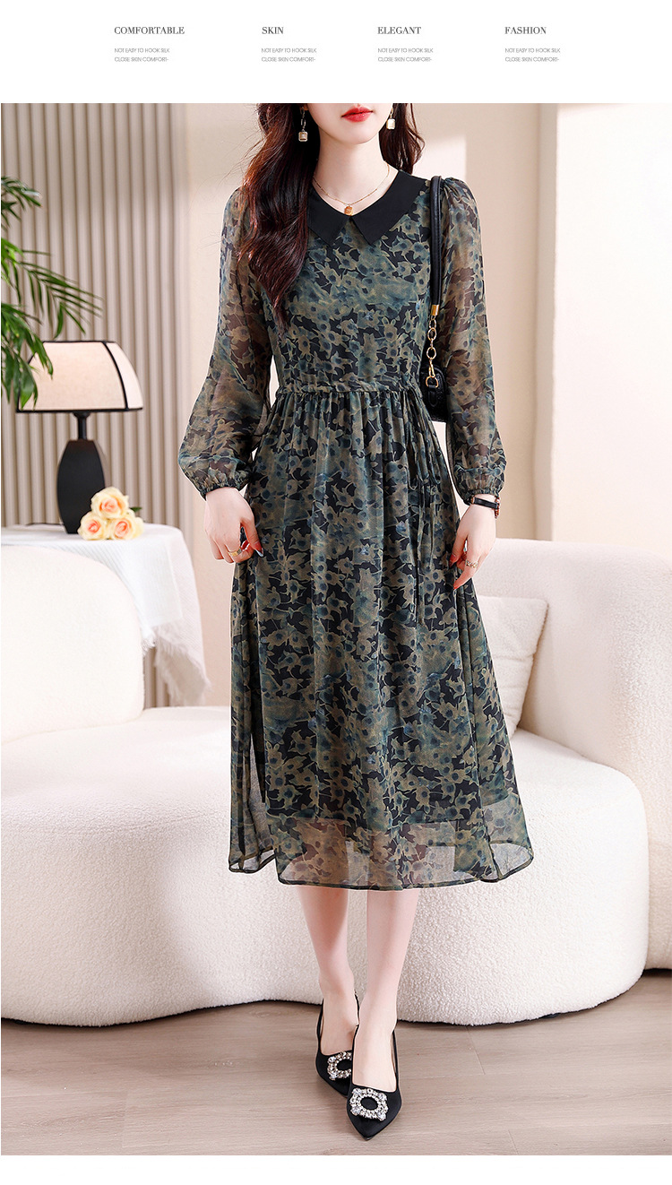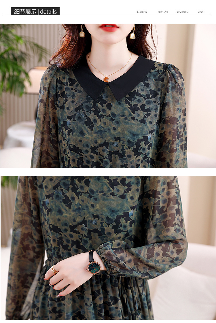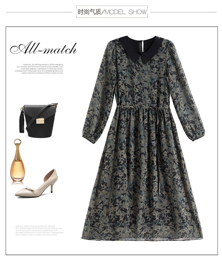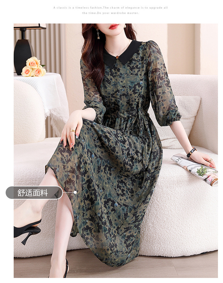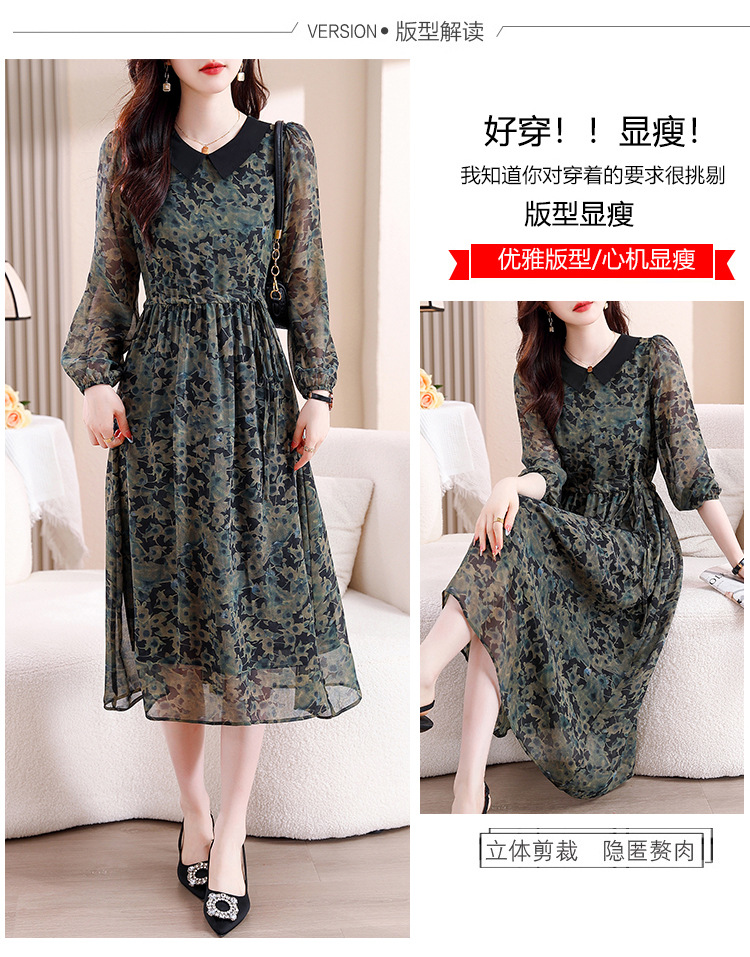 DD-复古印花雪纺连衣裙女2023秋季新款时尚拼接减龄收腰系带V领长裙